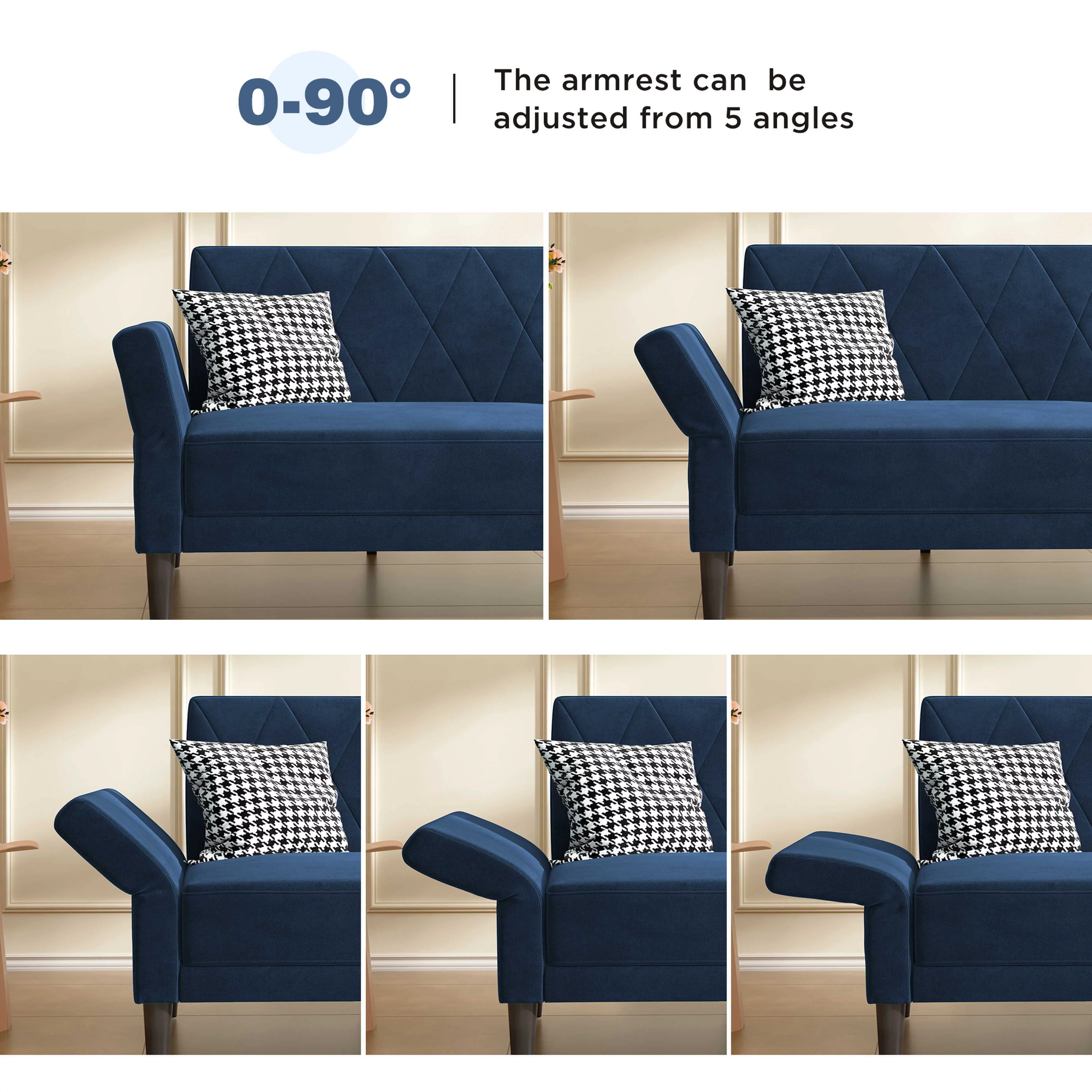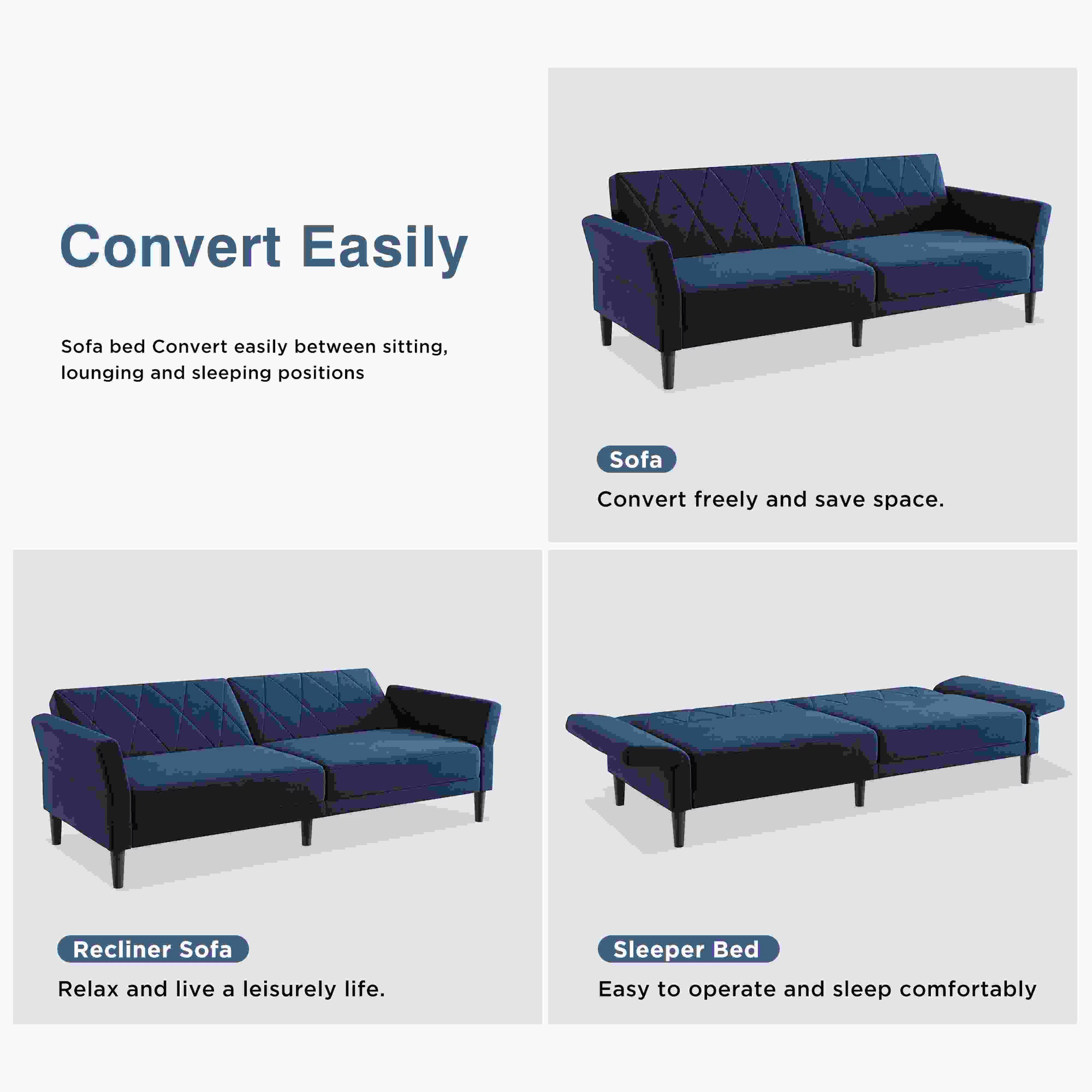 HONBAY Convertible Velvet Sofa Bed Folding Futon Sofa loveseat Tufted Loveseat, Navy Blue