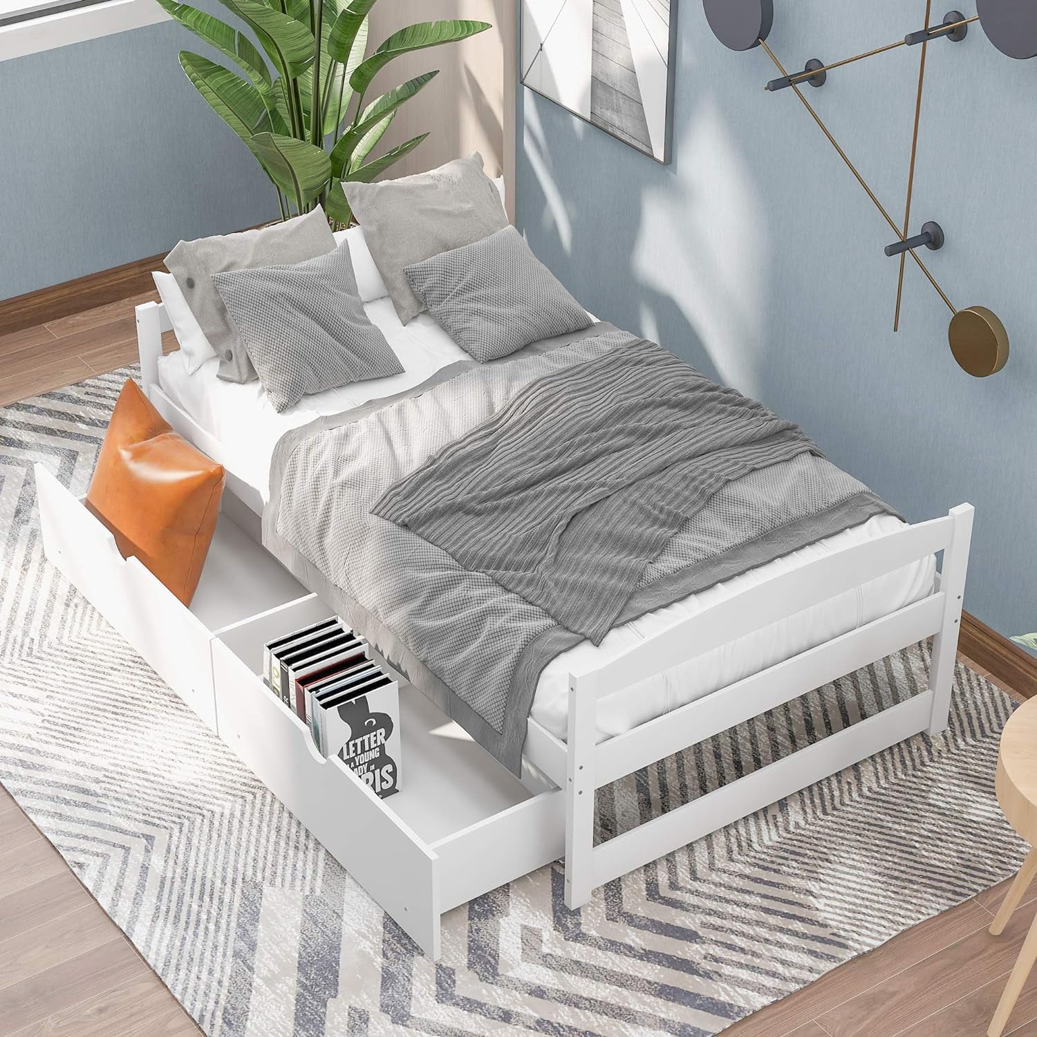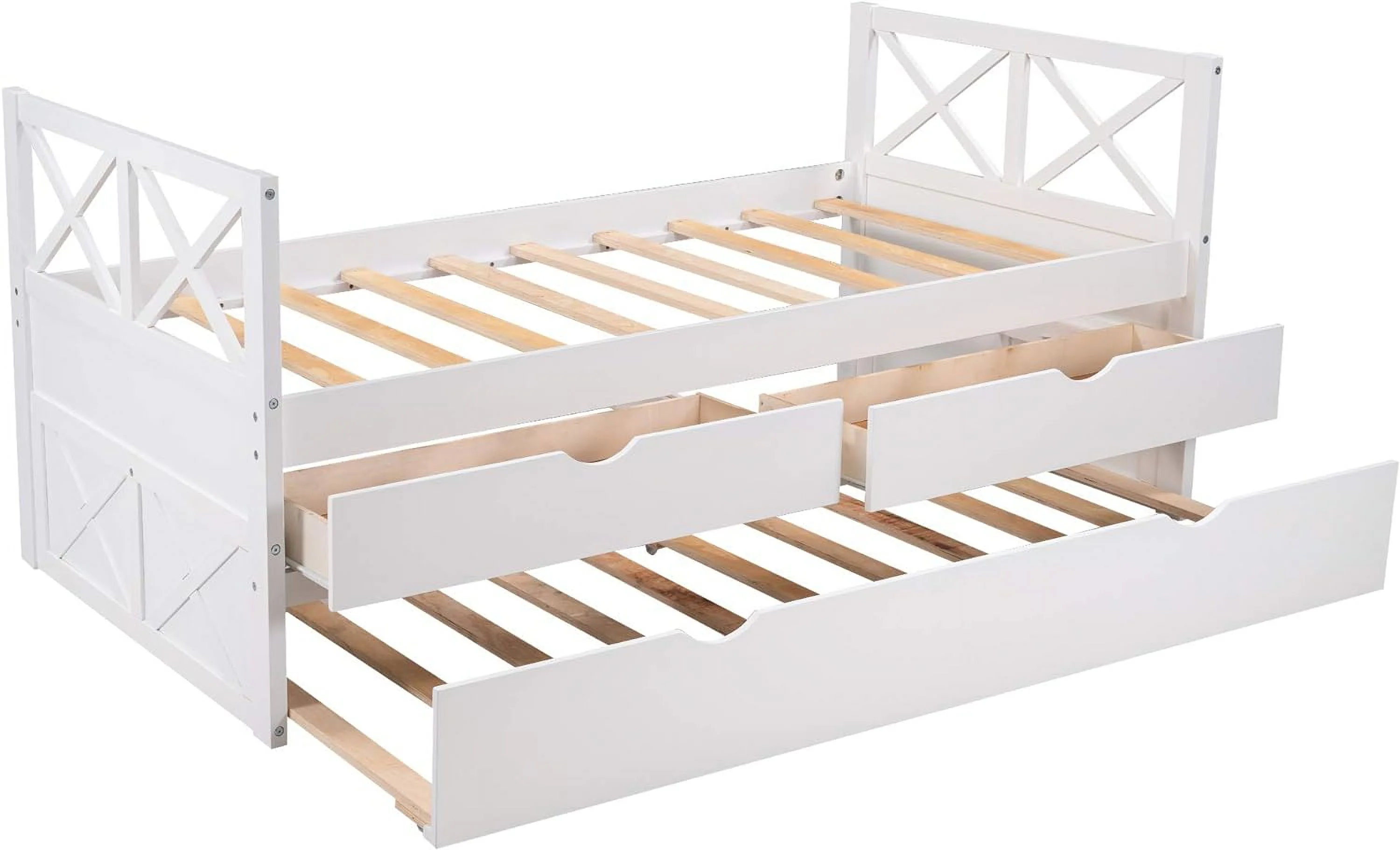 Size Daybed, Platform Bed With Drawers, Wood Bed Frame, Daybed Captains Bed For Bedroom, White