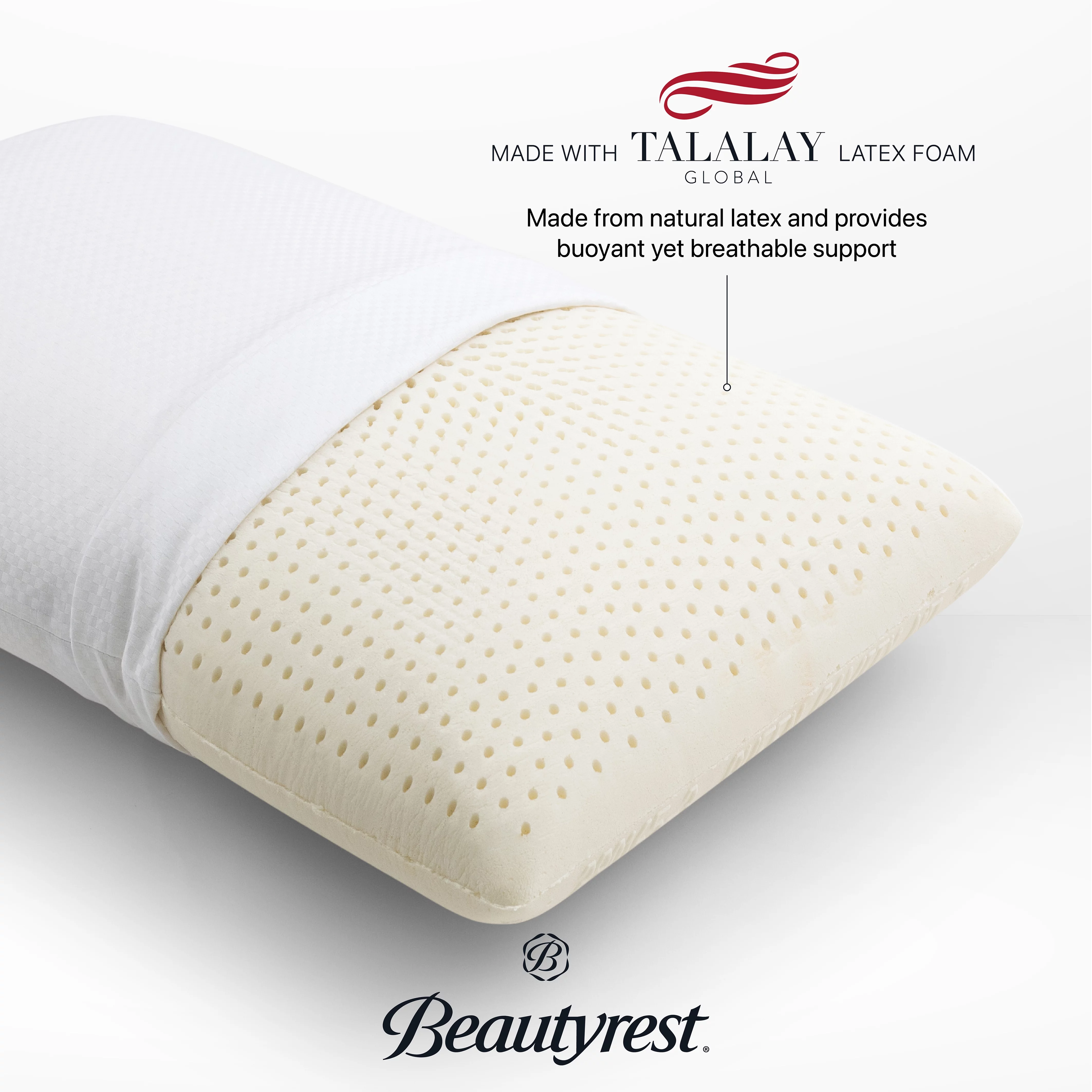 Beautyrest Latex Foam Bed Pillow with Removable Cover, Standard, Cotton