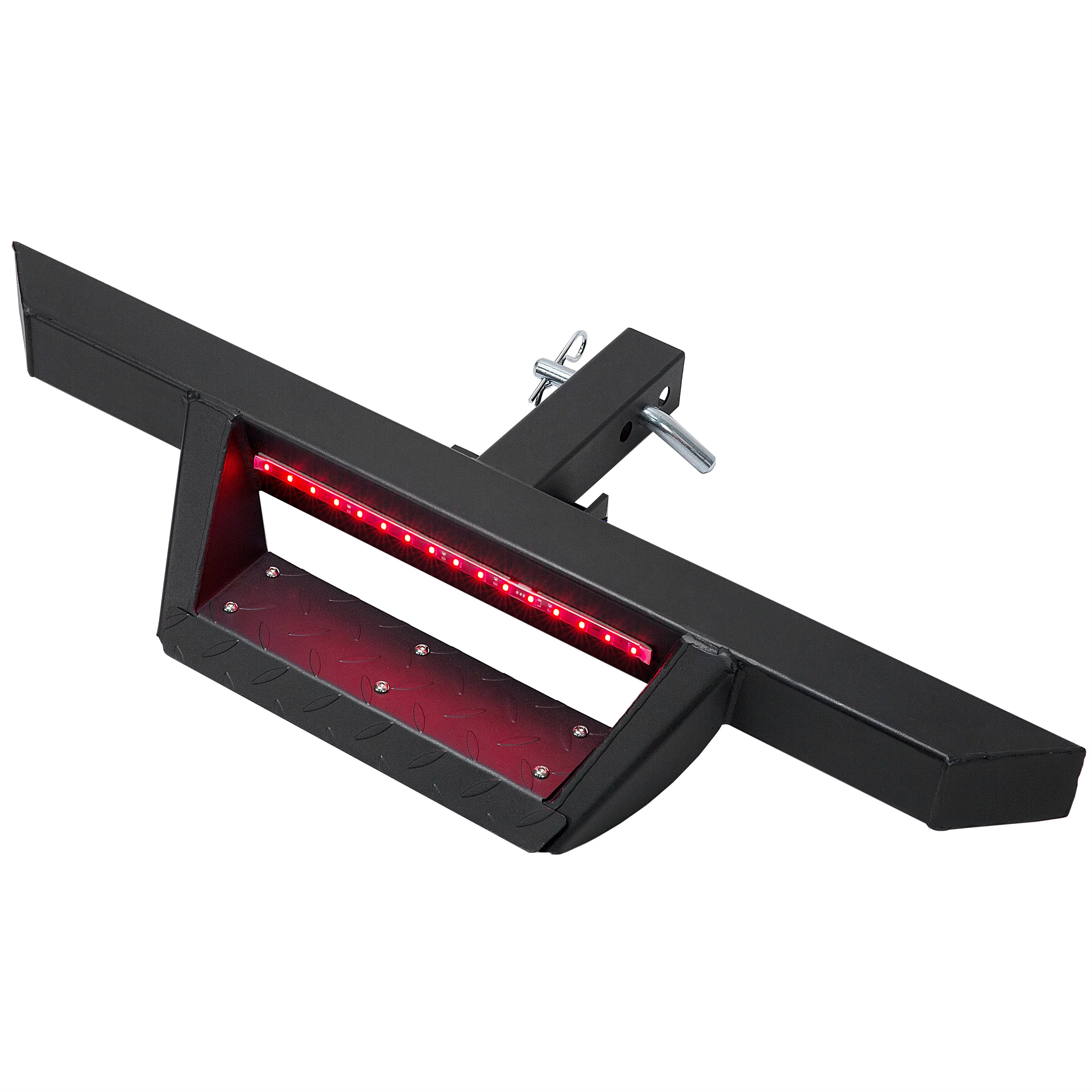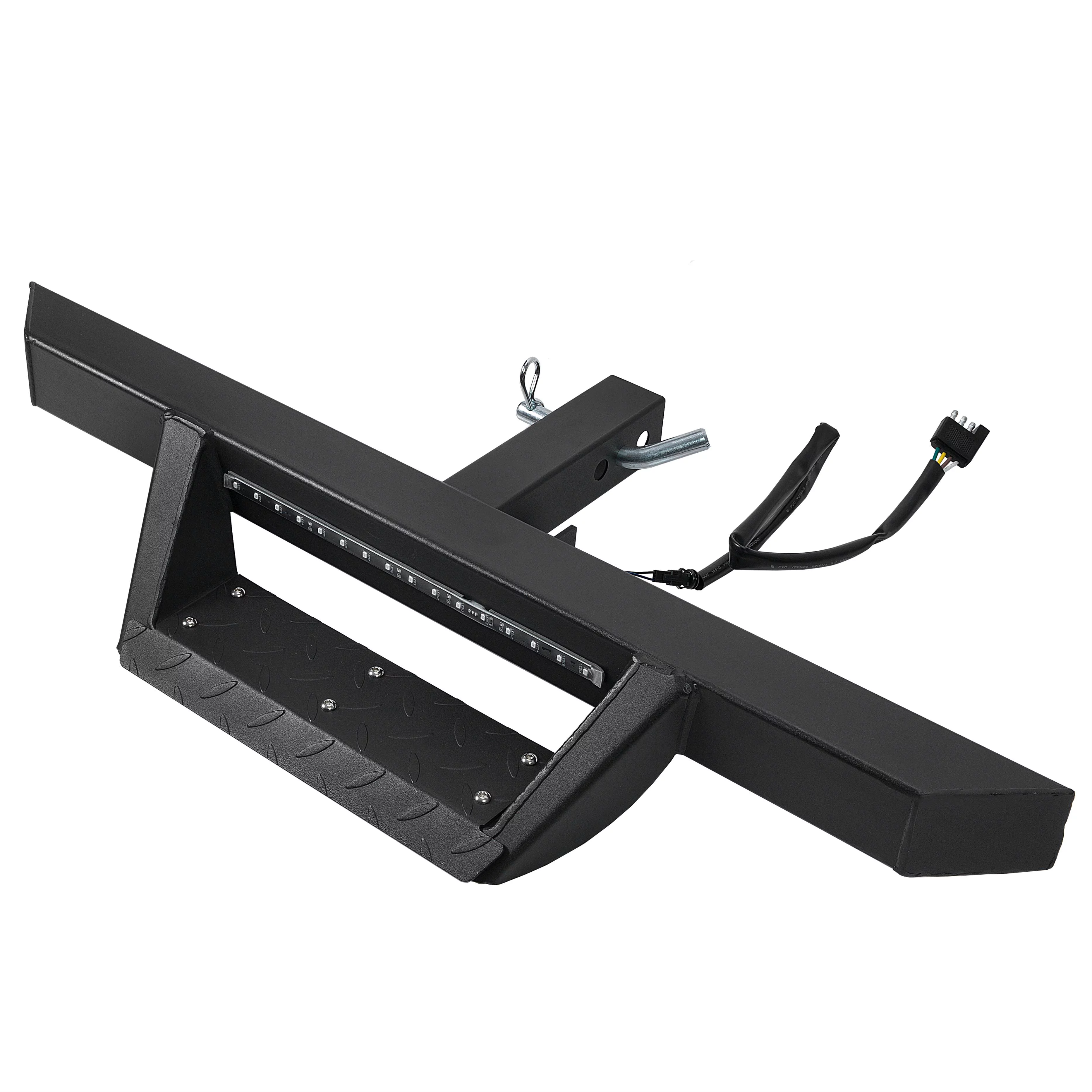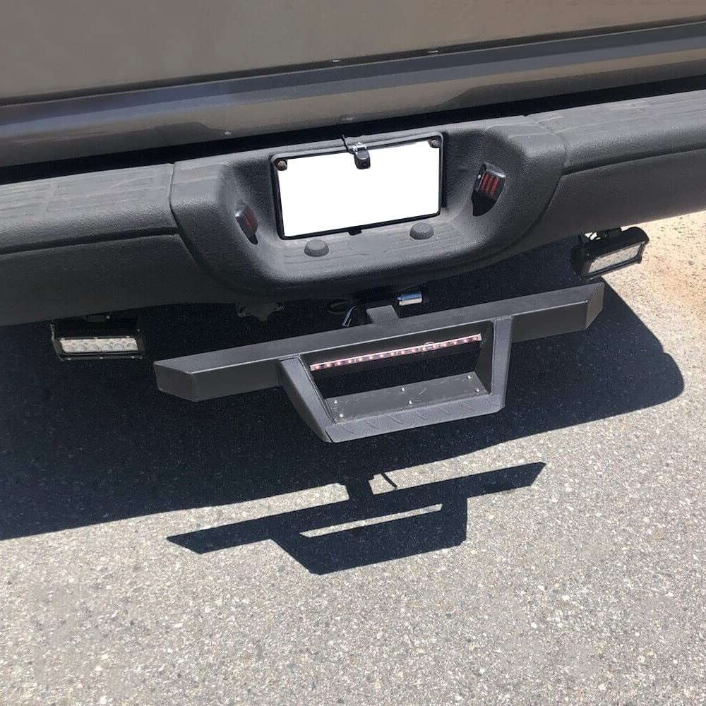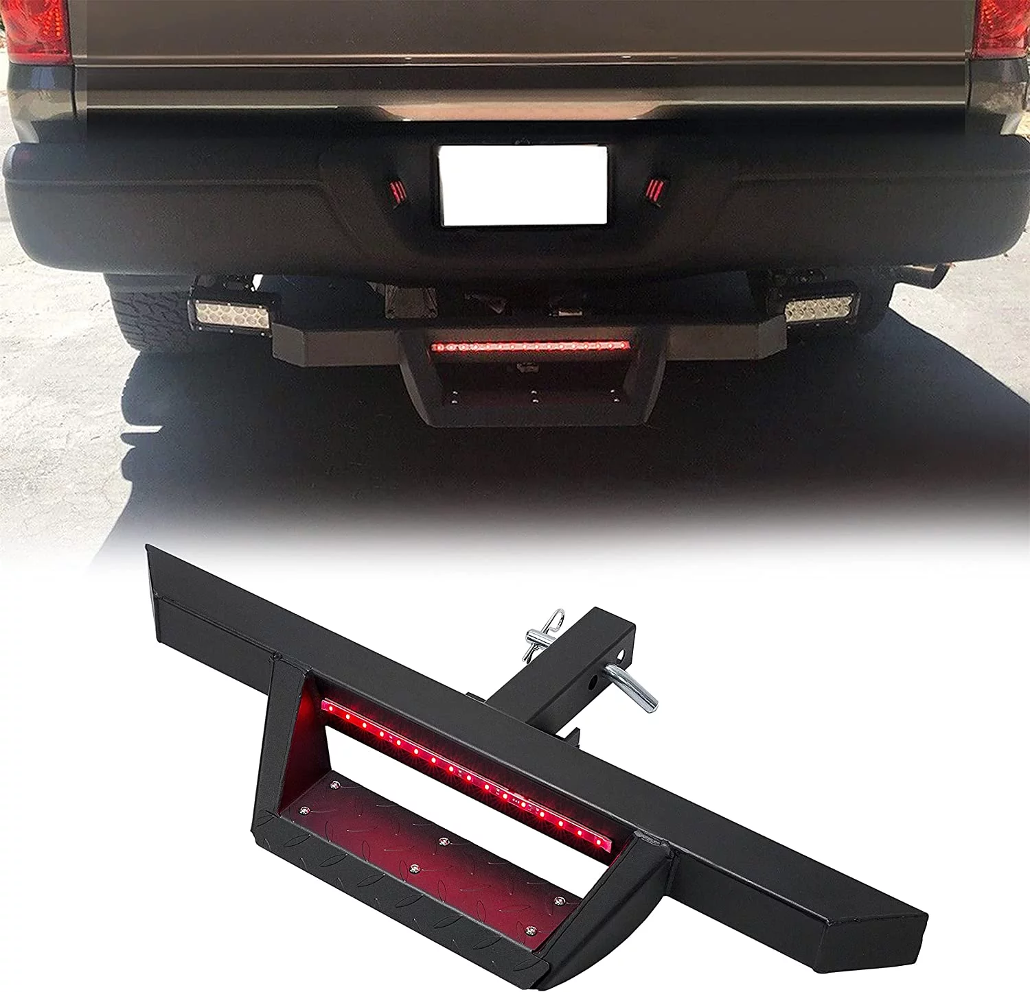 Kojem Rear Step Bar Bumper Guard w/LED Brake Light for 2" Tow Trailer Receiver Hitch Black Truck Pickup SUV Van