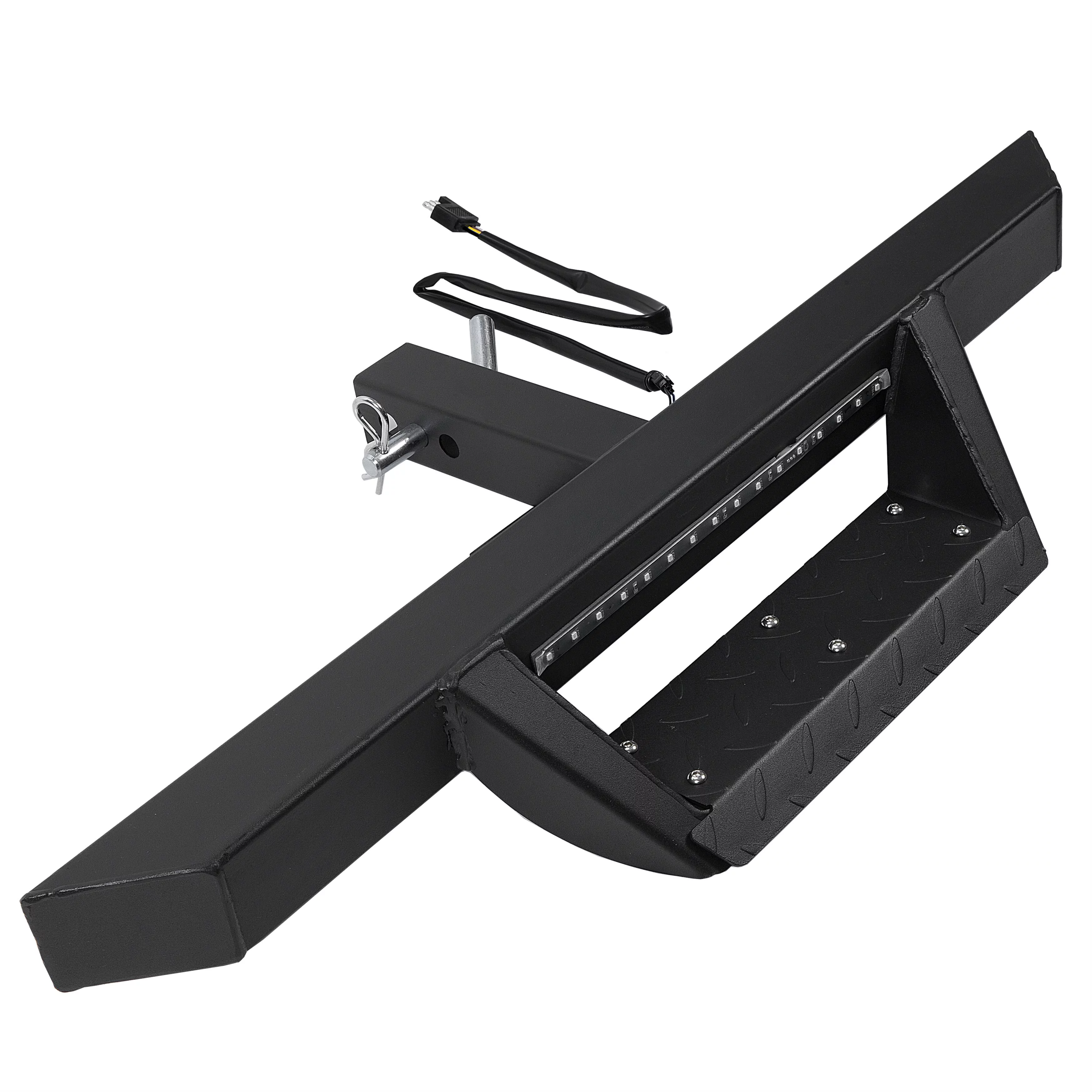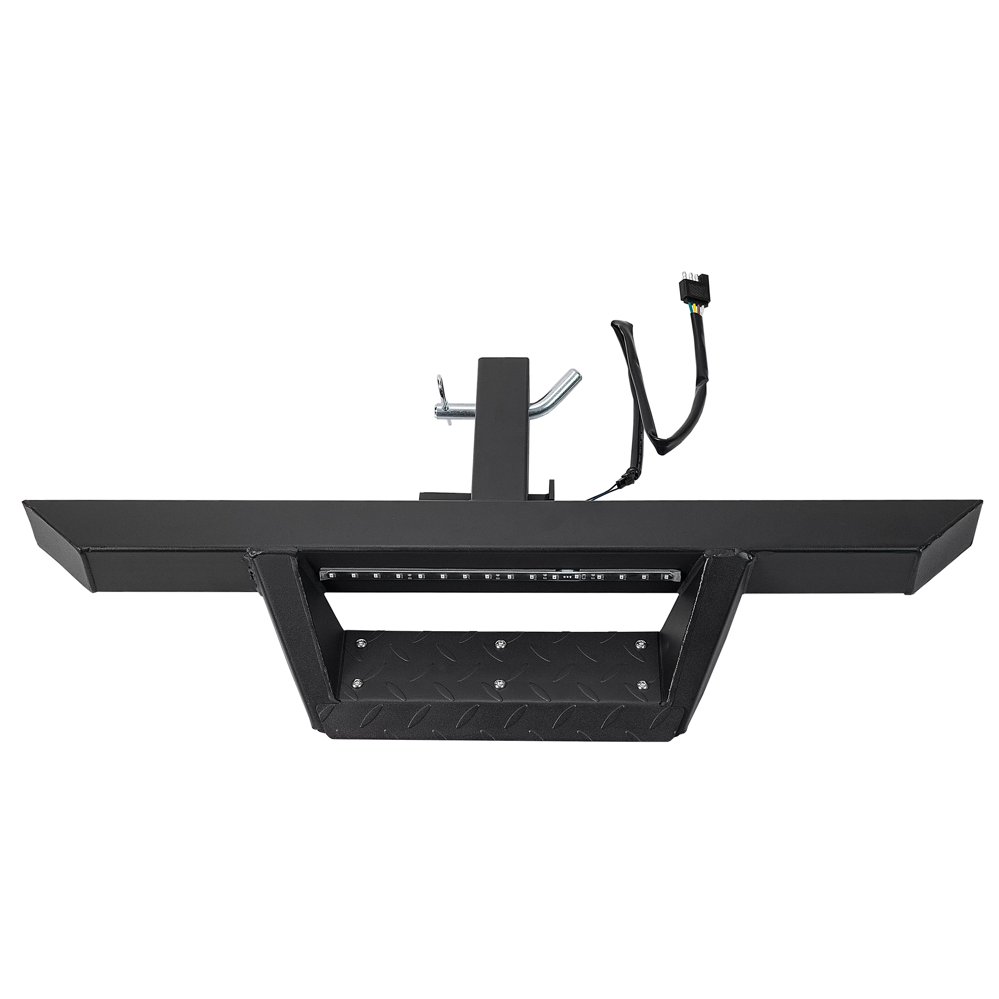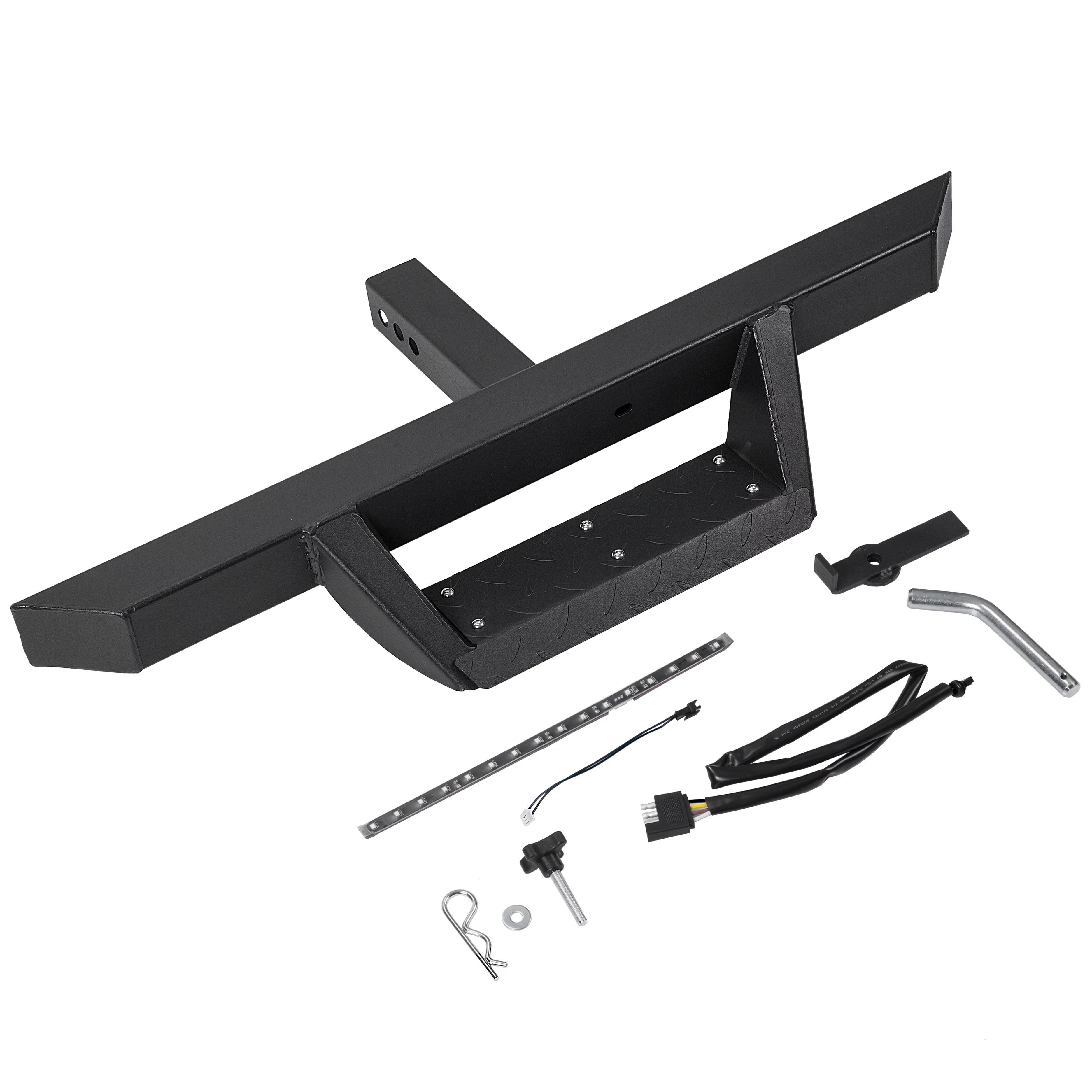 Kojem Rear Step Bar Bumper Guard w/LED Brake Light for 2" Tow Trailer Receiver Hitch Black Truck Pickup SUV Van