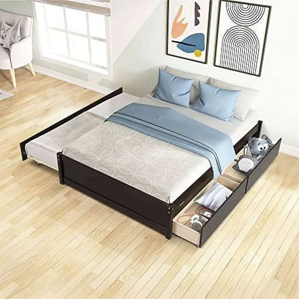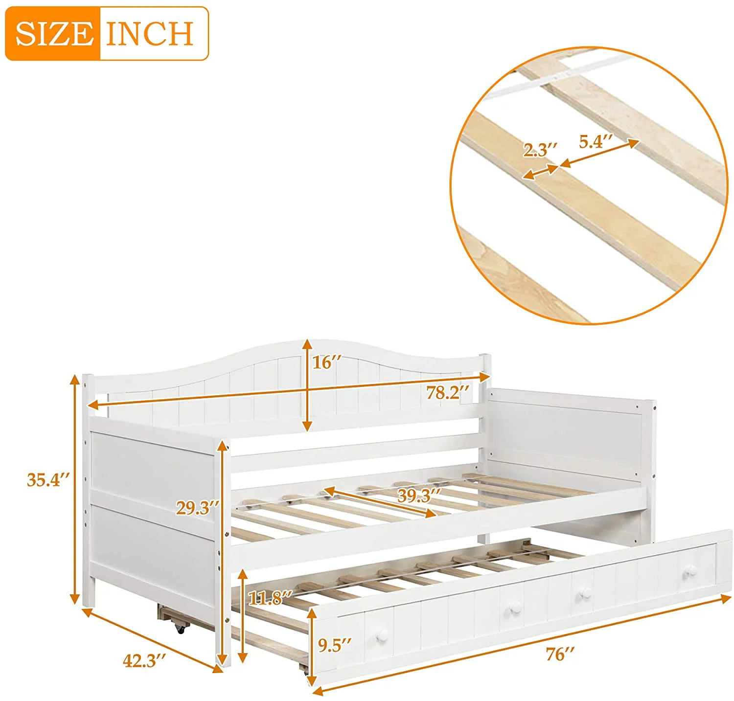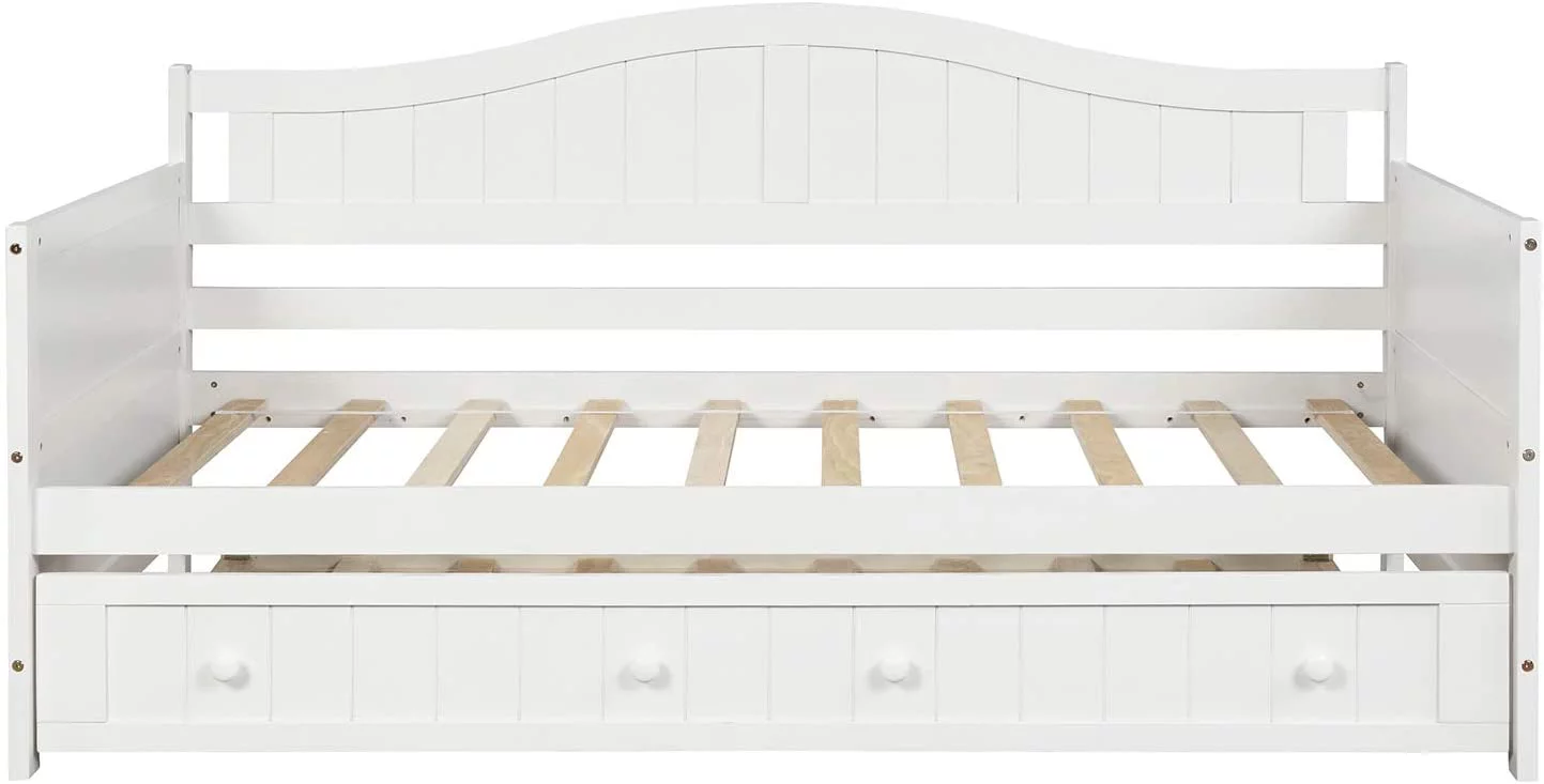 Churanty Twin Daybed Wood Sofa Bed for Bedroom Living Room with Trundle,White