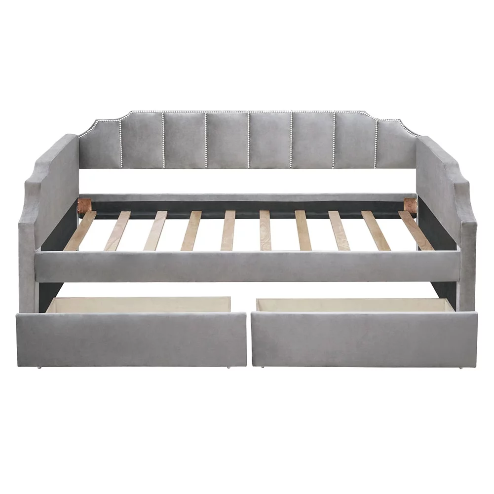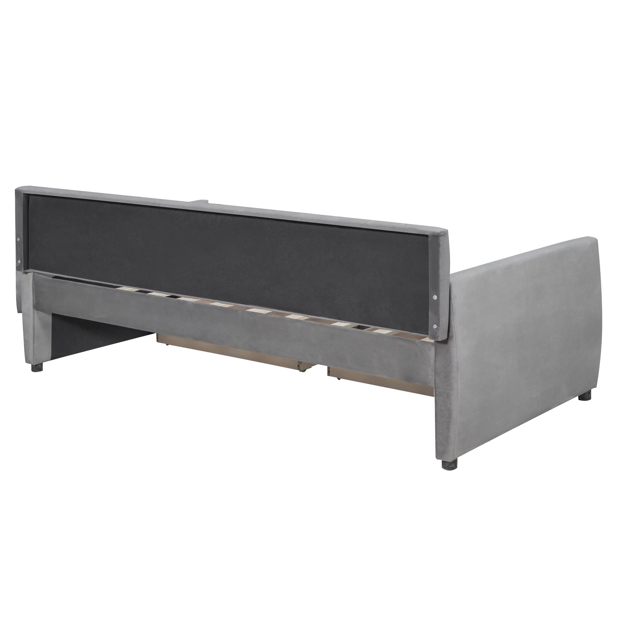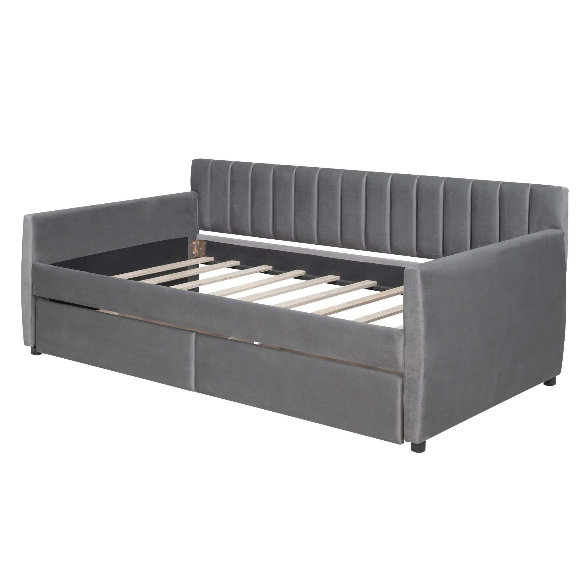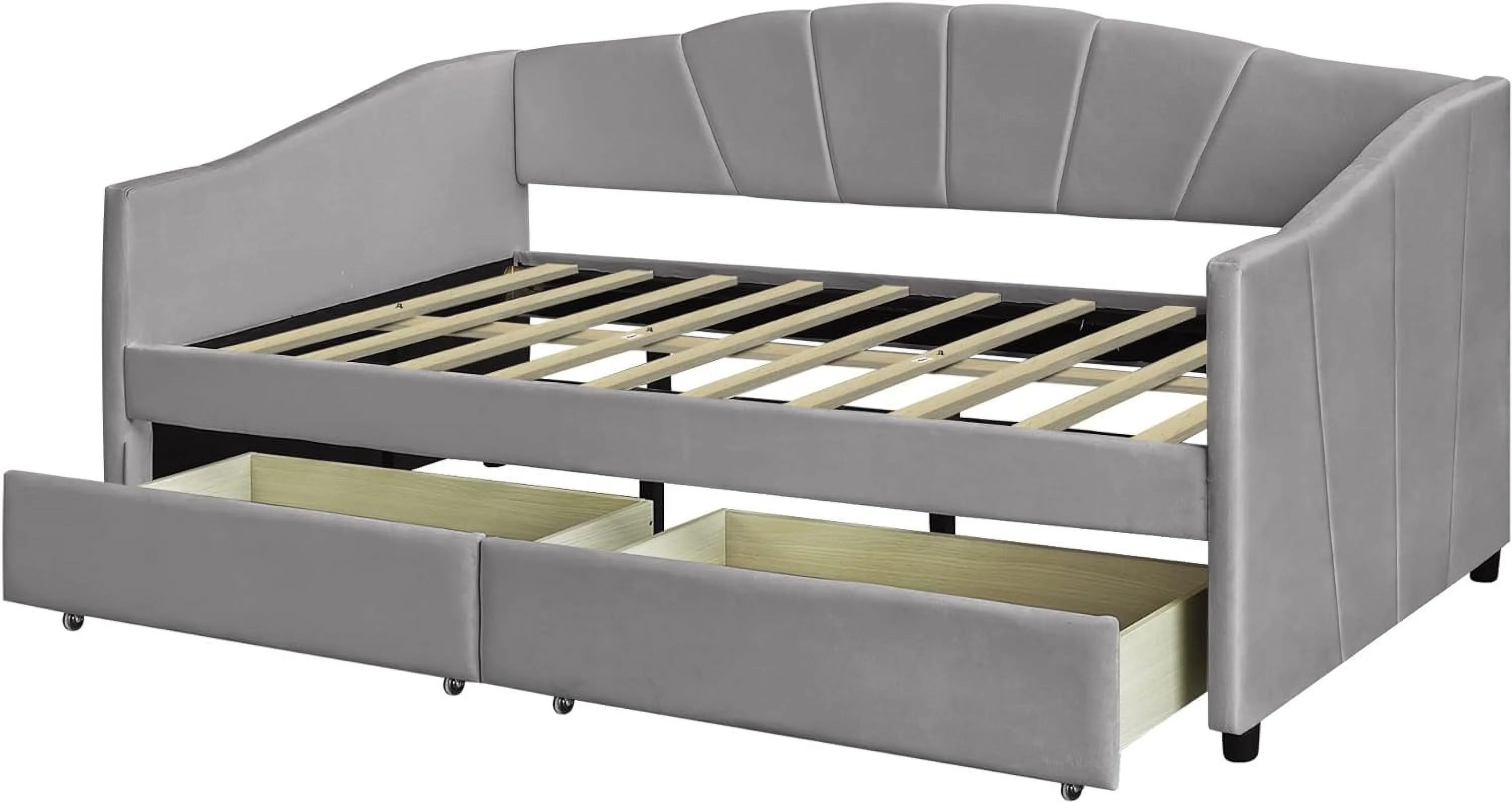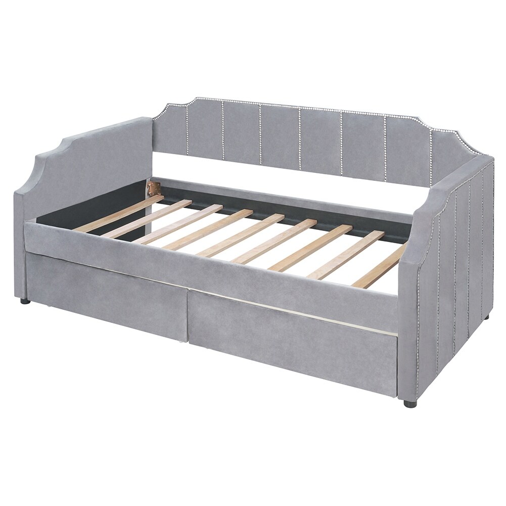 CoSoTower Twin Size Upholstered Daybed with Drawers, Wood Slat Support, Gray