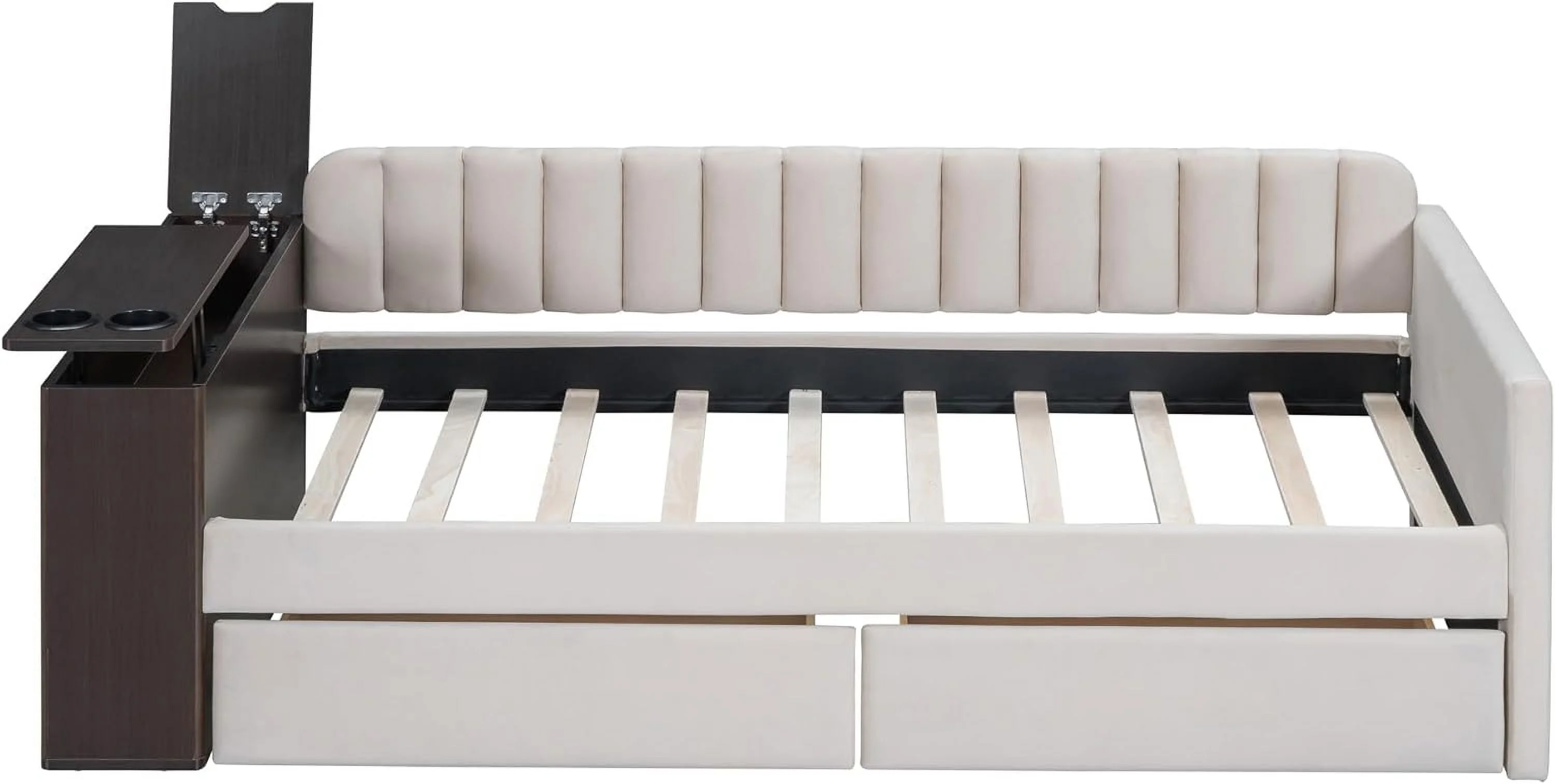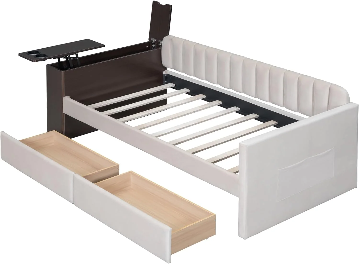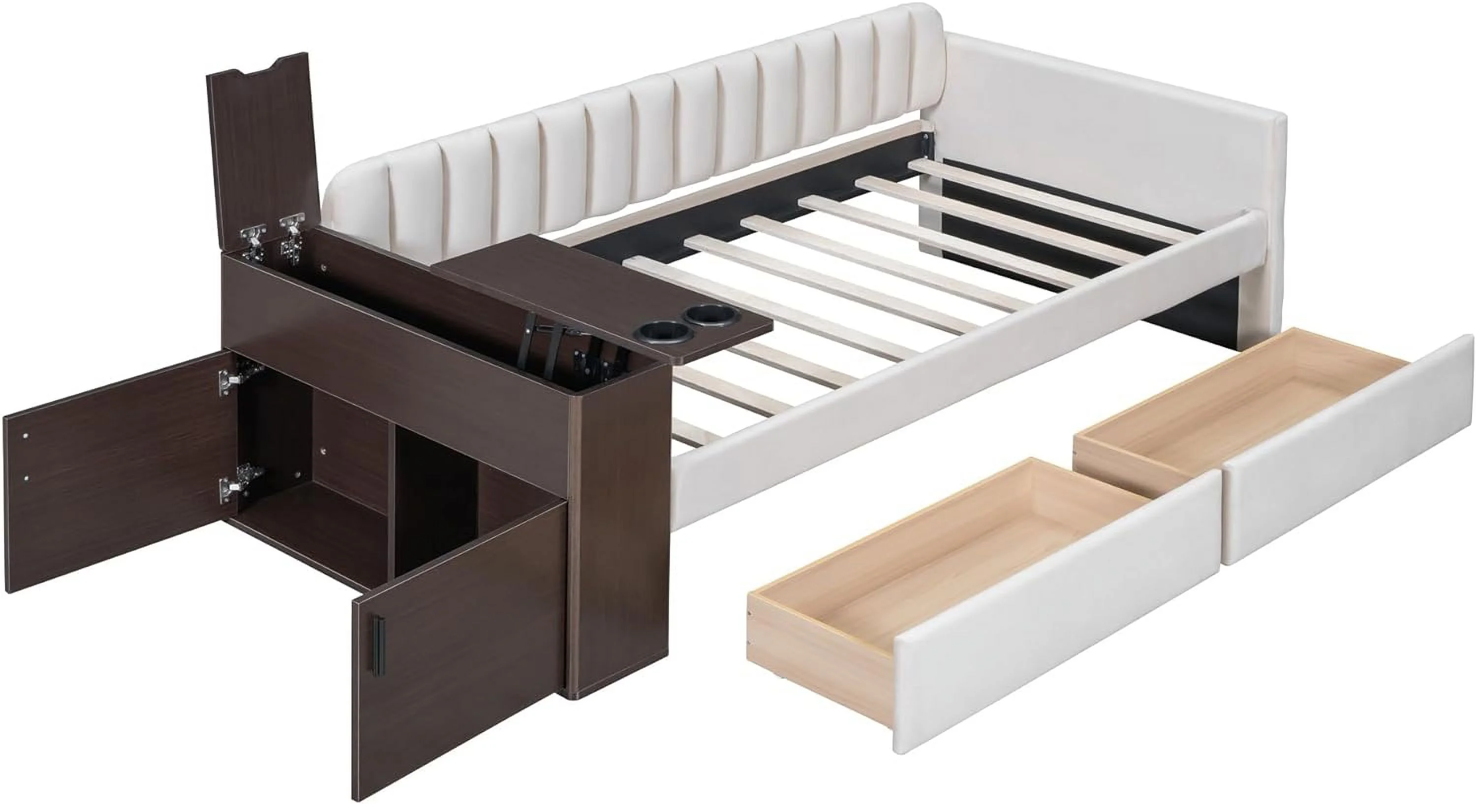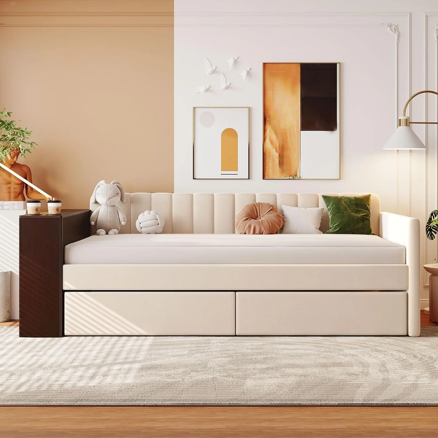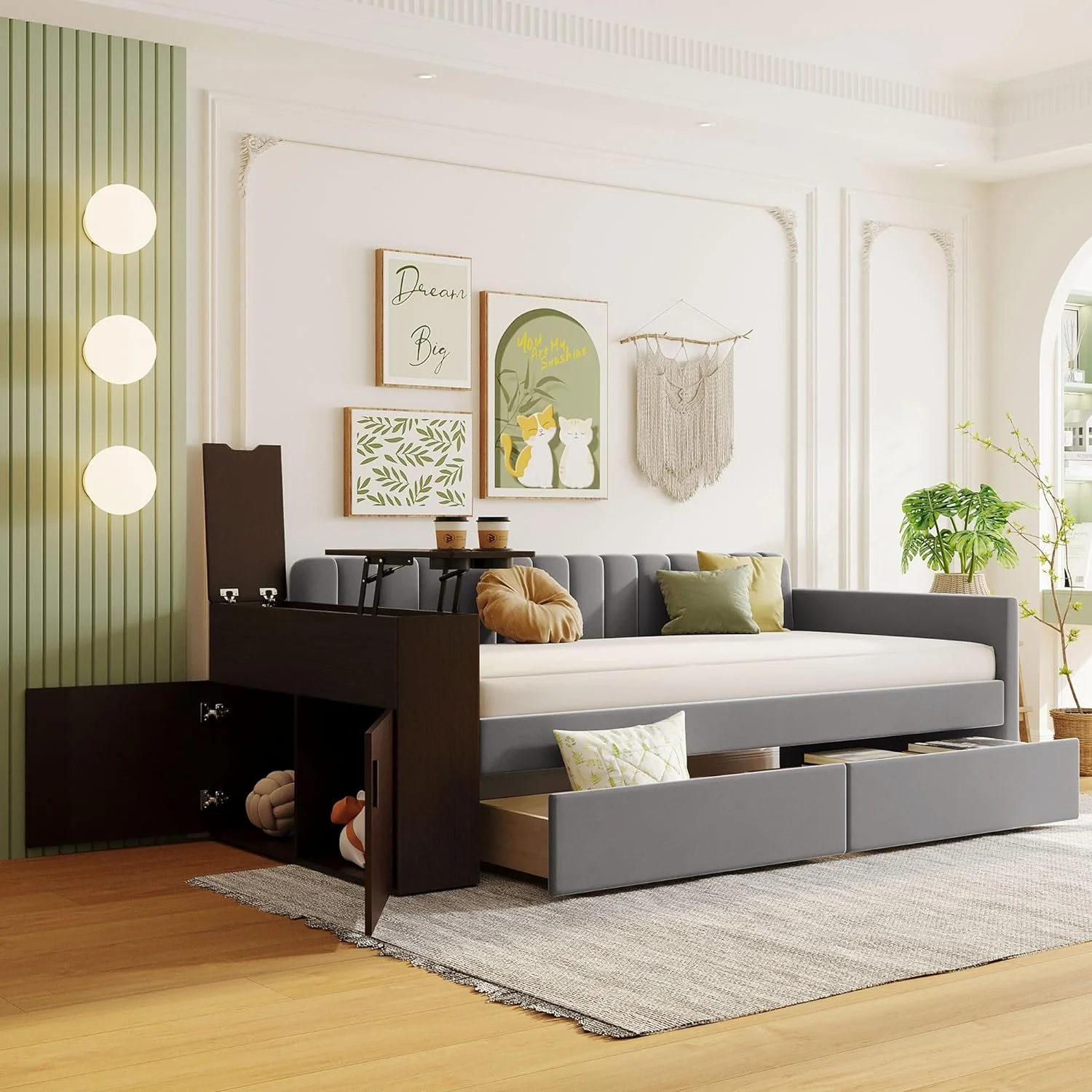 CoSoTower Twin Size Upholstered Daybed with Drawers, Wood Slat Support, Gray