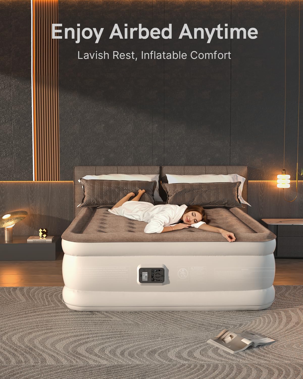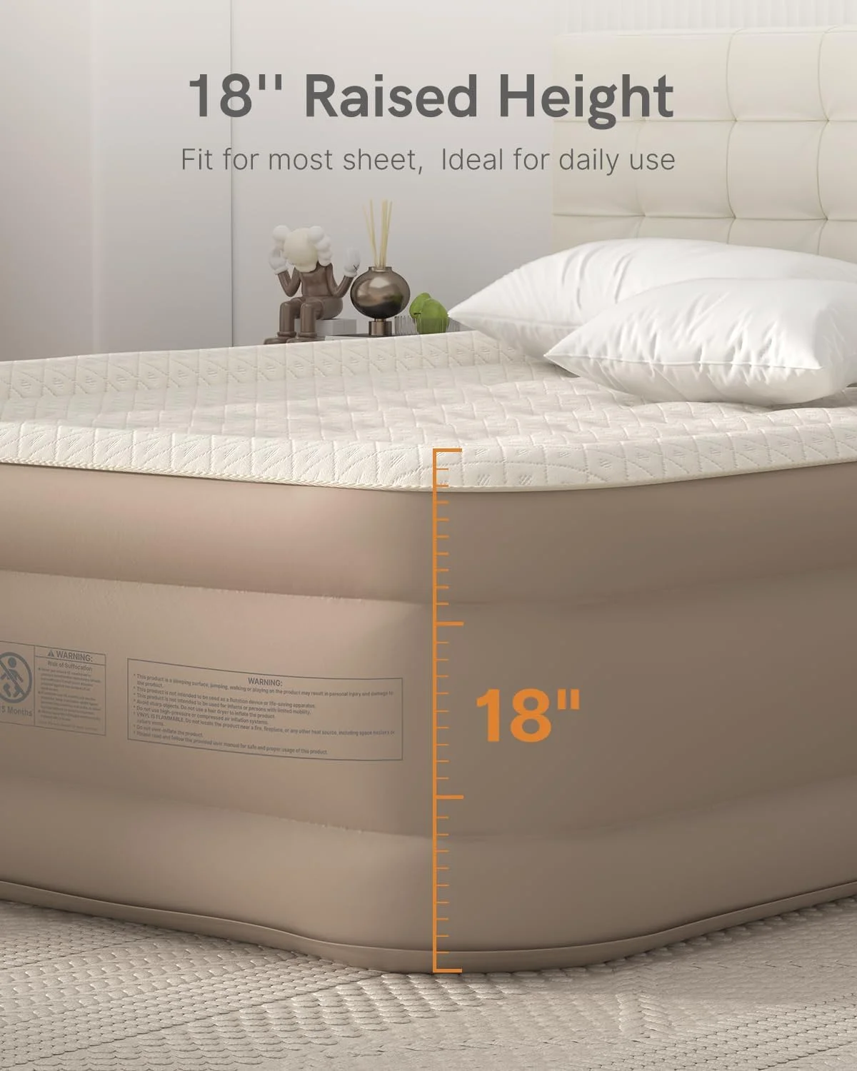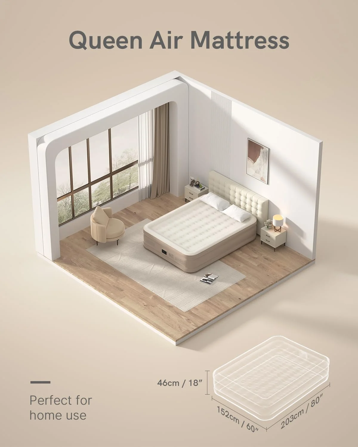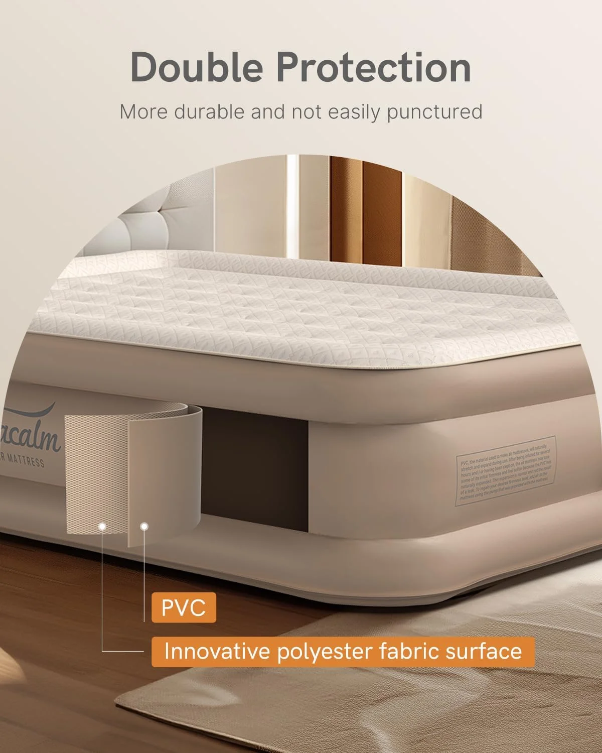 Queen Air Mattress with Patented Cover \u2013 Deflation Proof & Puncture Proof Air Bed with Built-in Pump