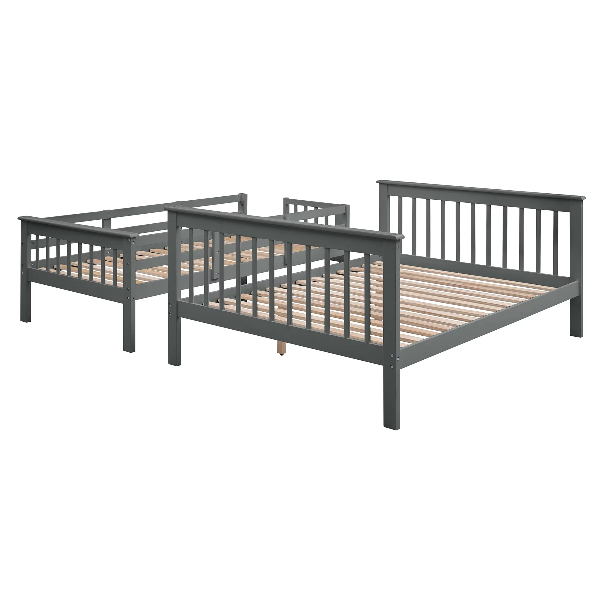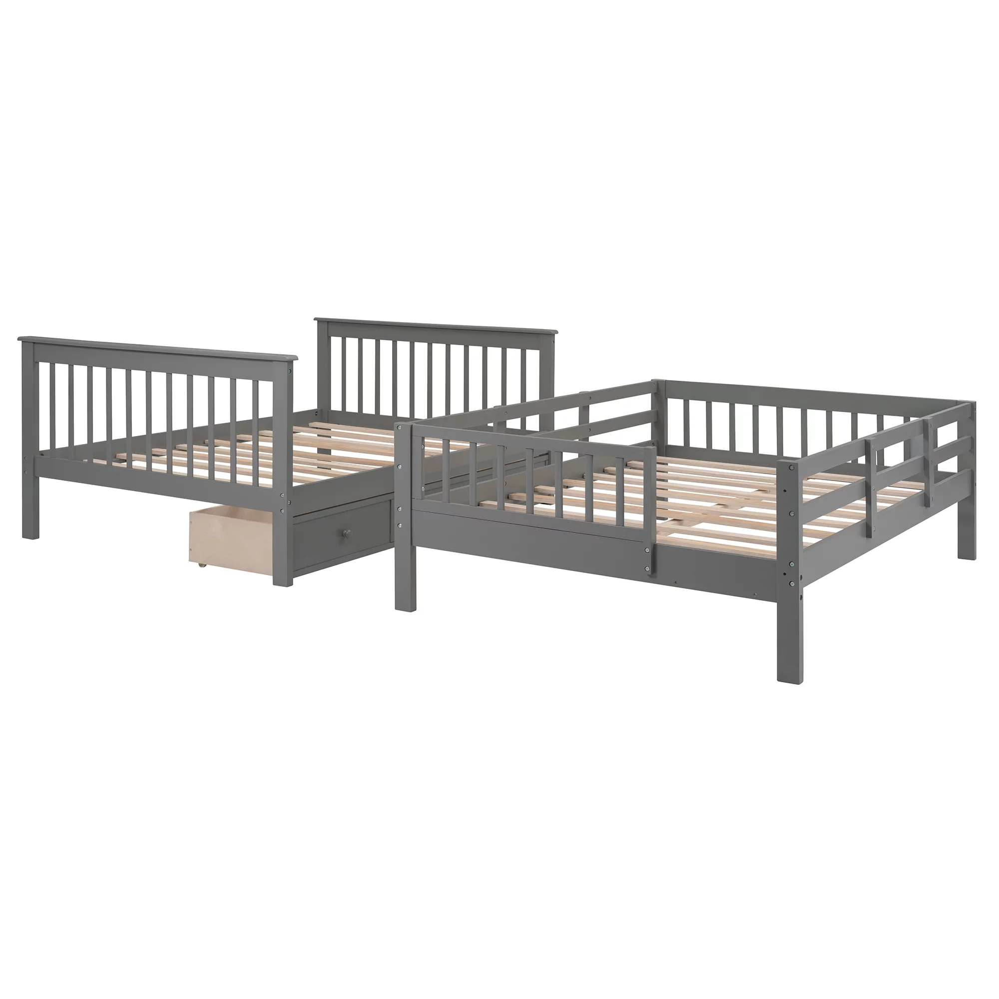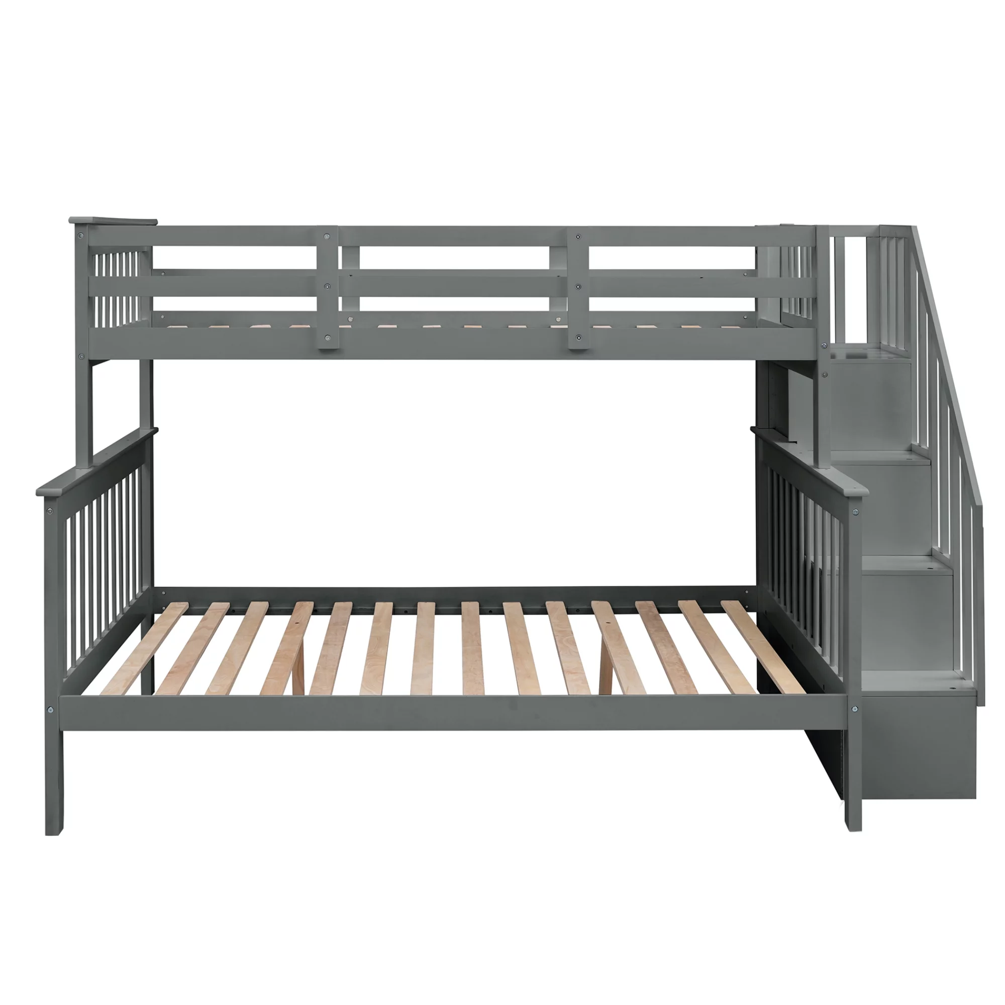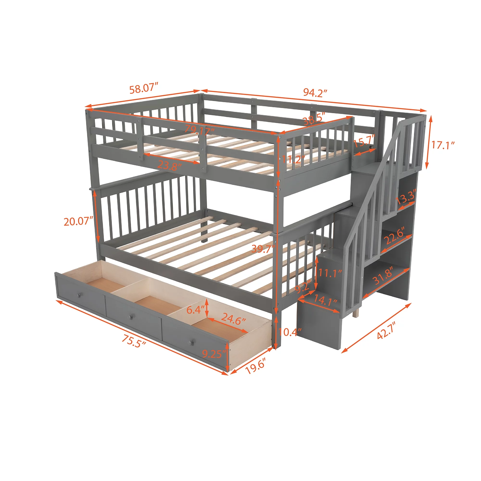 Gray Stairway Full-Over-Full Bunk Bed with Drawer, Storage and Guard Rail for Bedroom