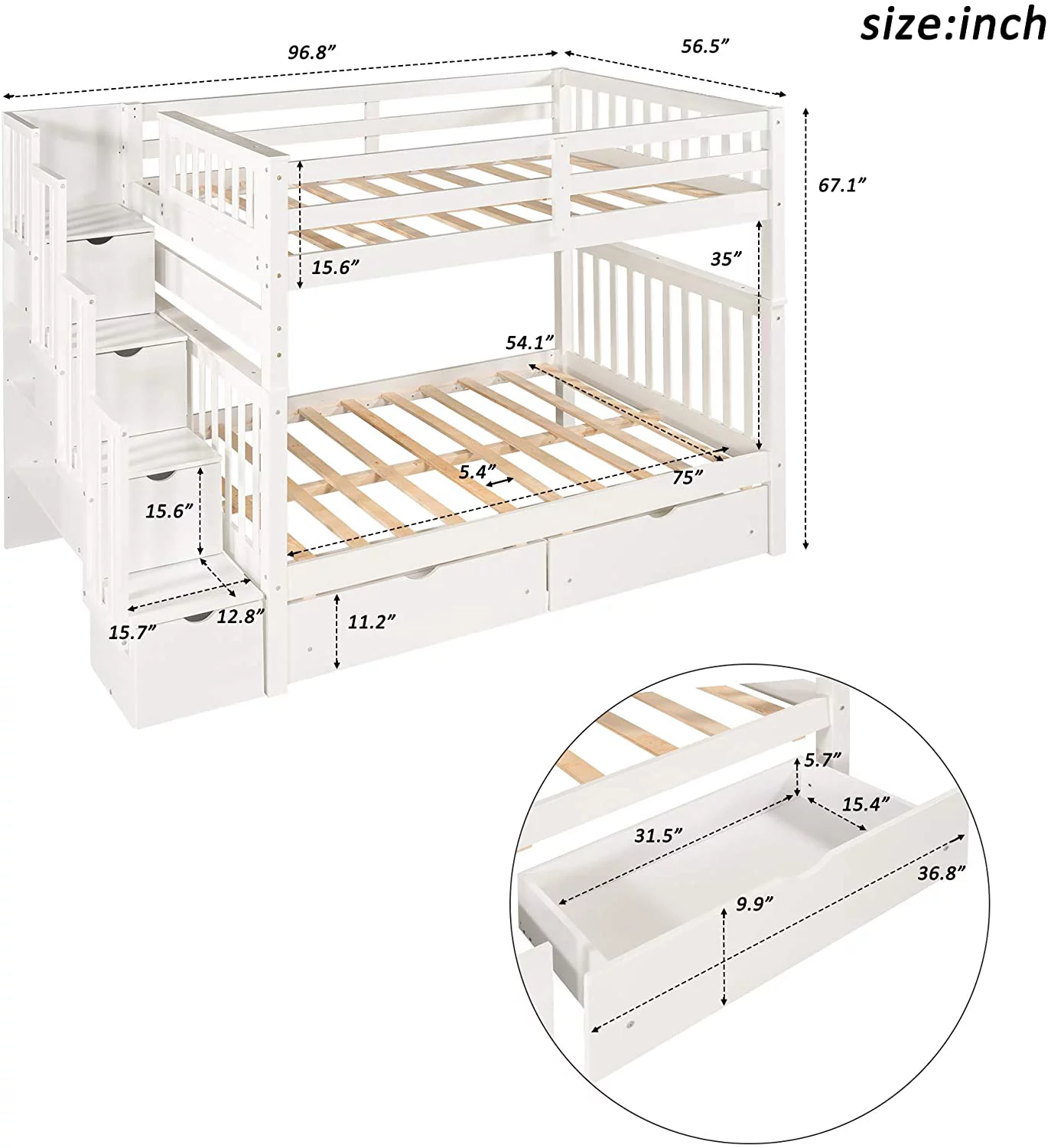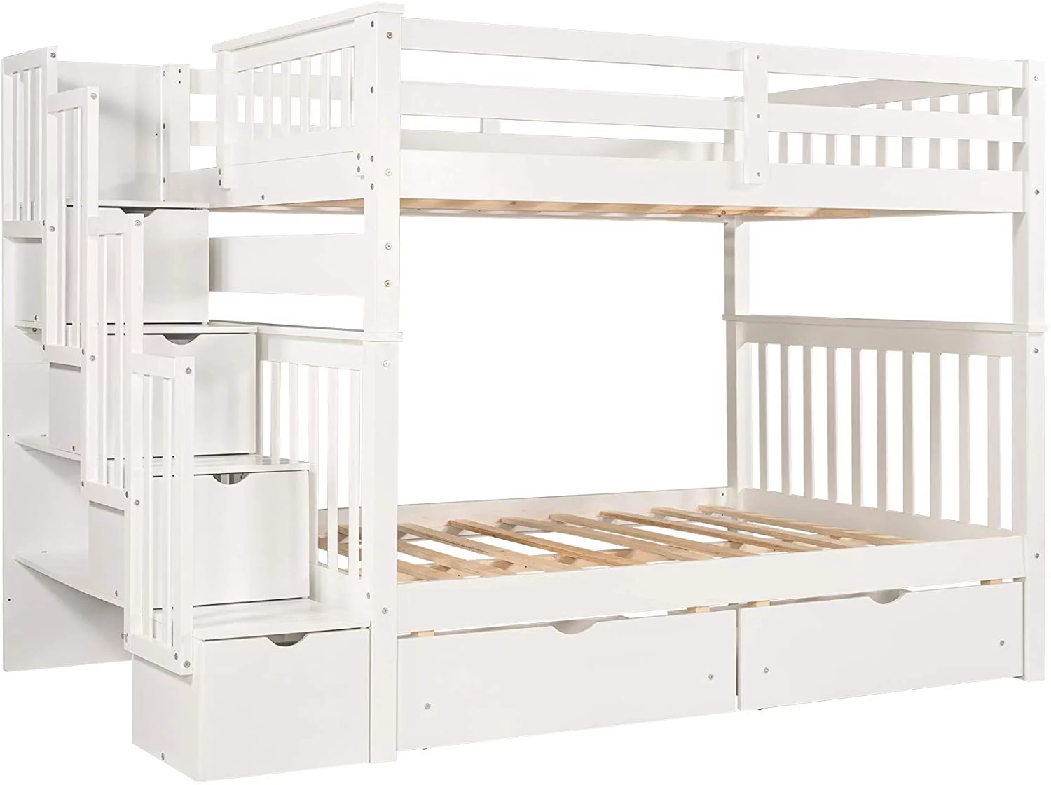 CoSoTower Stairway Twin Over Full Bunk Bed with Drawers, Storage Shelf and Guard Rail for Kids