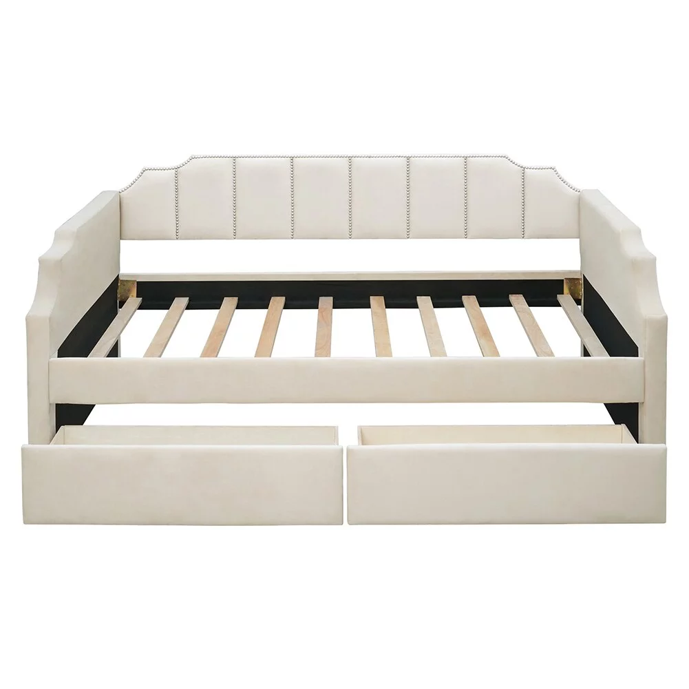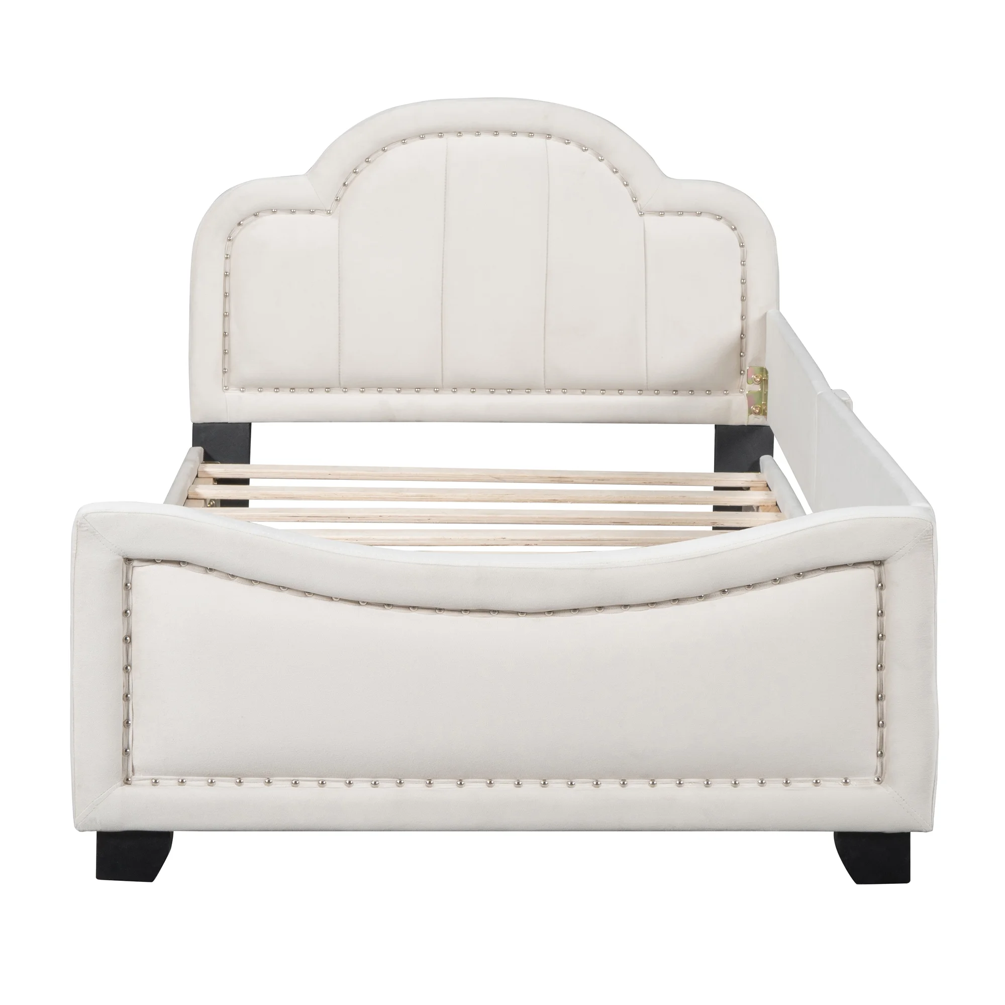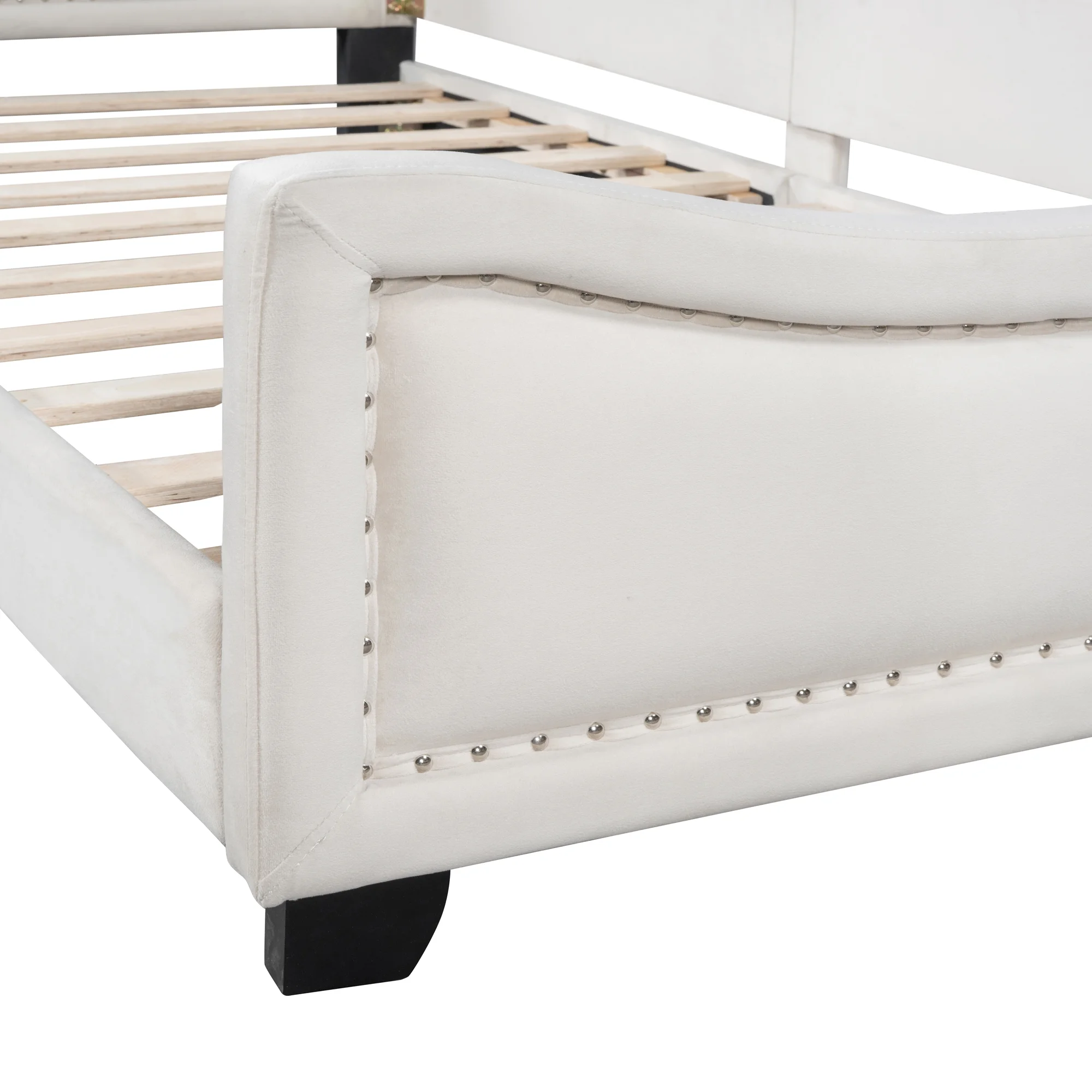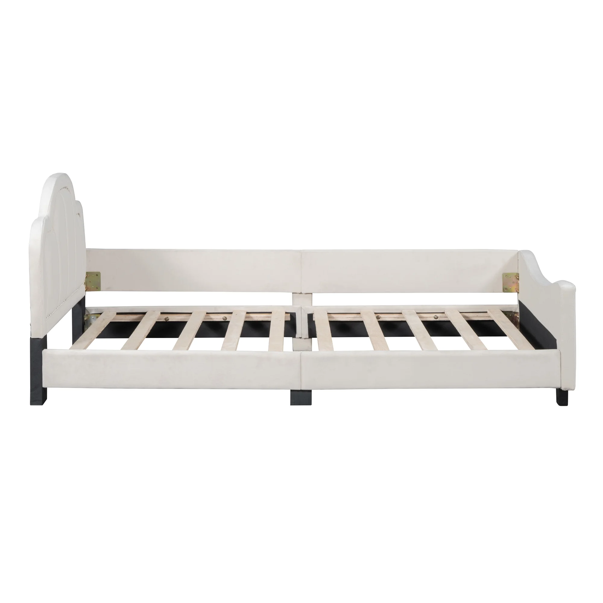 CoSoTower Twin Size Upholstered Daybed with Cloud Shaped Headboard, Embedded Elegant Copper Nail Design, Beige