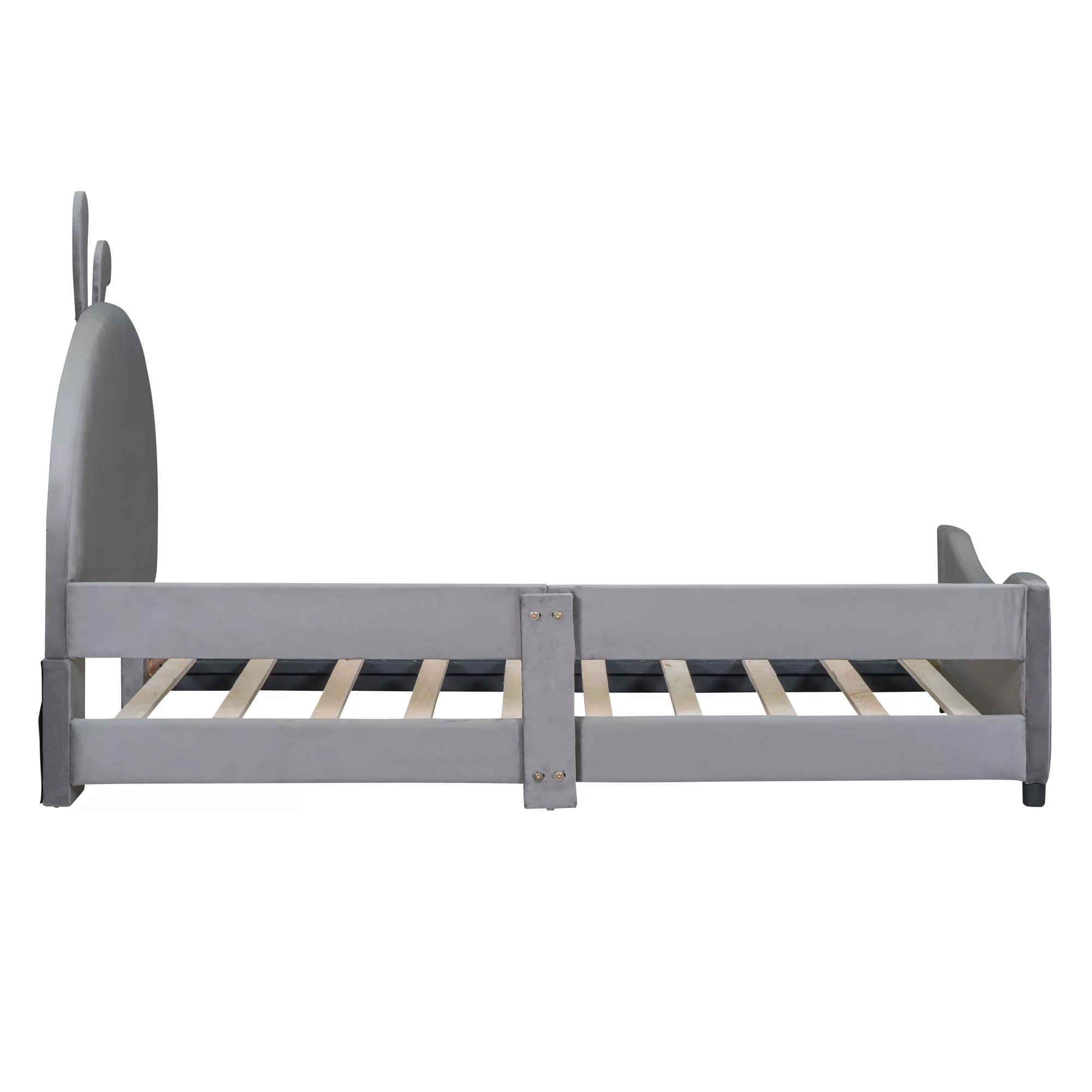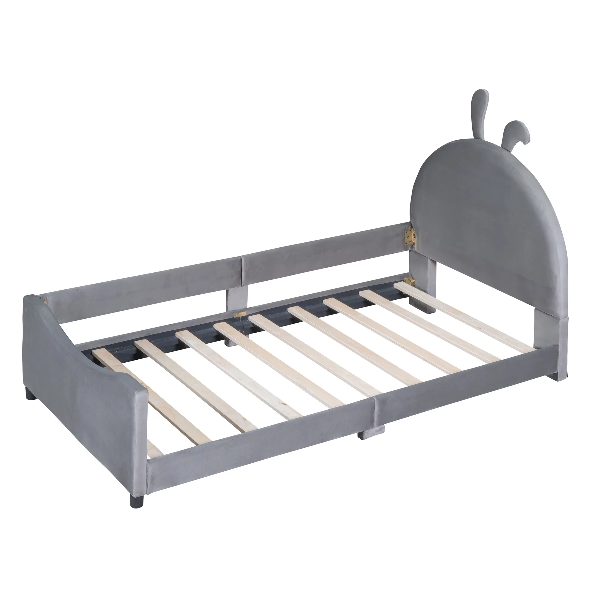 CoSoTower Twin Size Upholstered Daybed with Rabbit Ear Shaped Headboard, Gray