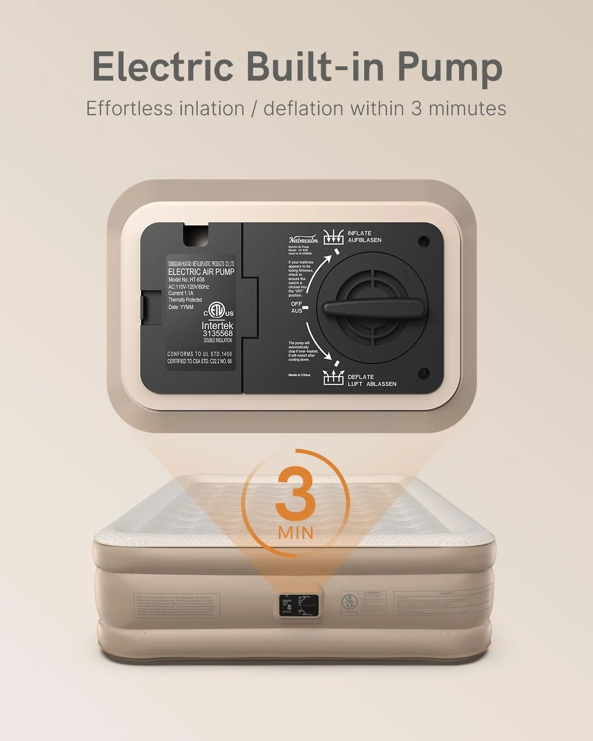 NatraCalm Air Mattress with Built in Pump, Blow up Mattress with Luxury Soft Top Surface, Queen Size, 650lb MAX