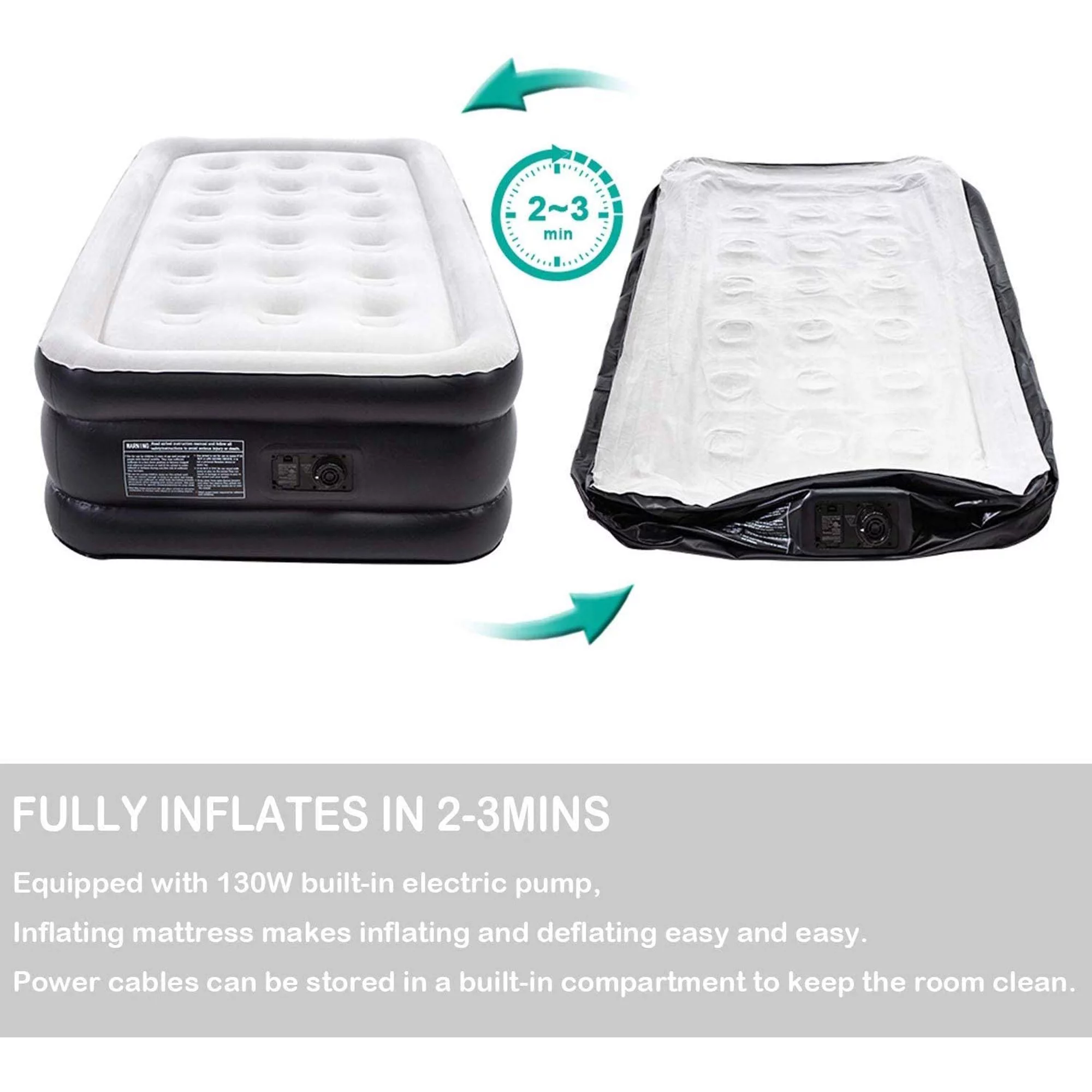 Anself Portable Air Mattress-Waterproof Blow Up Bed with Built-in Pump & Pillow for Camping and Home Guests