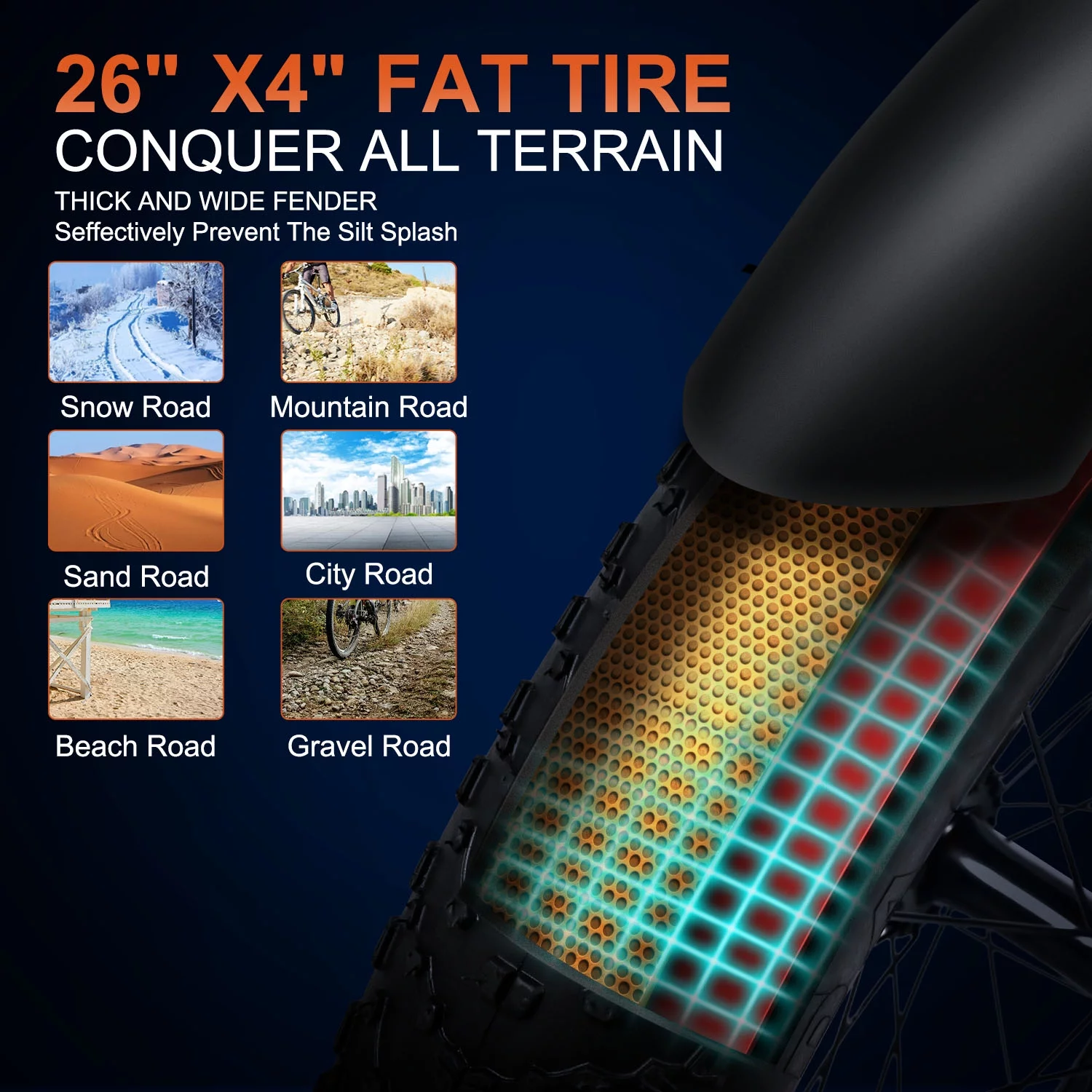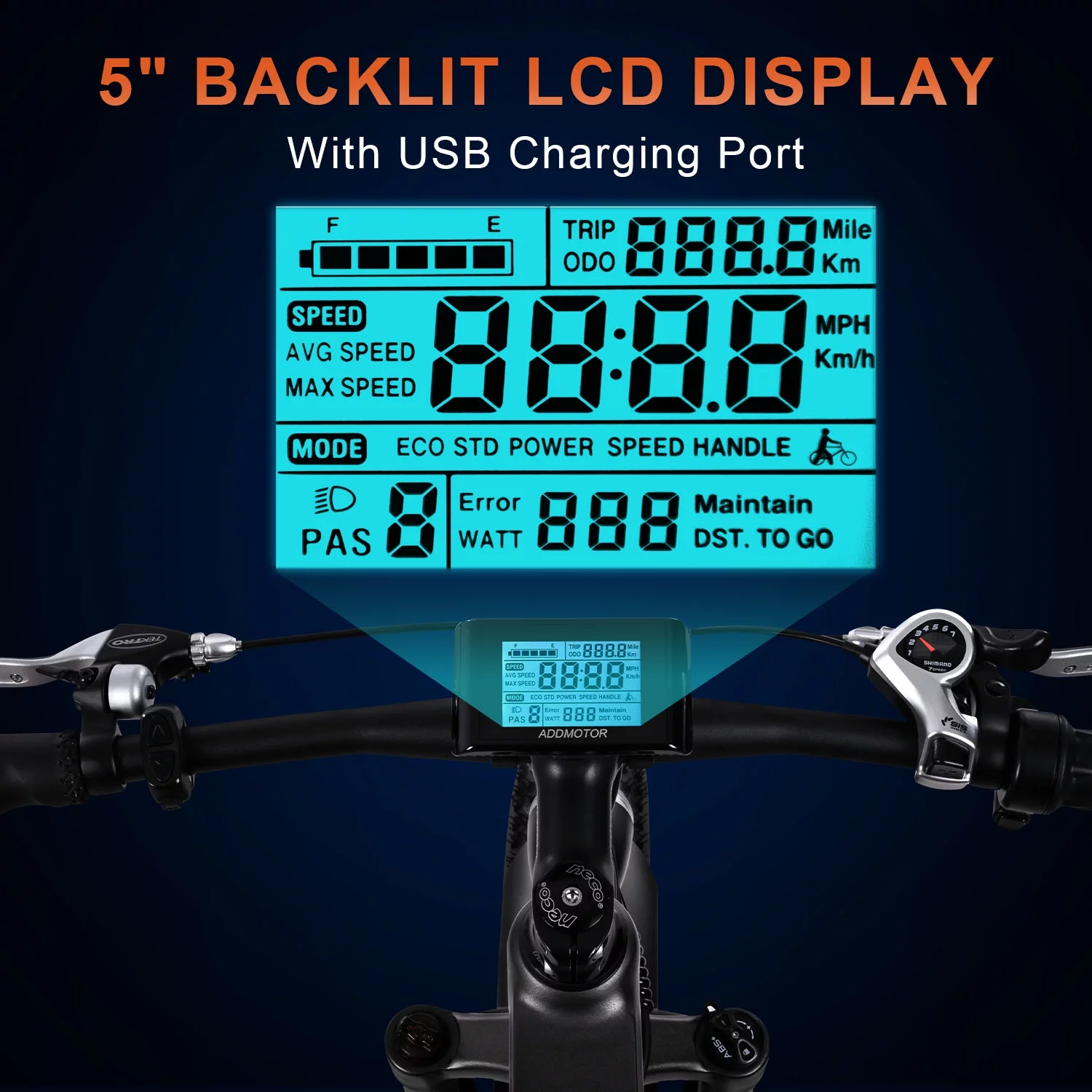 Addmotor 26" Electric Bike, 750W 48V 17.5Ah Fat Tire Mountain Electric Bicycle for Adults, Shimano 7 Speed, 26MPH, M-550 White