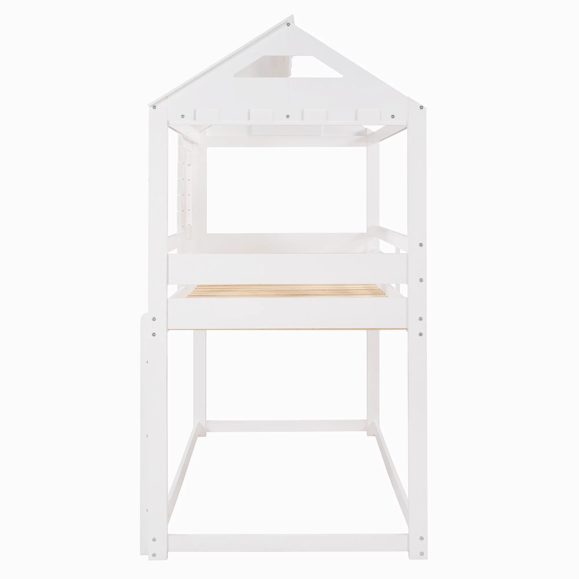 Full Over Full Bunk Bed, Wood Full House Bed Loft Bed Bedroom Furniture With Roof, Window, Guardrail & Ladder, White