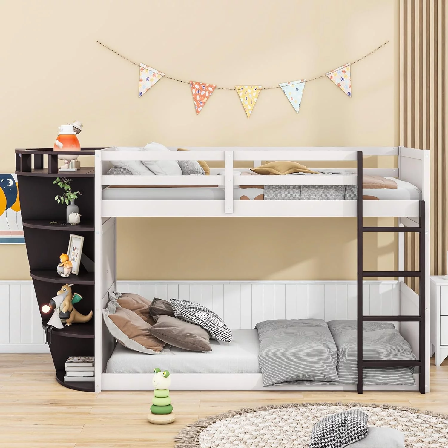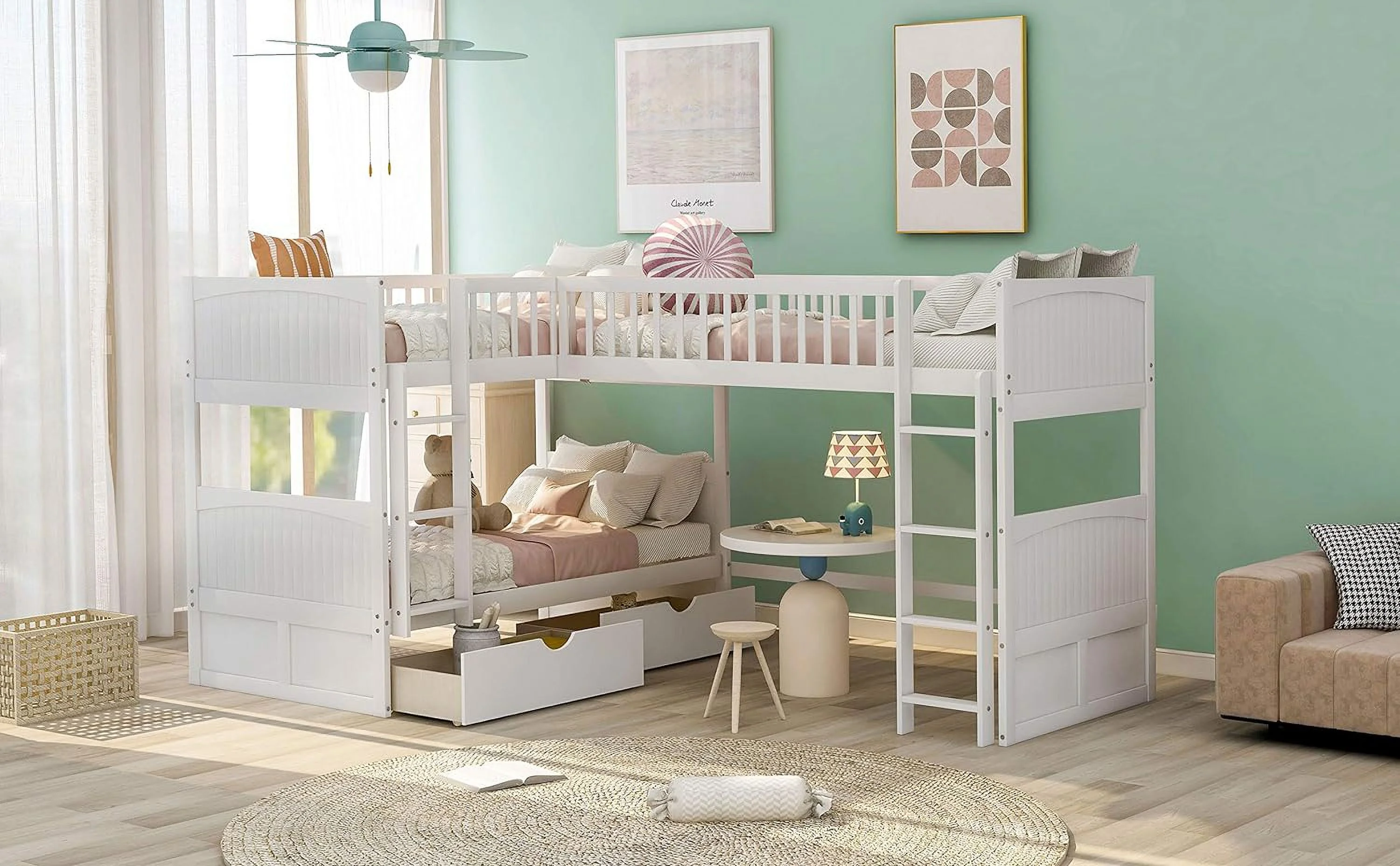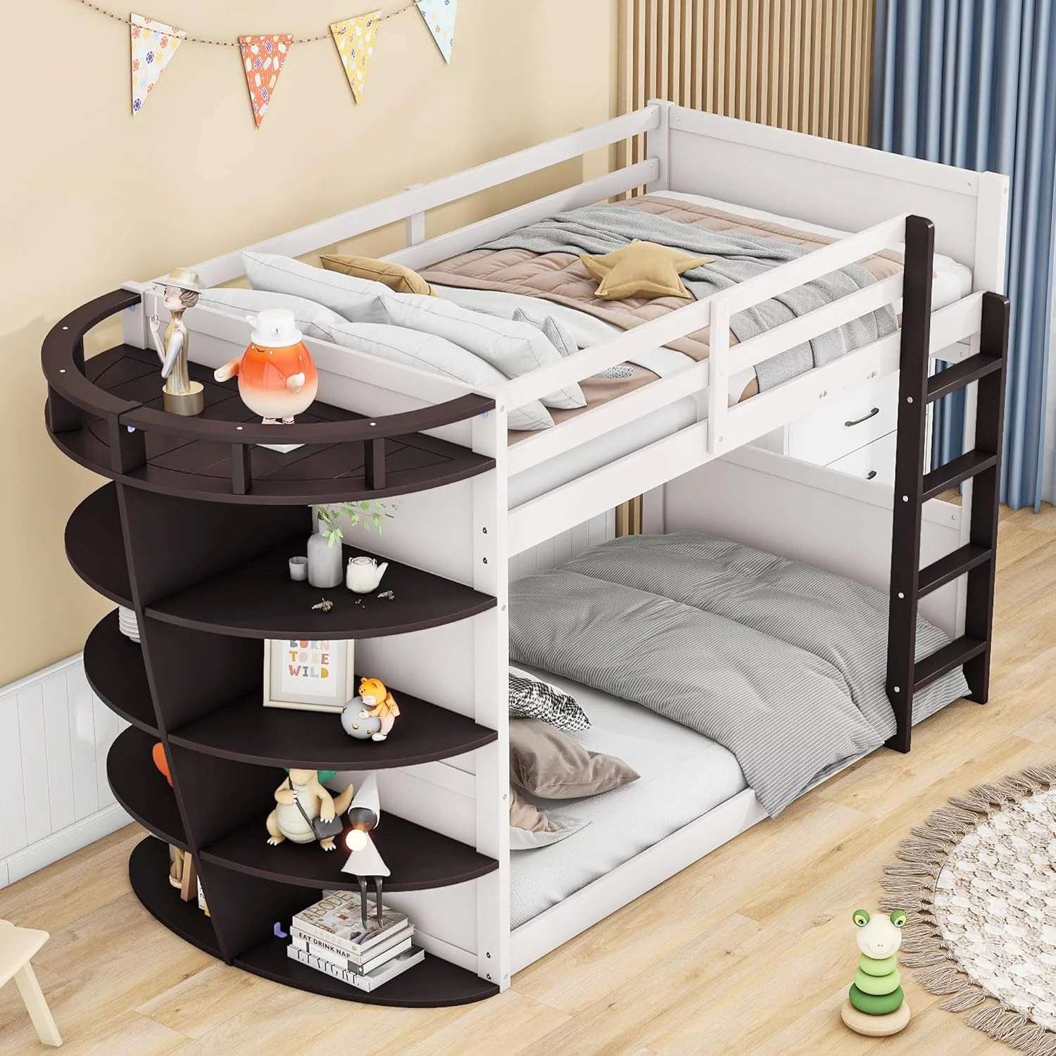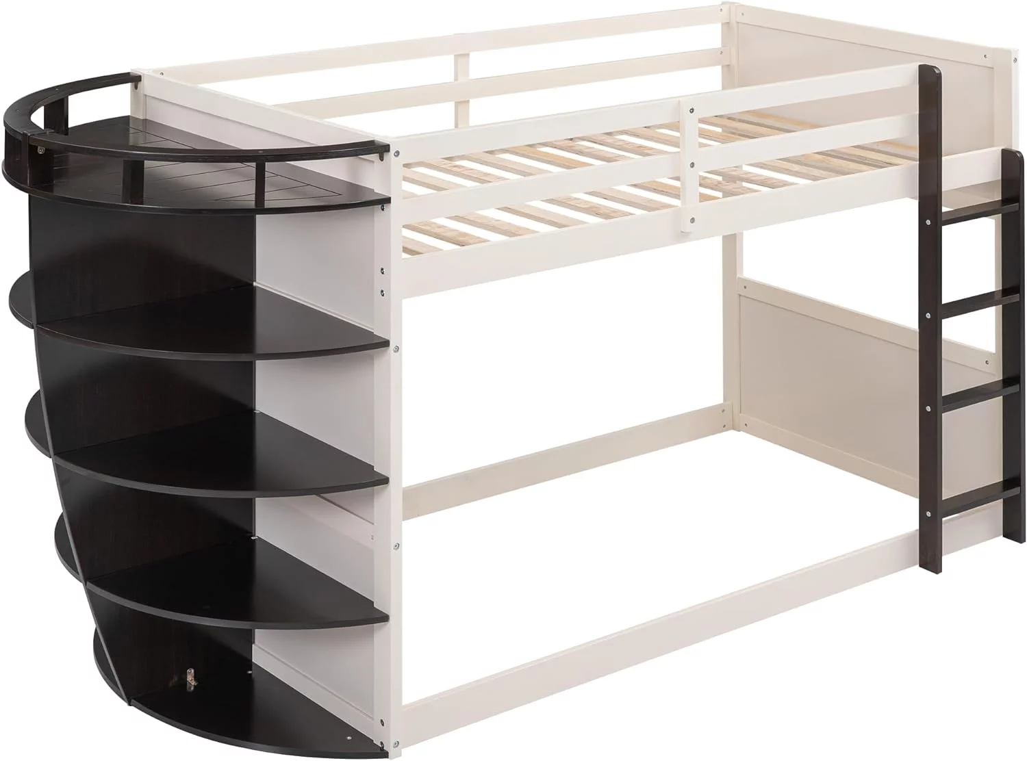 Loft Beds With Slide, Loft Bed Frame Corner Bunk Bed For 2 Kids, Wood Gray Loft Bed For Girls Boys Teens