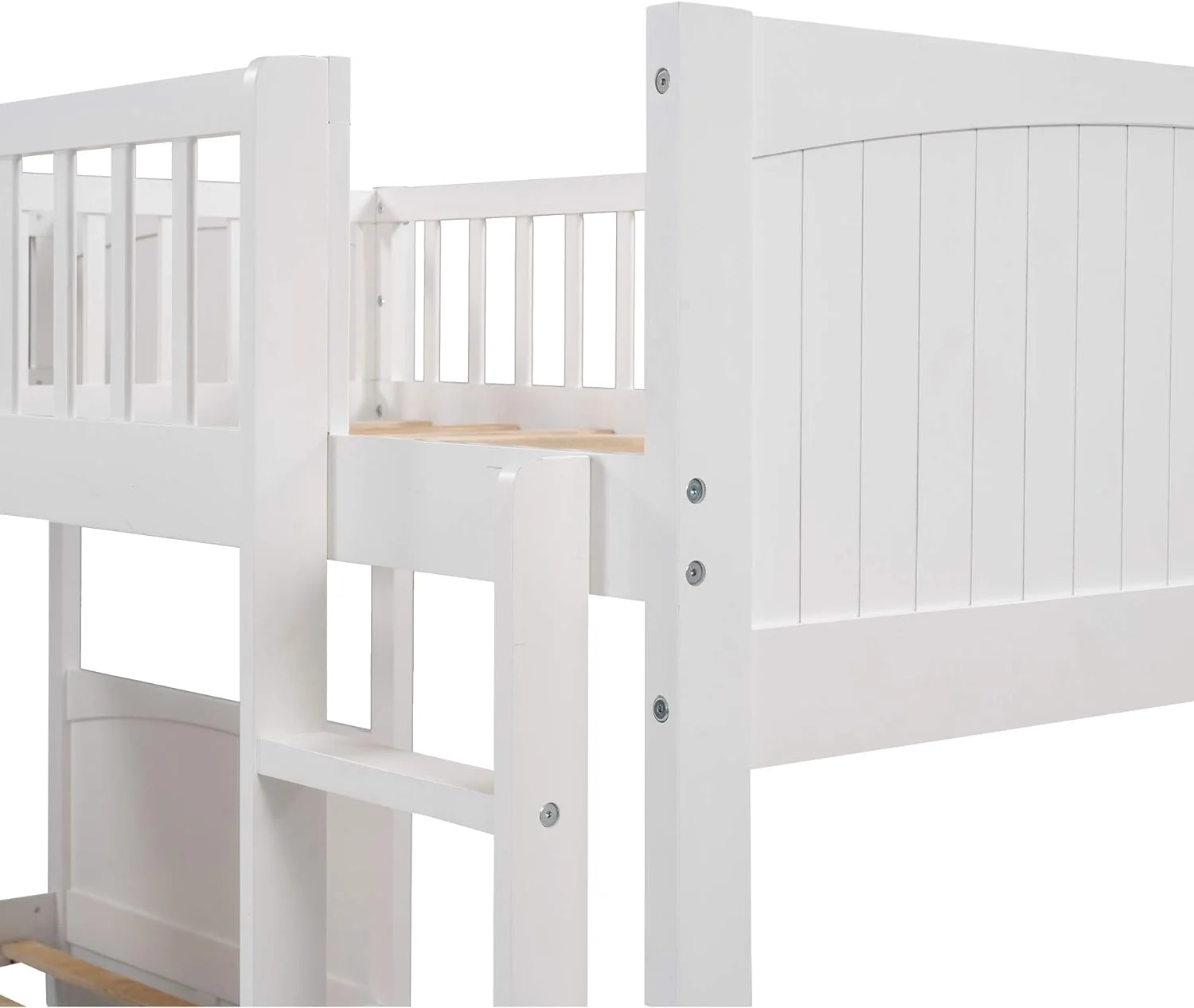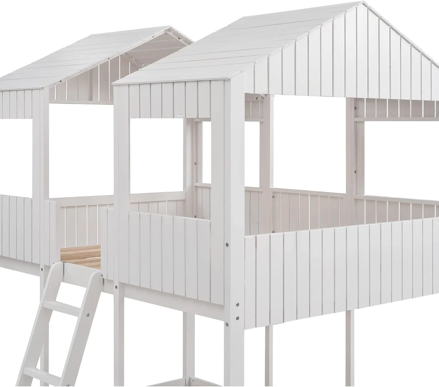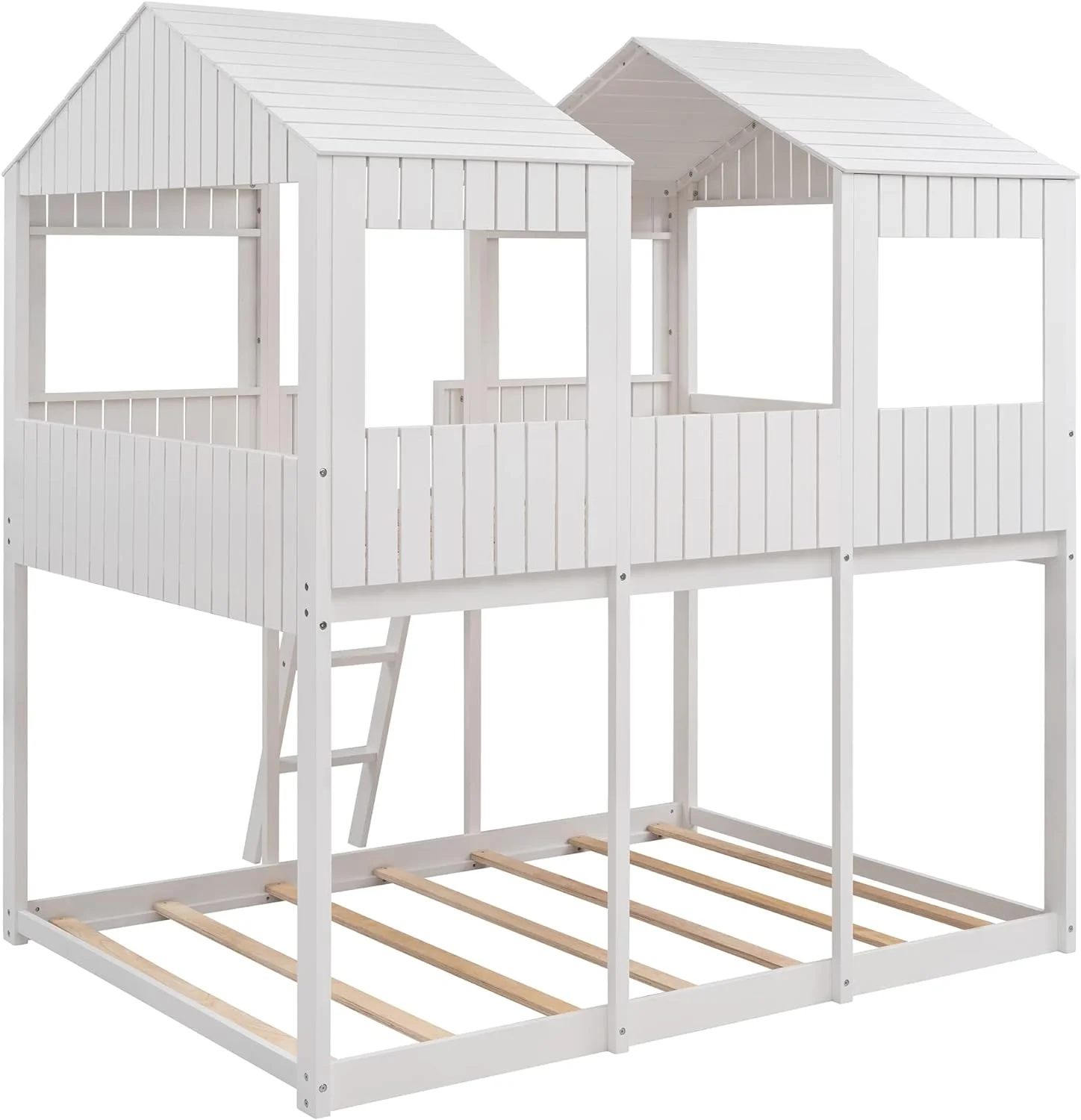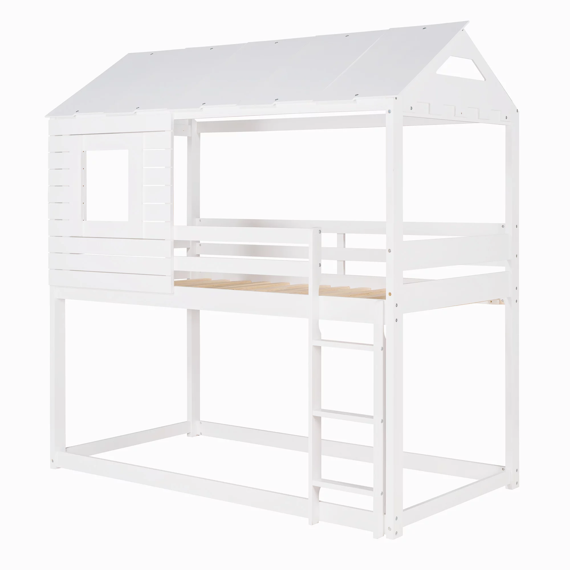 CoSoTower Twin Over Twin Bunk Bed Wood Loft Bed With Roof, Window, Guardrail, Ladder, White