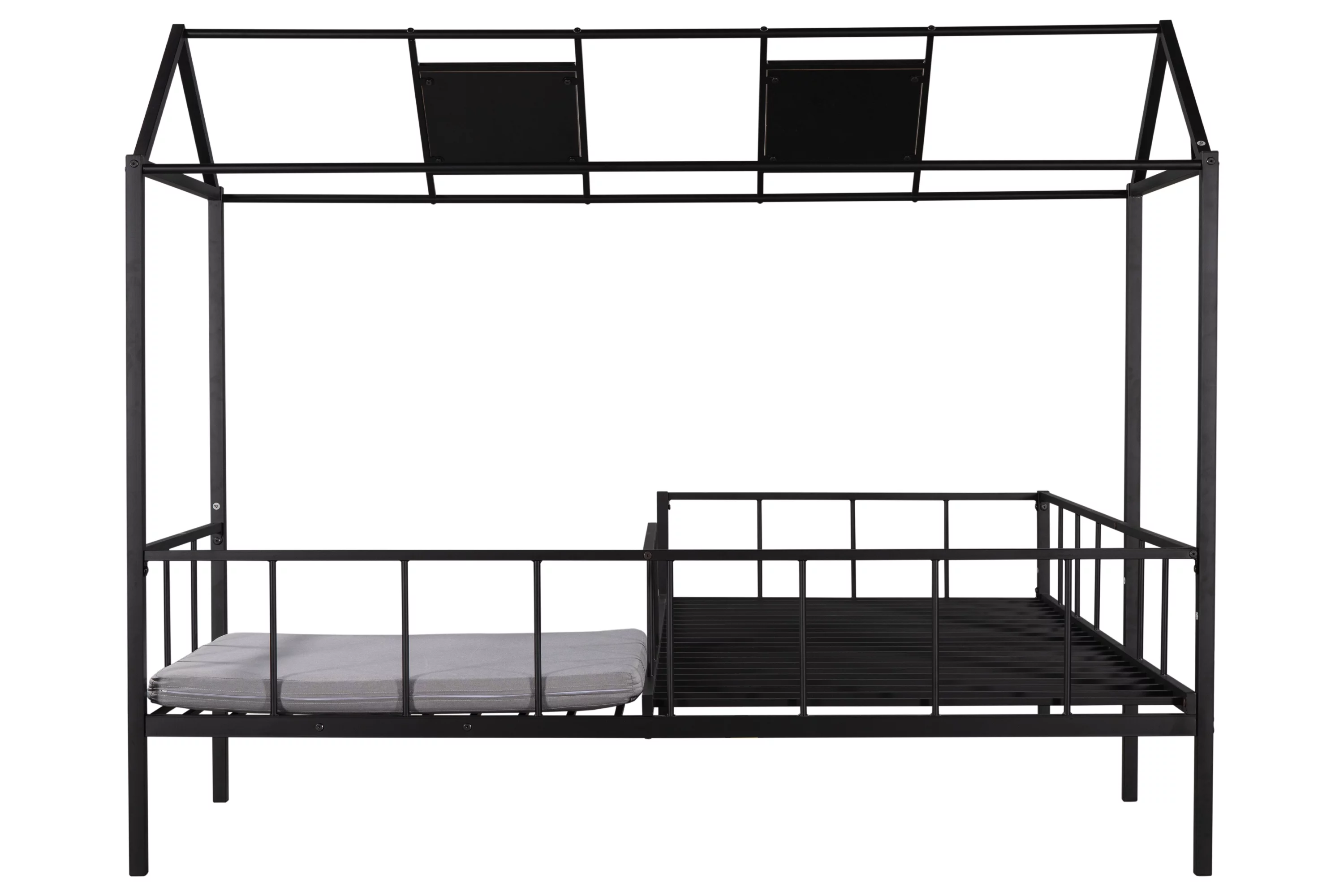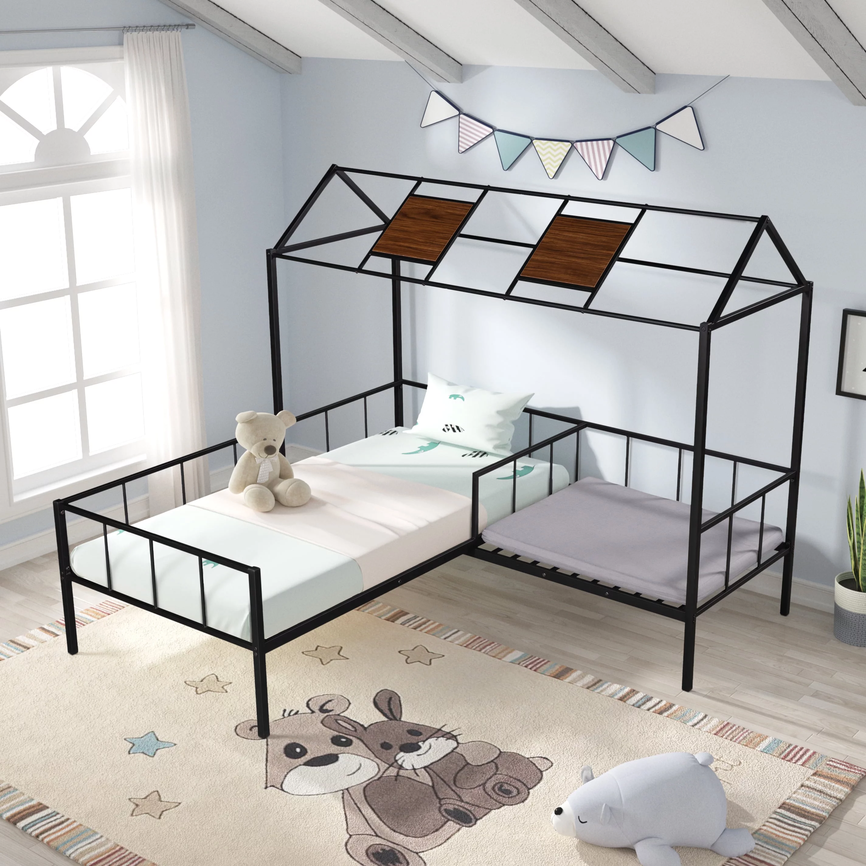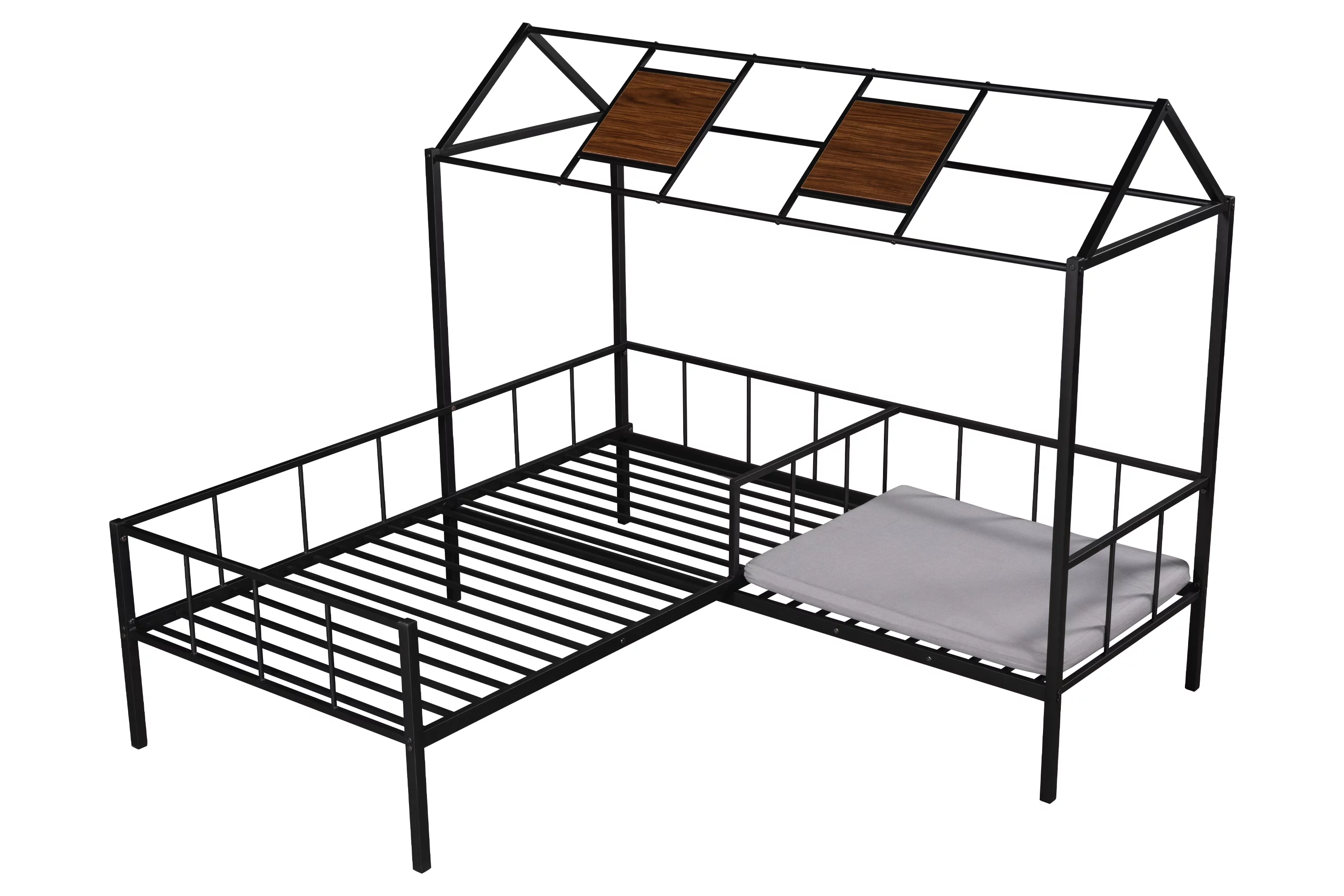 Over Bunk Bed, Wood House Bed Loft Bed Bedroom Furniture With Roof, Window, Guardrail & Ladder (Gray, Over )