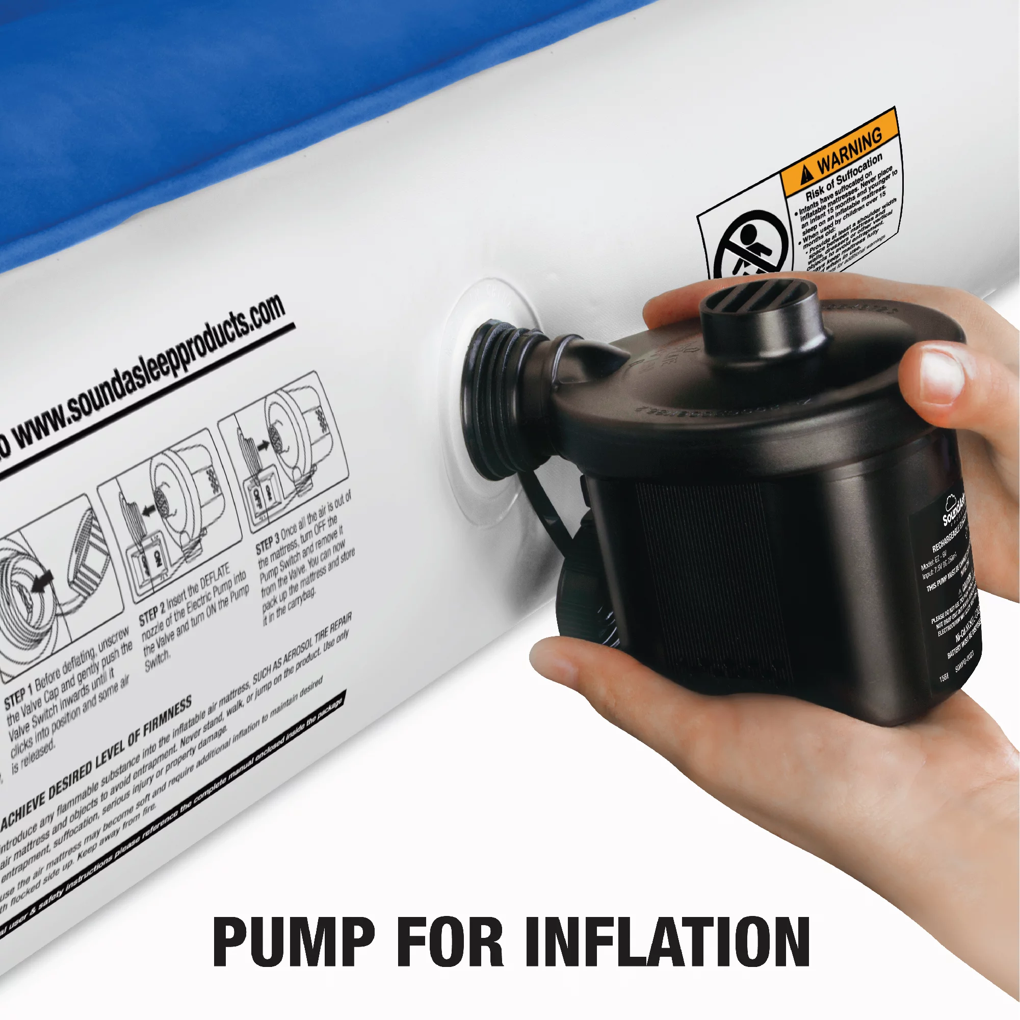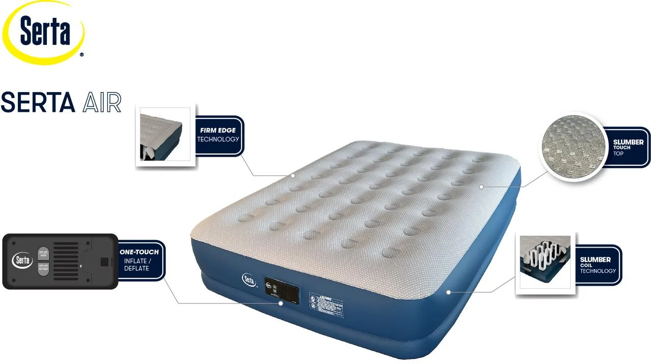 SoundAsleep Camping Series Air Mattress with Eco-Friendly PVC - Included Rechargeable Air Pump - Queen Size