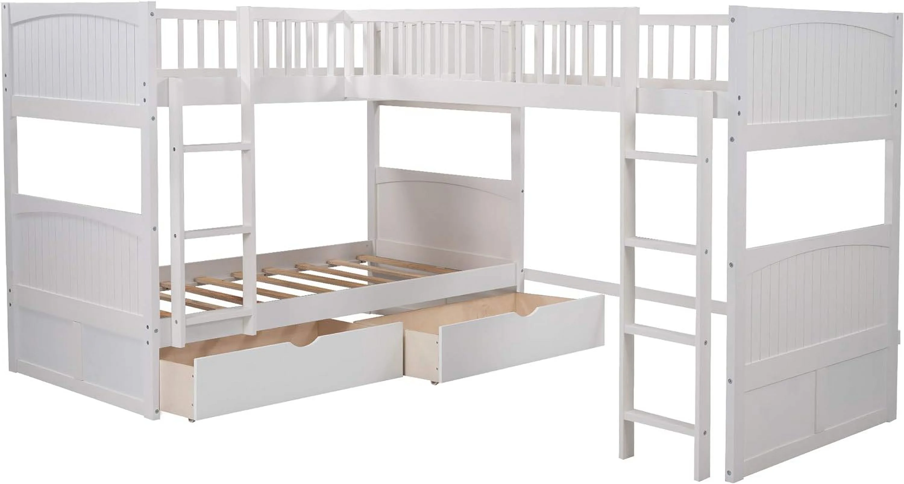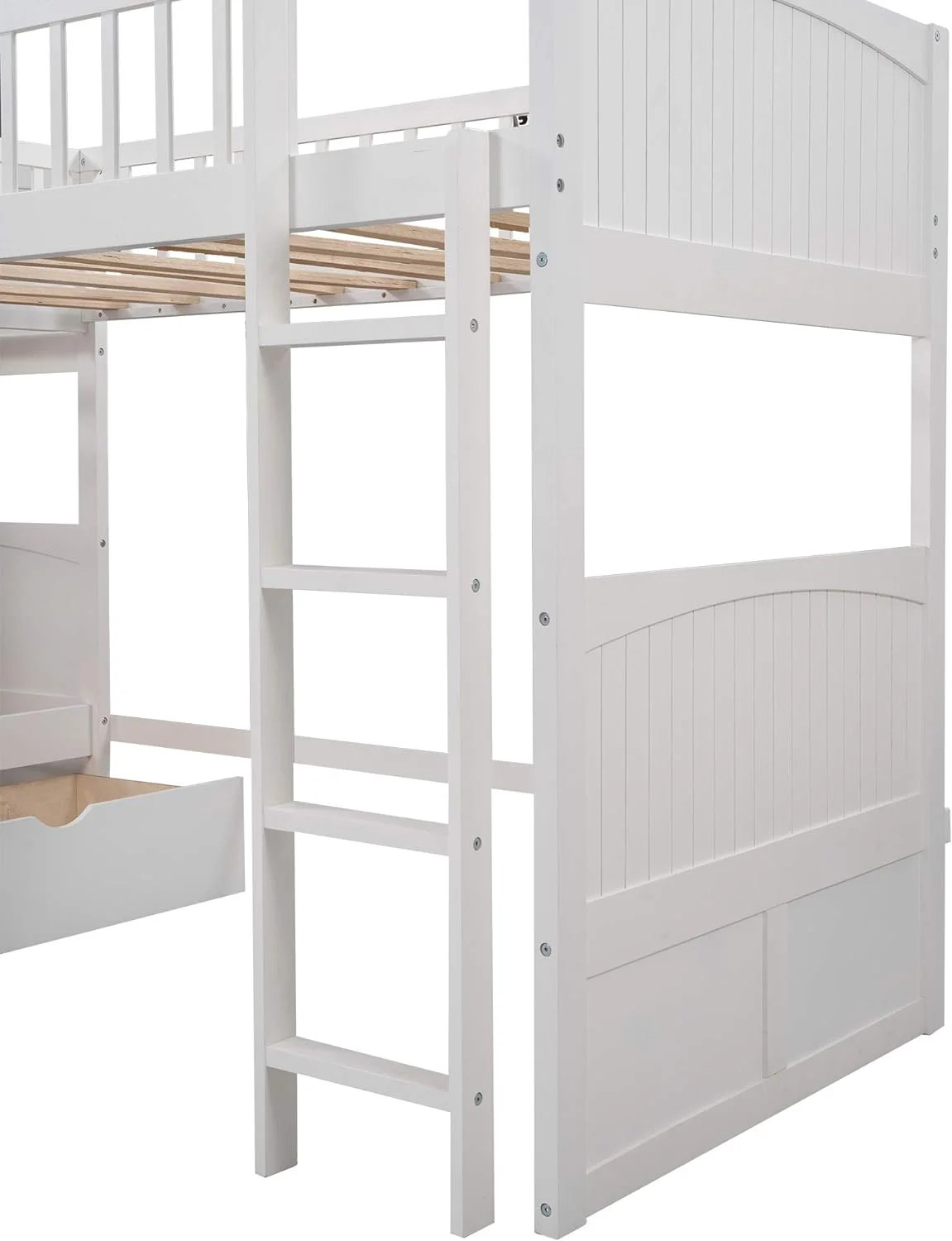 HomeRoots 403999 61 x 79 x 114 in. Bunk Bed with Attached Loft Bed & Drawers - White - Twin