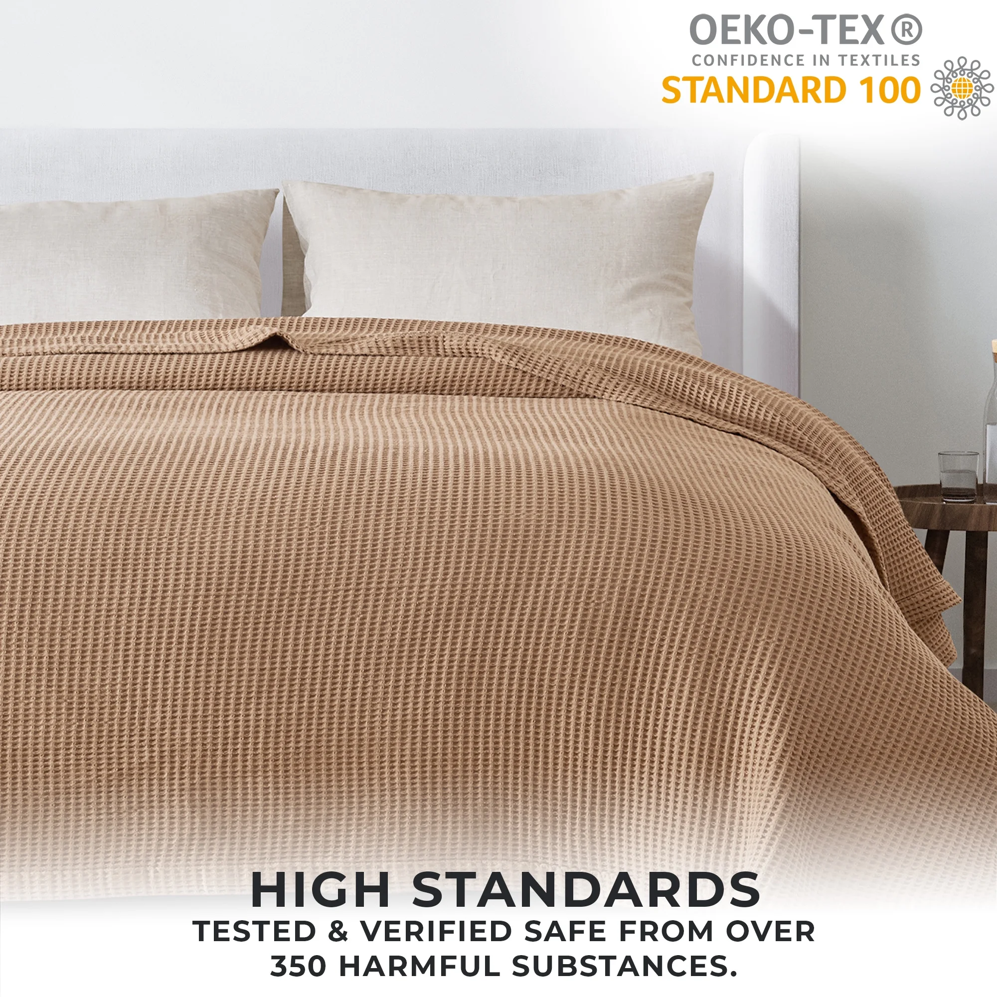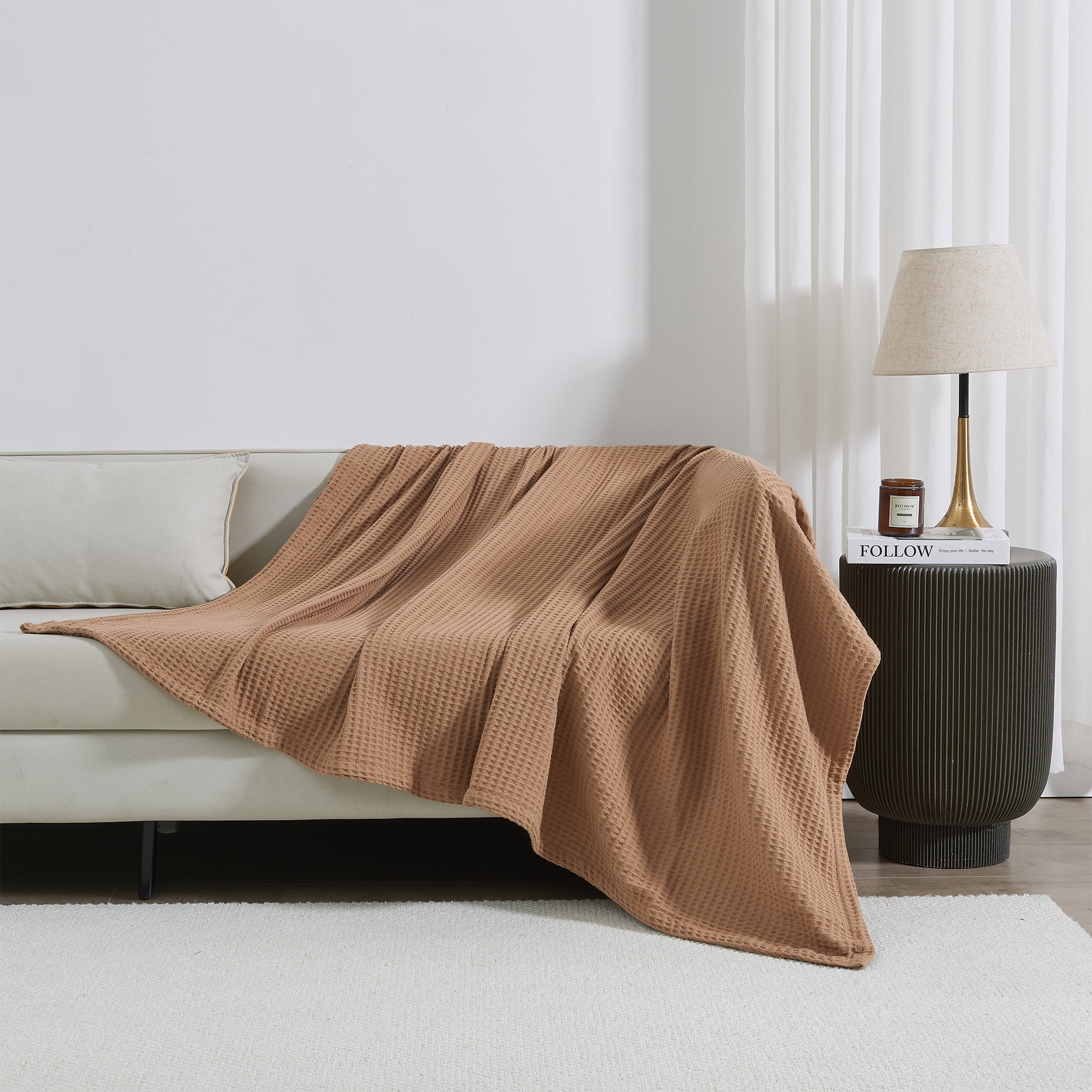 Great Bay Home 100% Cotton Waffle Weave Lightweight Bed Blanket (King, Toffee)
