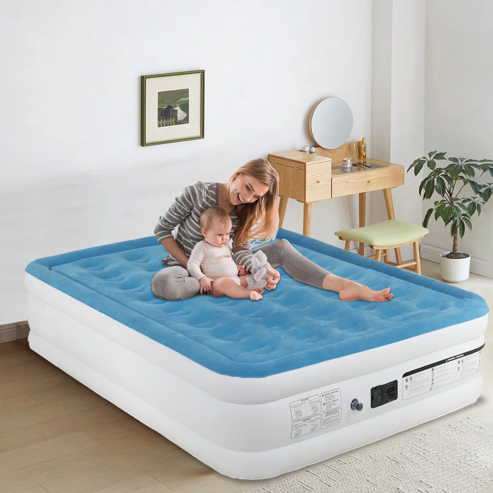 Pittman Queen Comfort Double High Air Mattress with Built-in Electric Pump