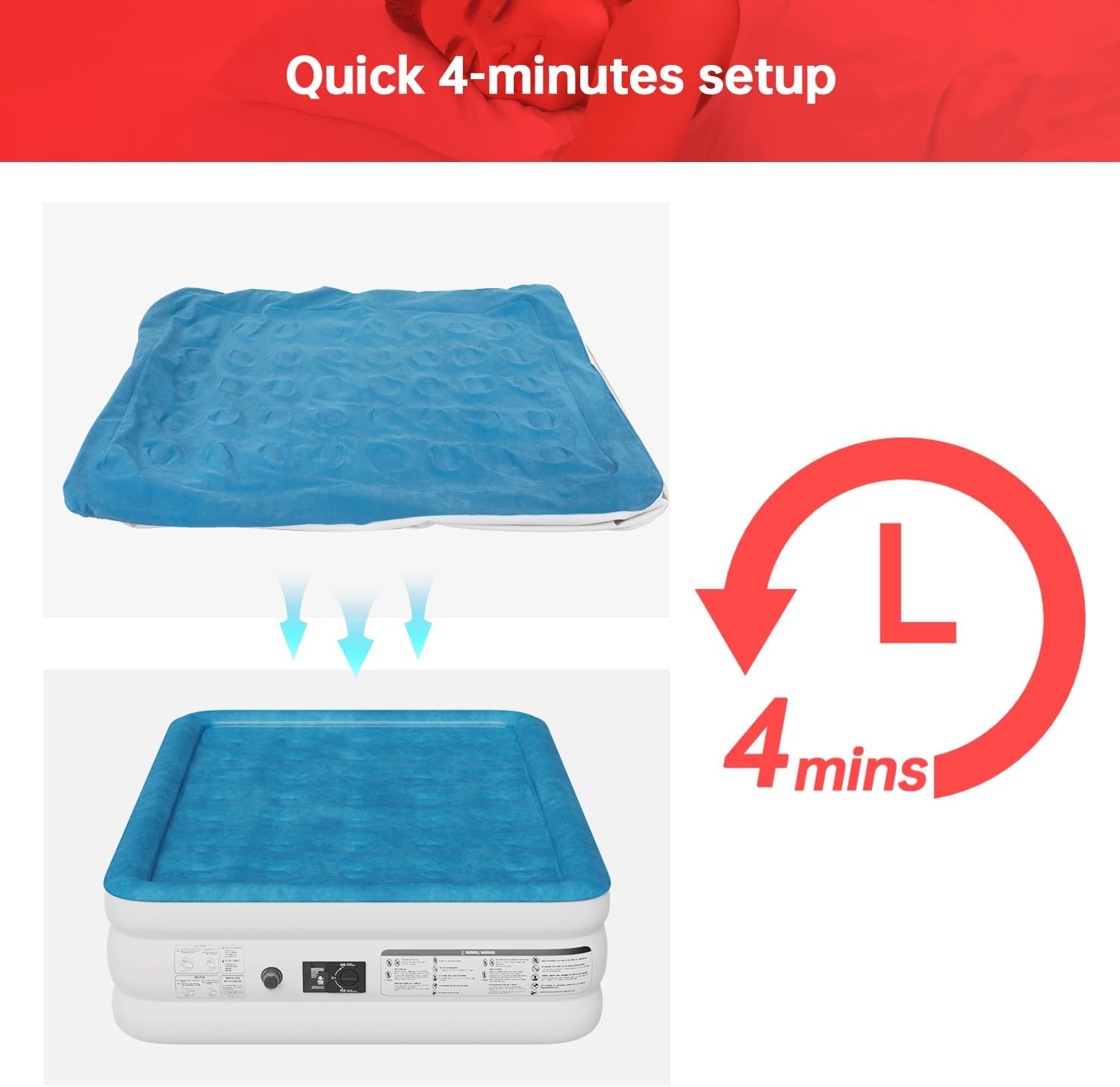 Dkelincs Portable Air Mattress with Built-in Pump Quick-Inflatable Mattress for Camping, Home&Trip, Queen