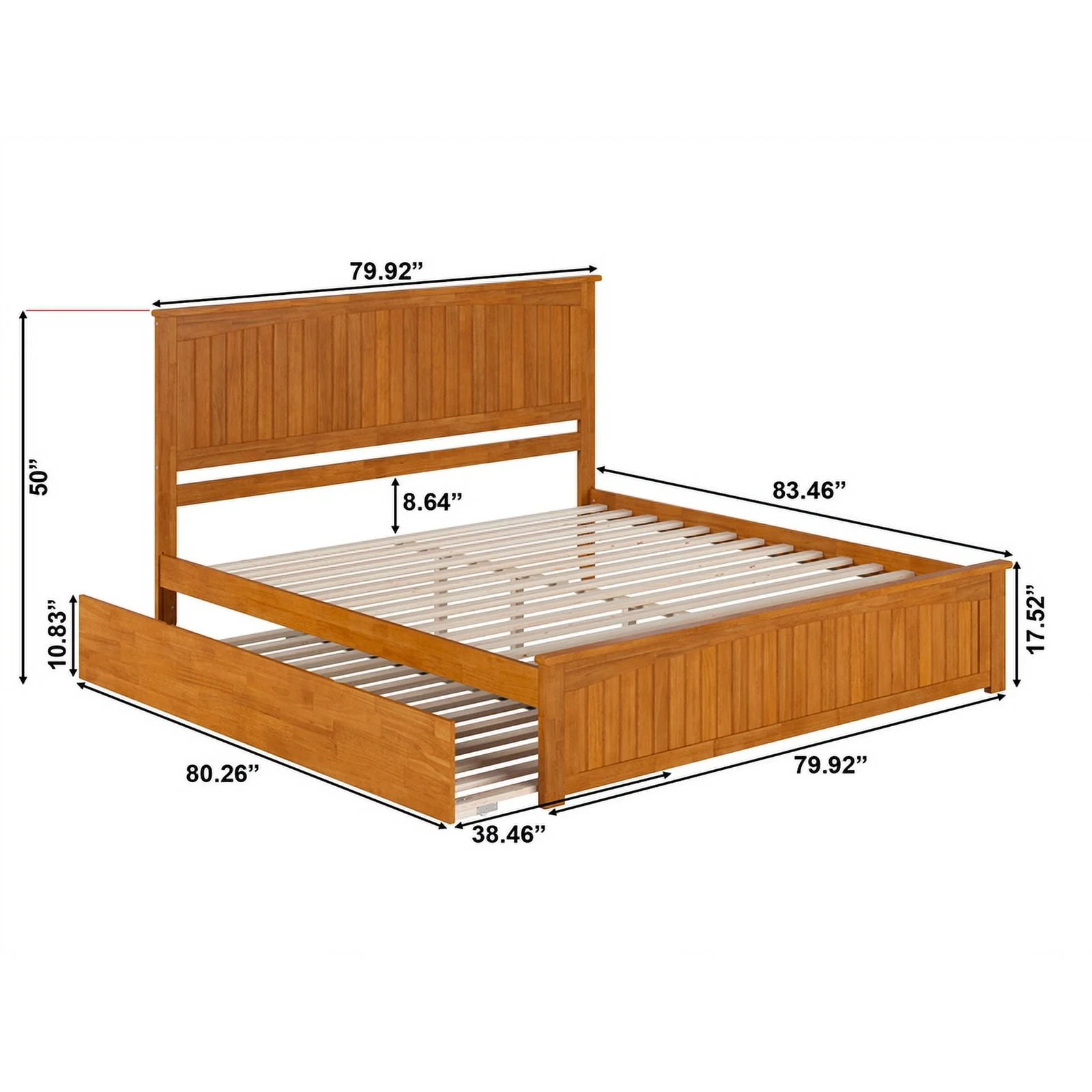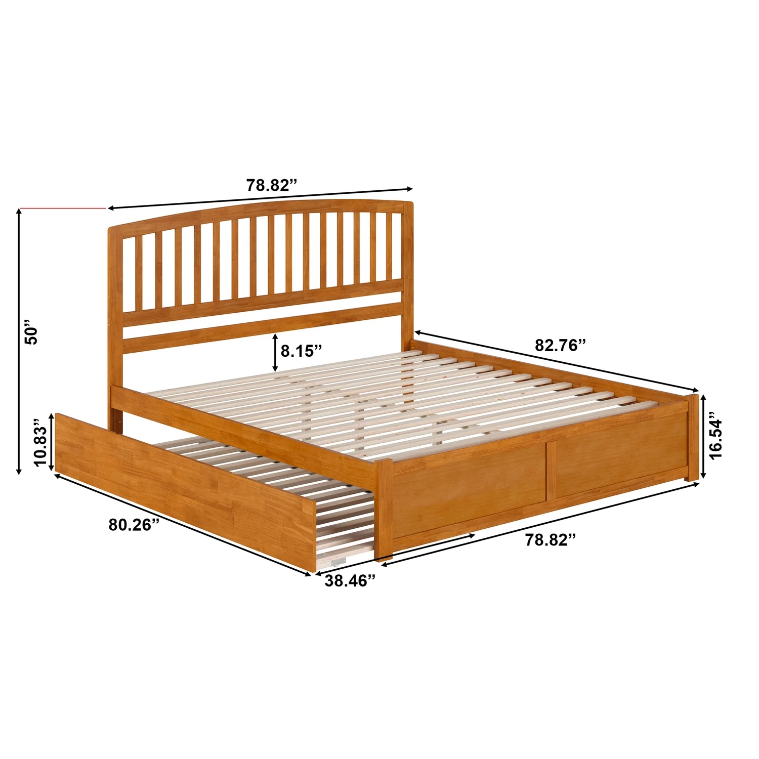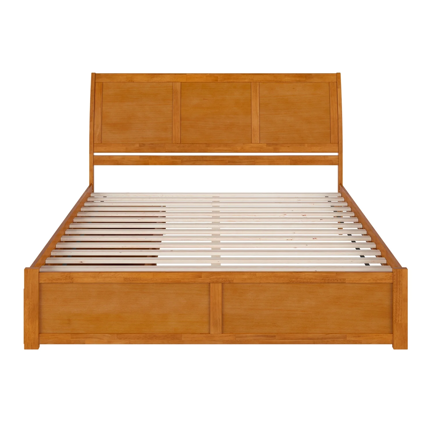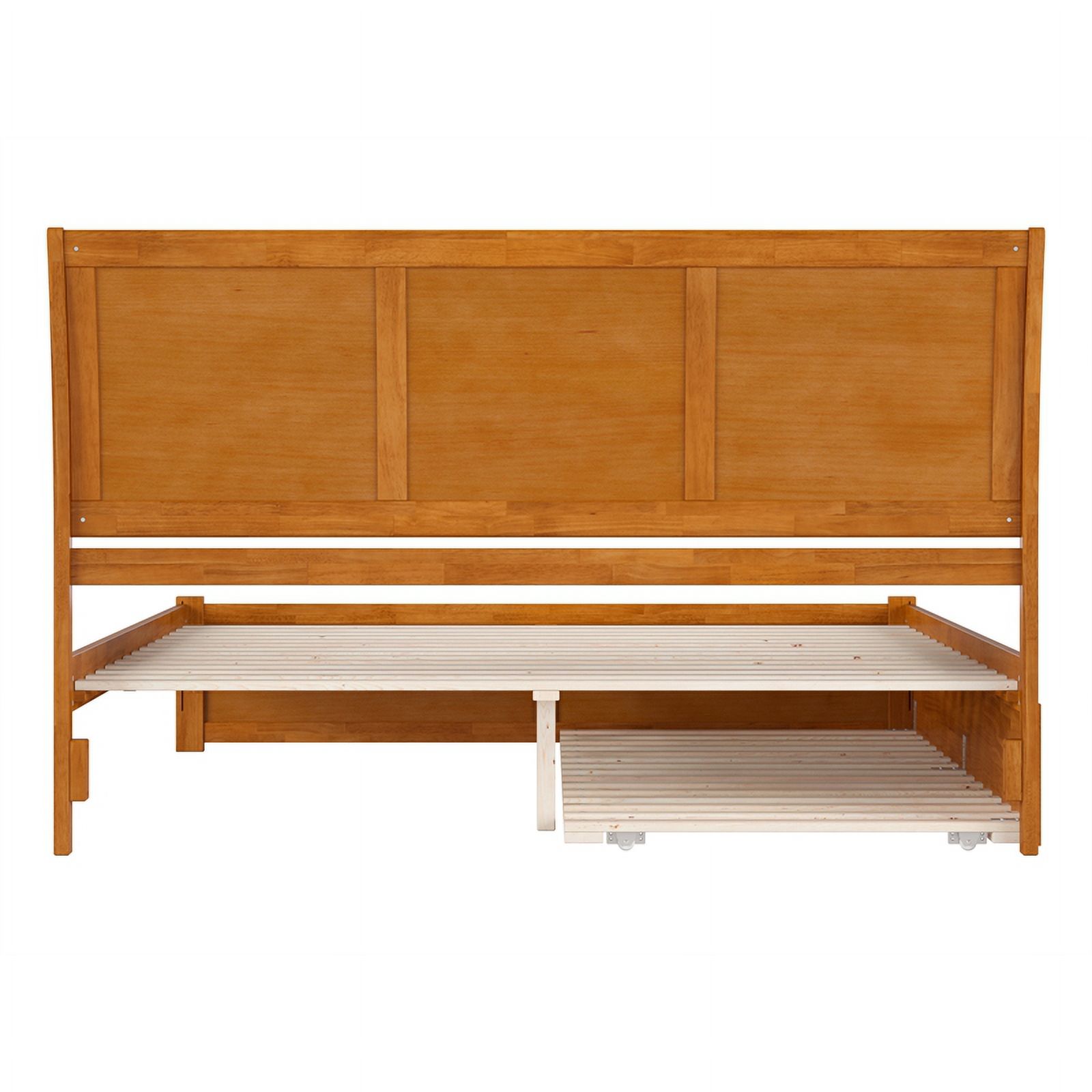 Nantucket King Wood Platform Bed with Footboard and TXL Trundle in Light Toffee
