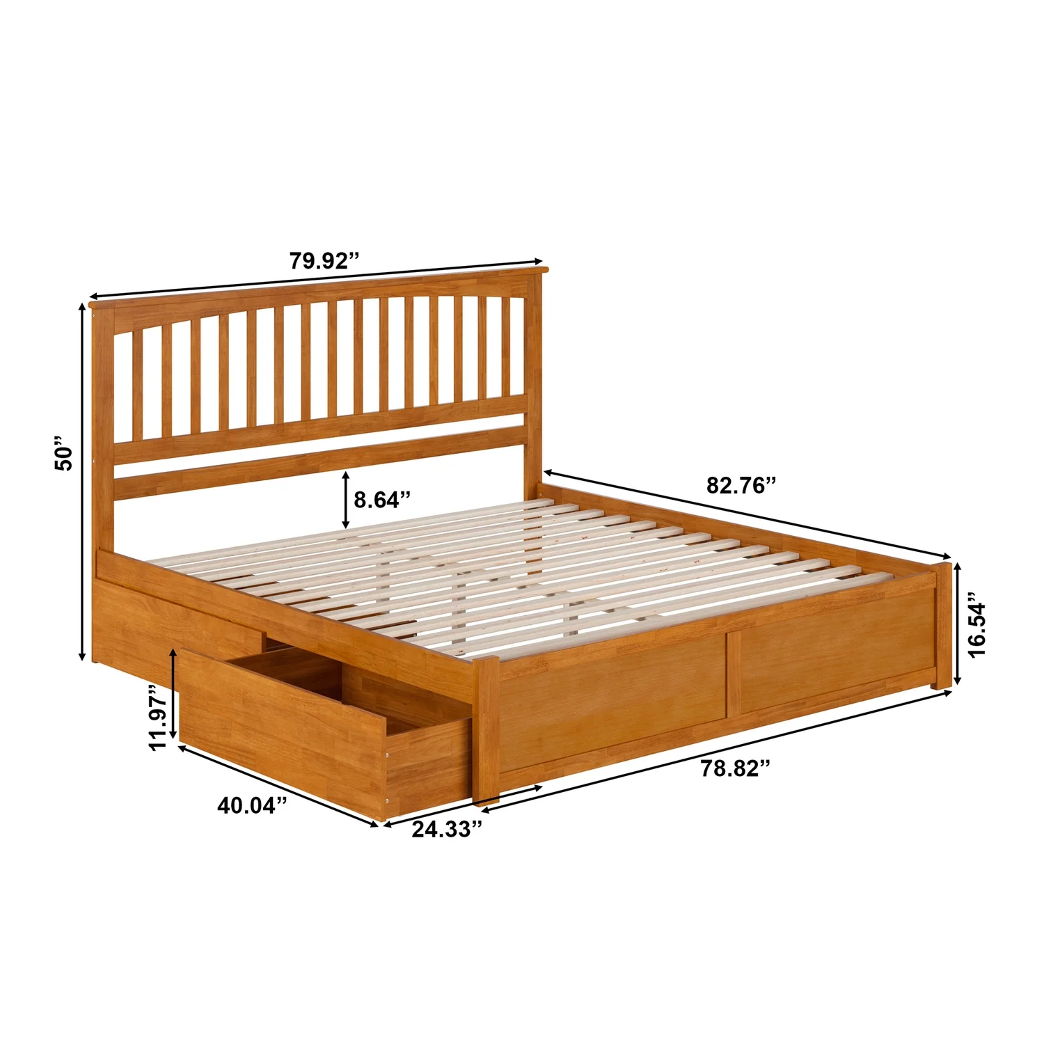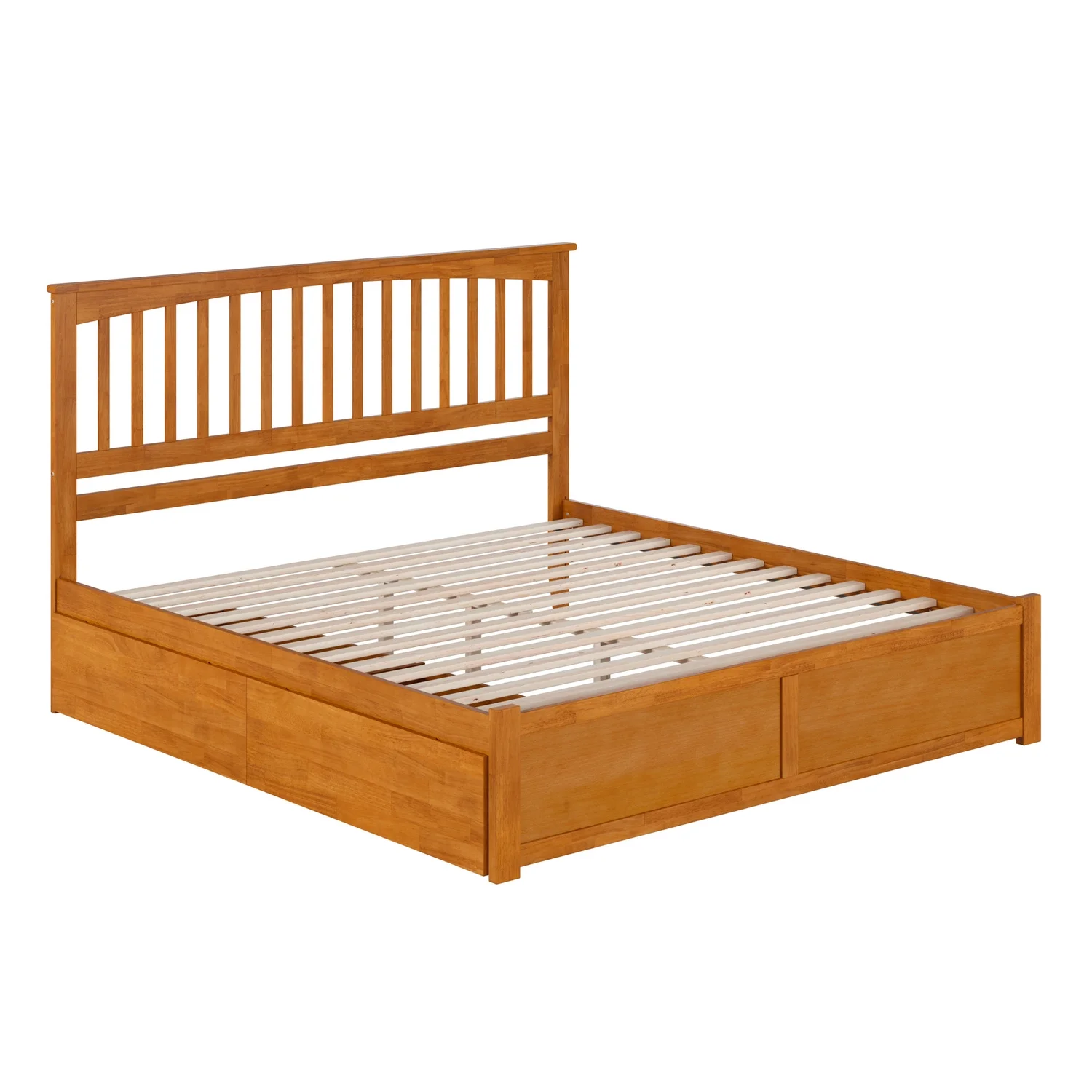 Mission King Wood Platform Bed with Footboard & Storage Drawers in Light Toffee