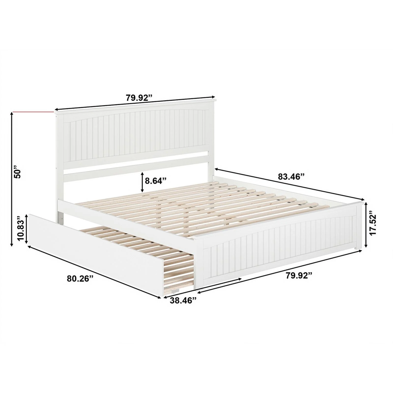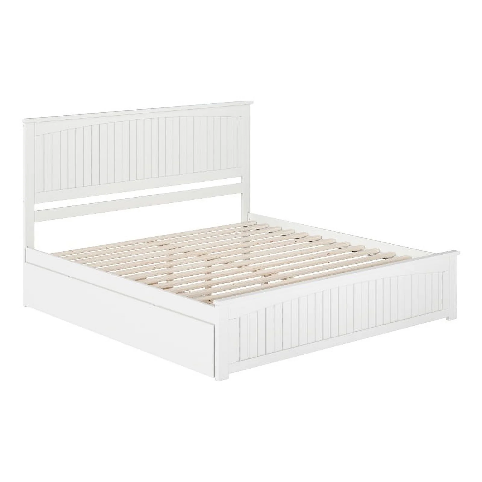 Nantucket King Wood Platform Bed with Matching Footboard & TXL Trundle in White