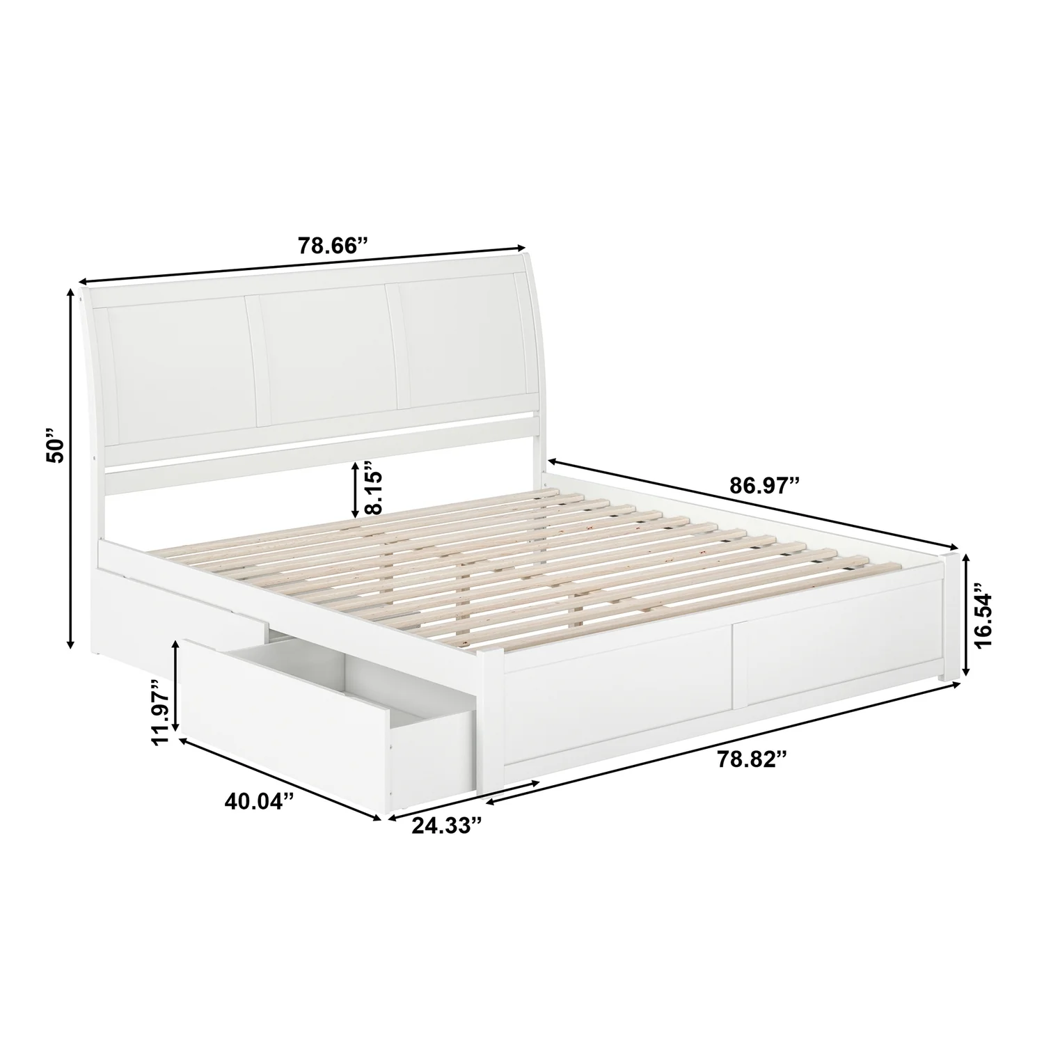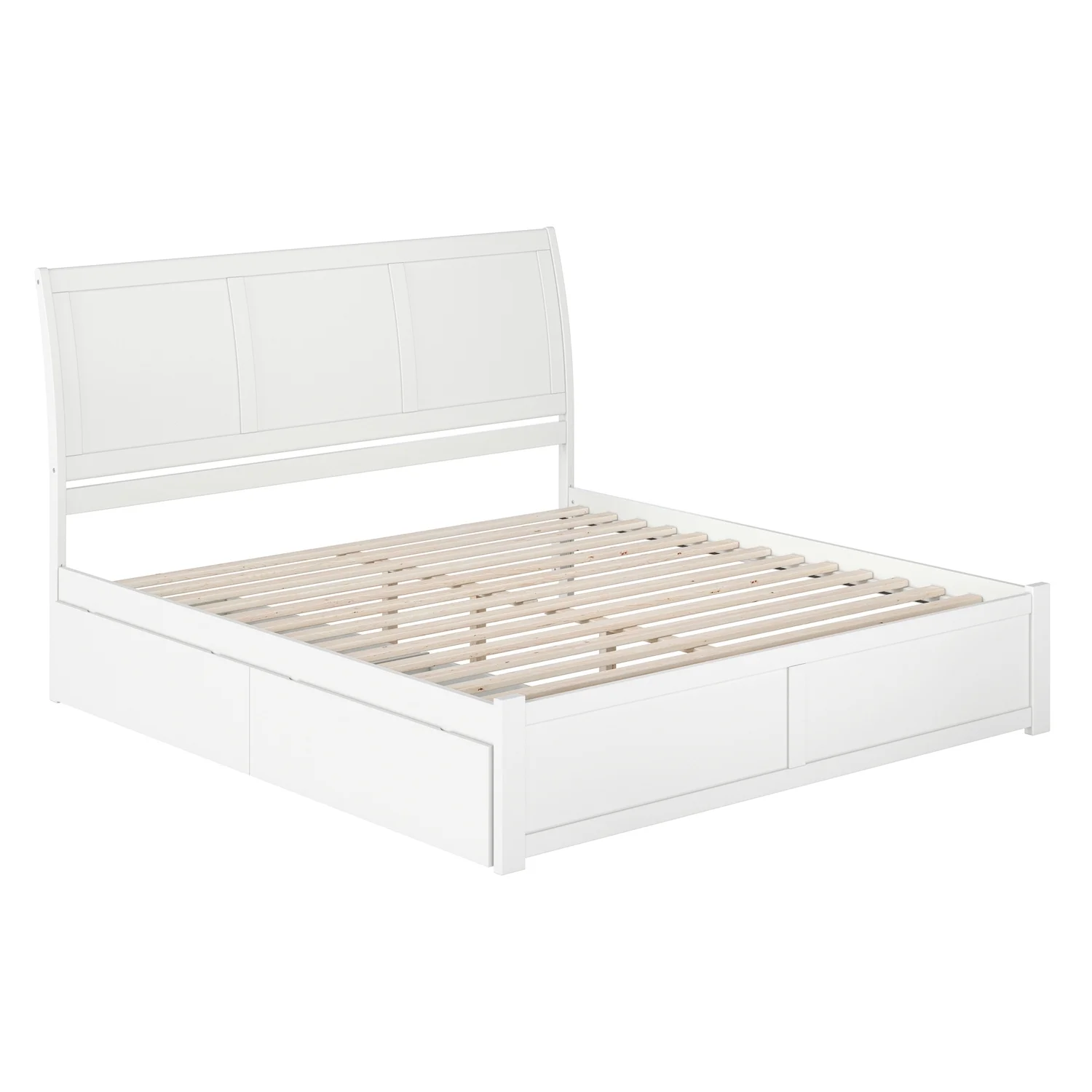Portland King Wood Platform Bed with Footboard and Storage Drawers in White