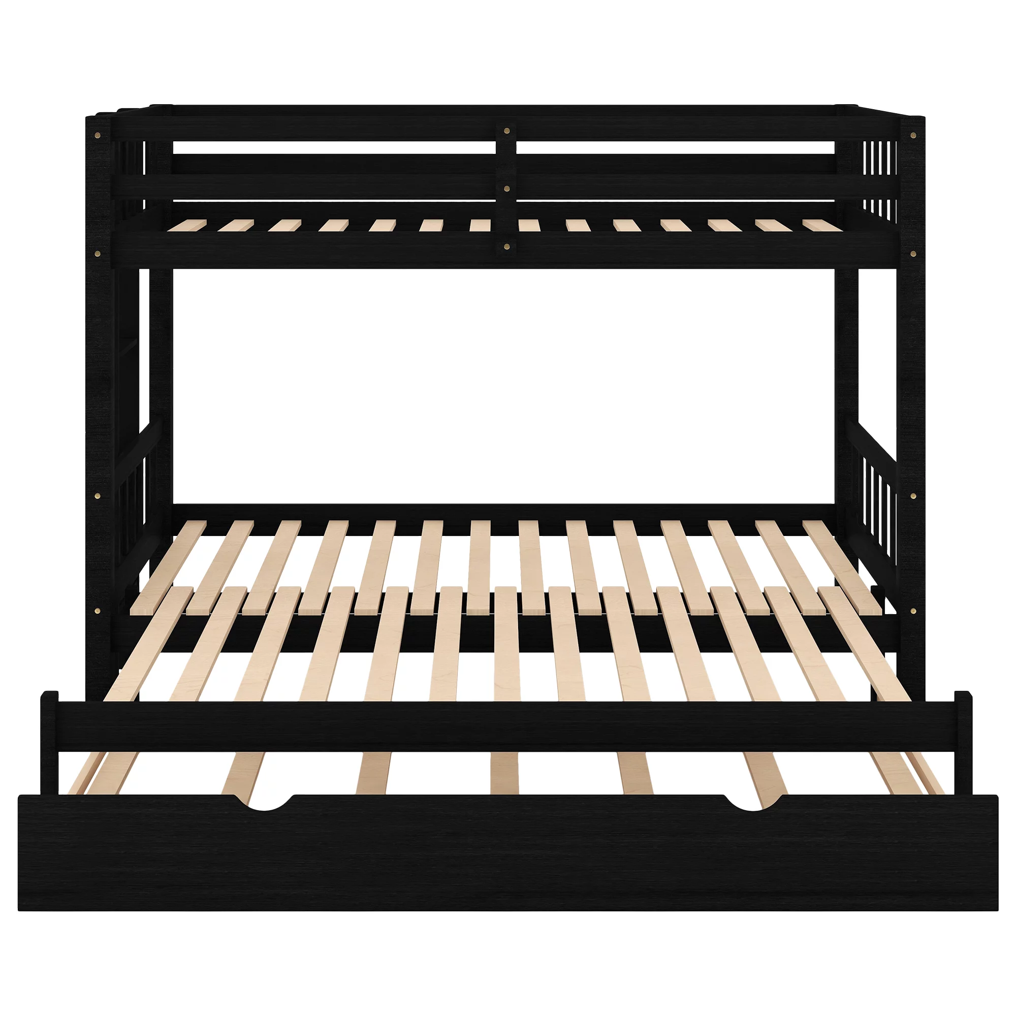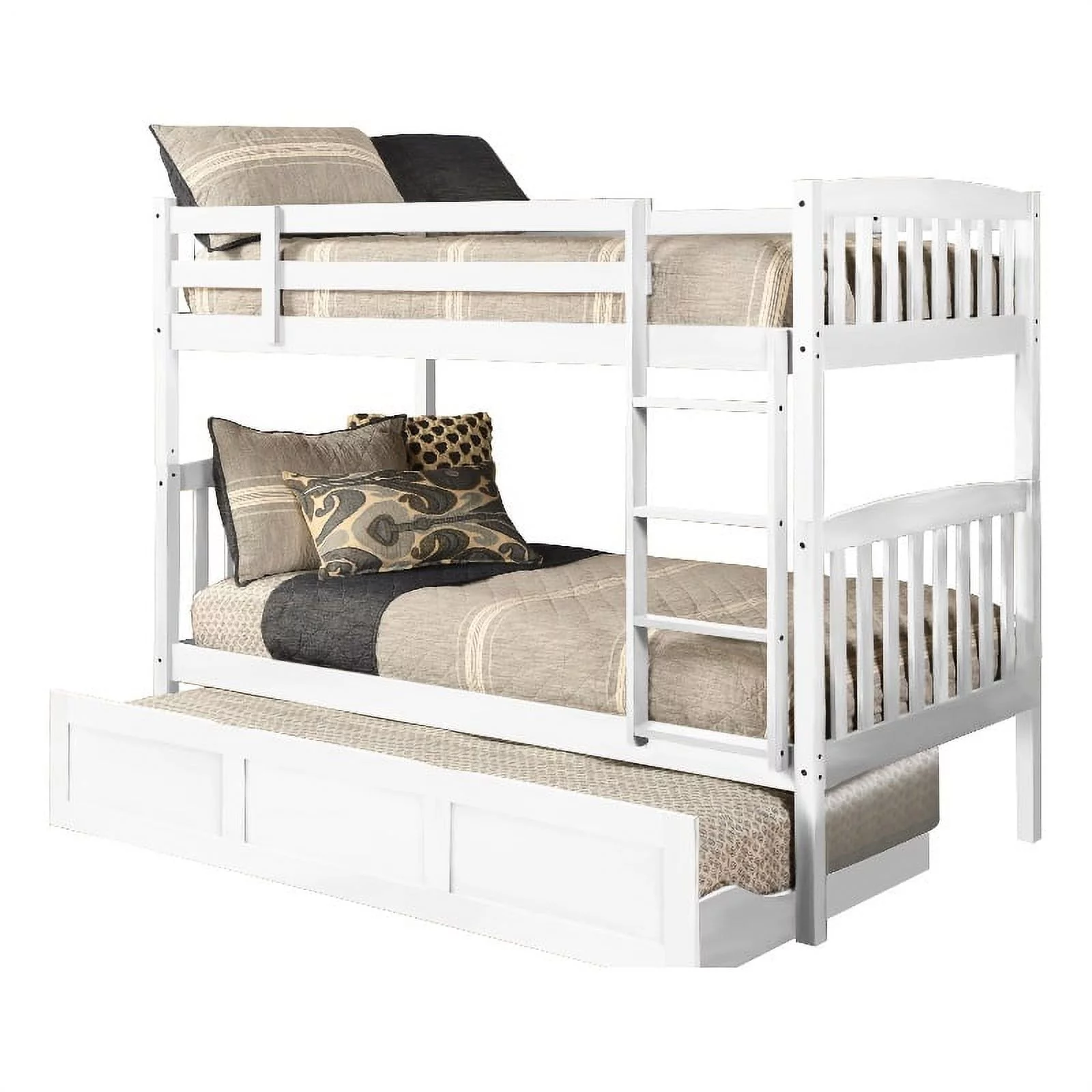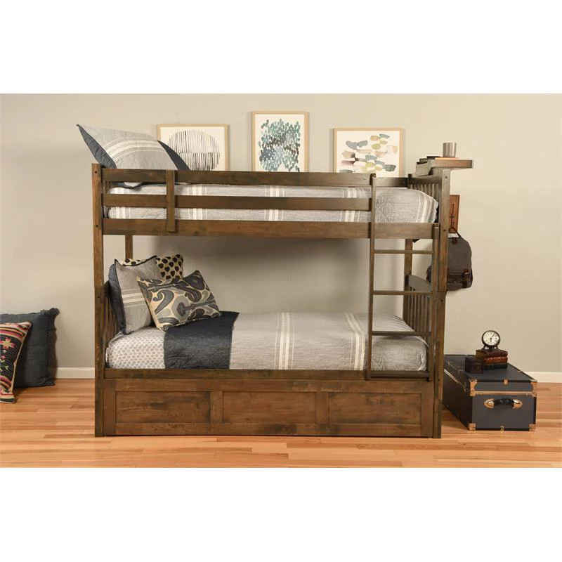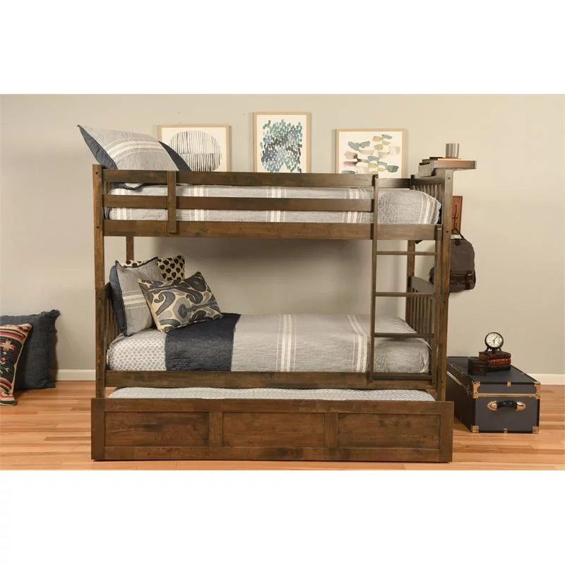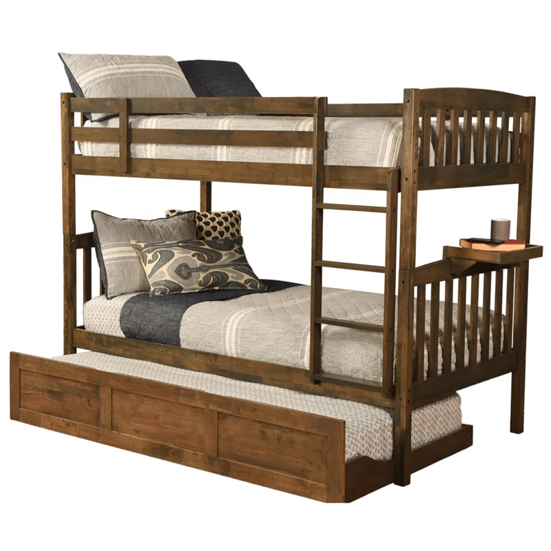Kodiak Furniture Claire Twin Wood Bunk Bed/Trundle Bed and Tray in Walnut Brown