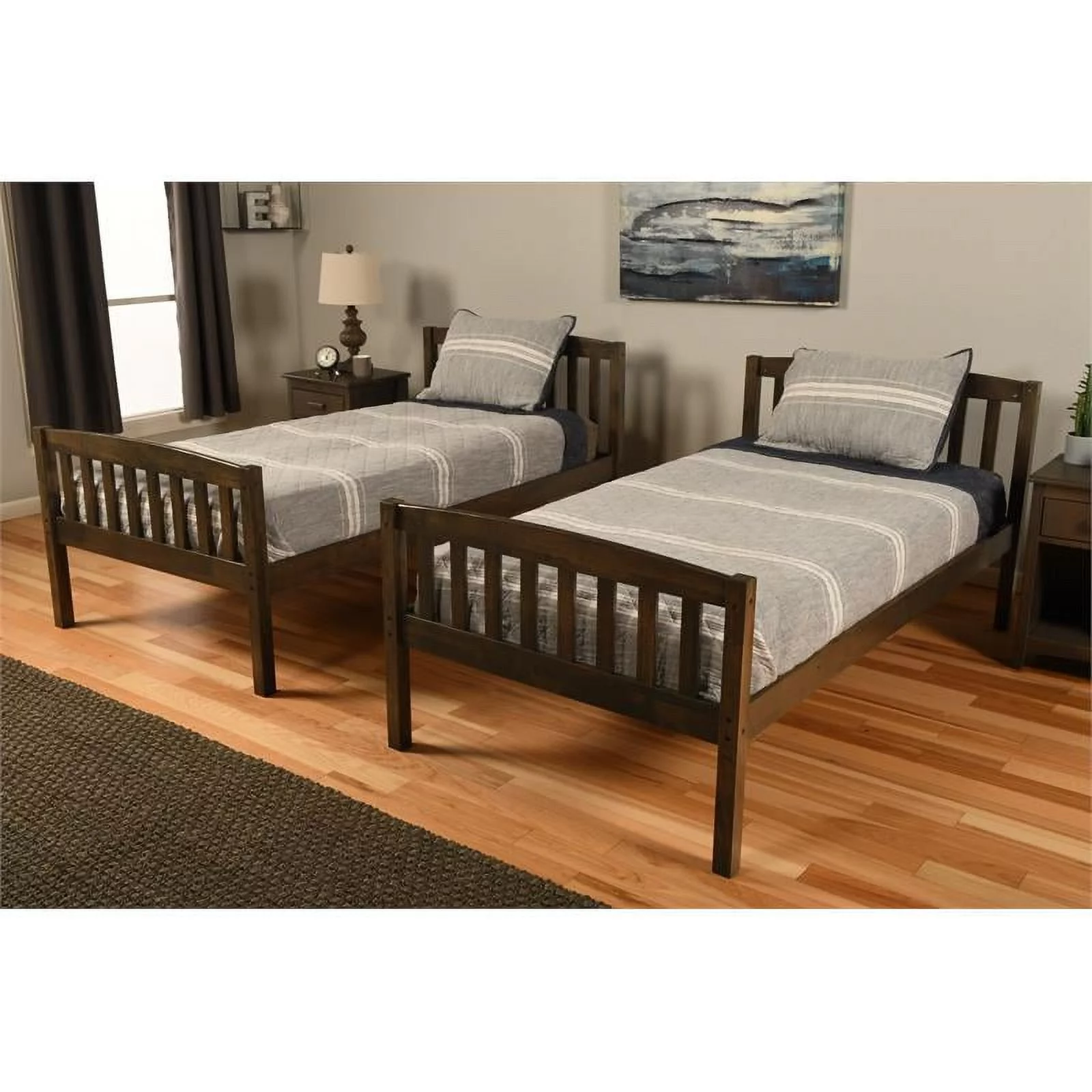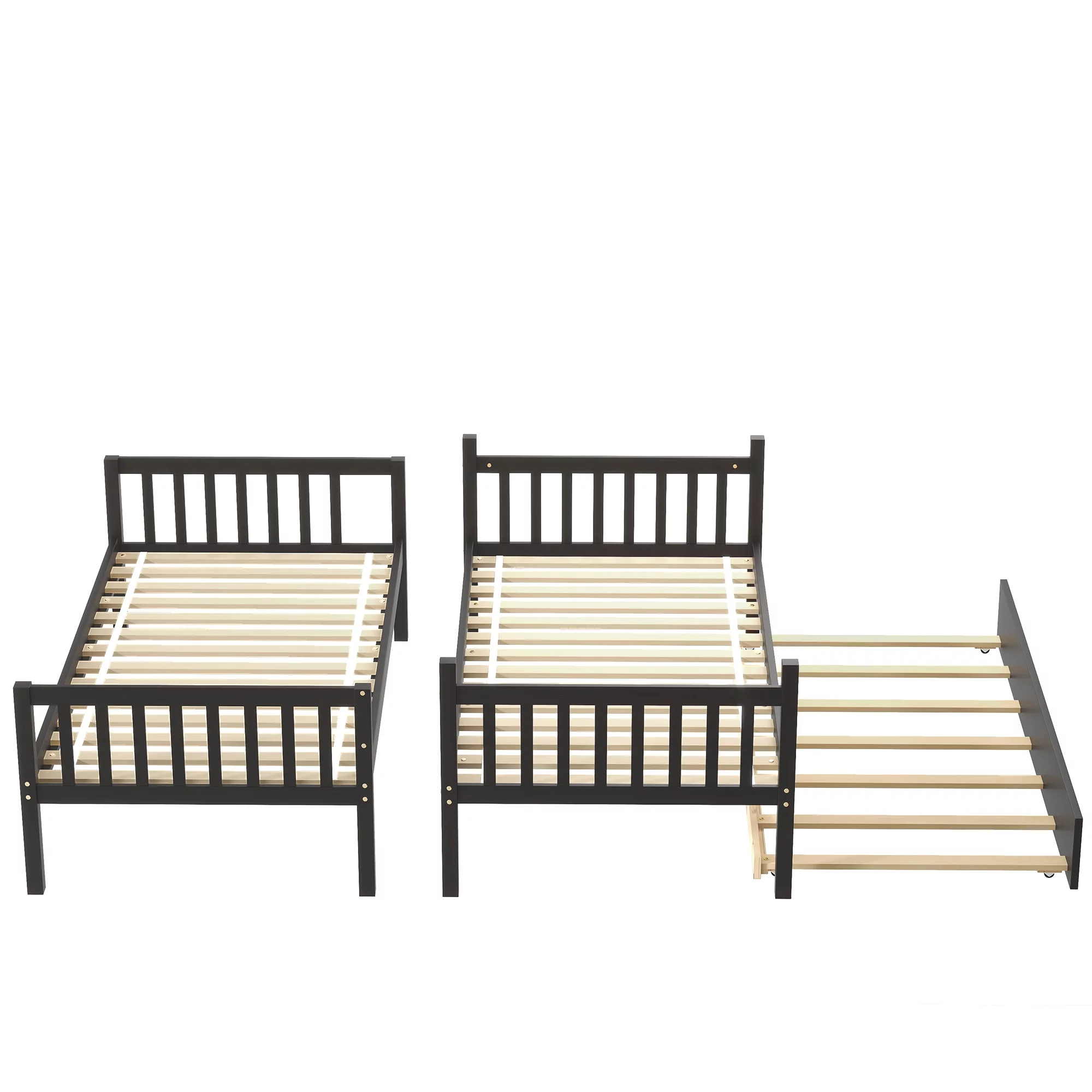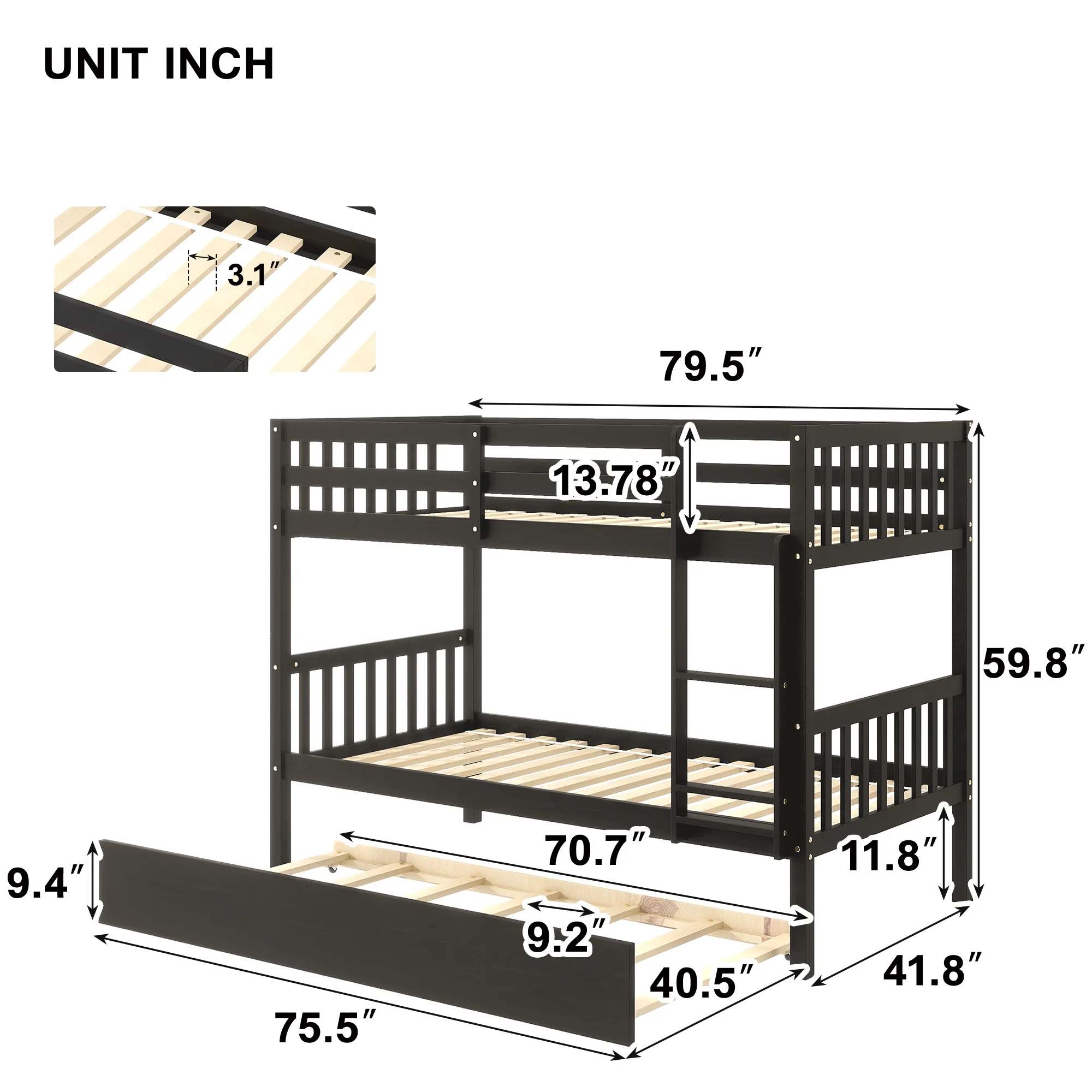 Kodiak Furniture Claire Twin Wood Bunk Bed/Trundle Bed and Tray in Walnut Brown