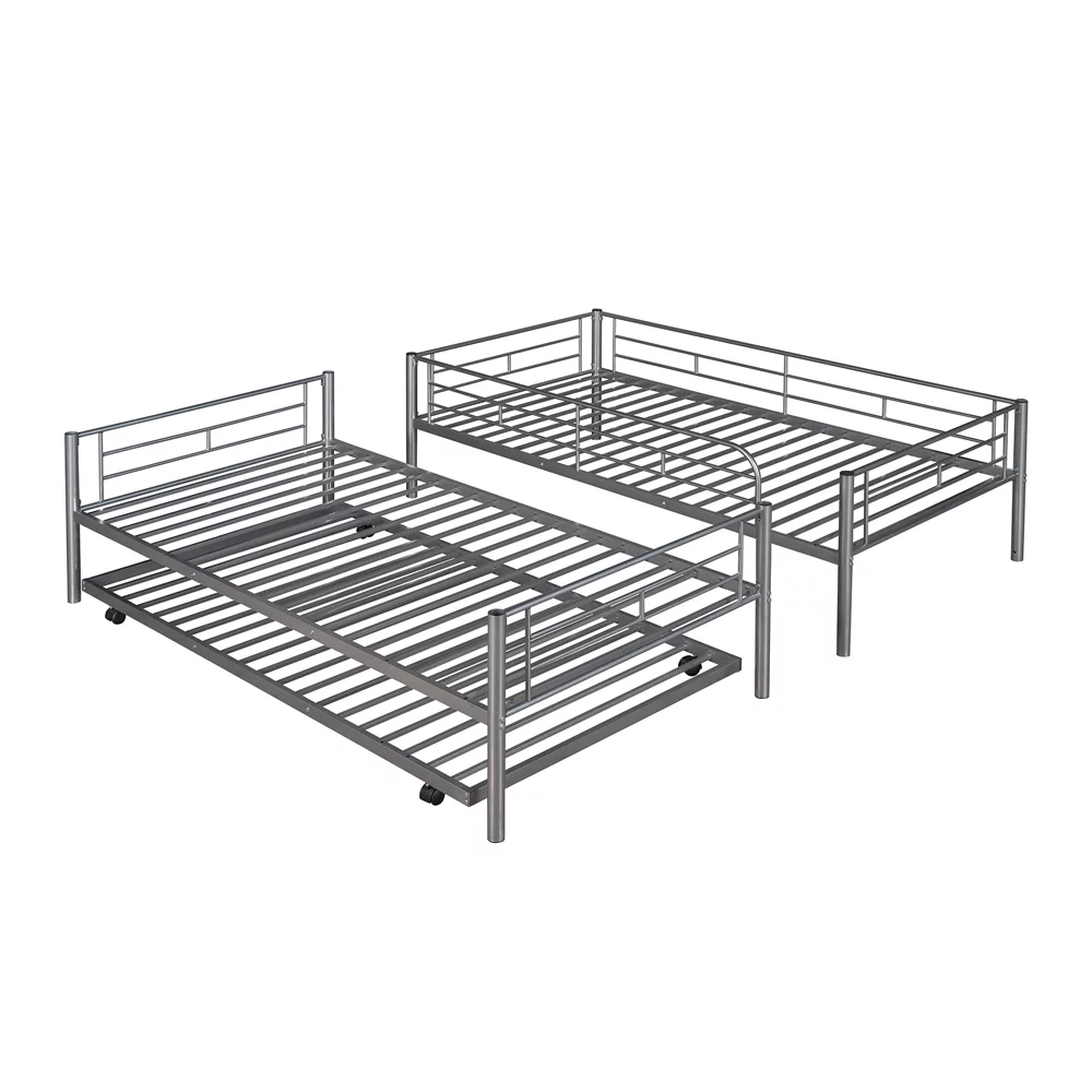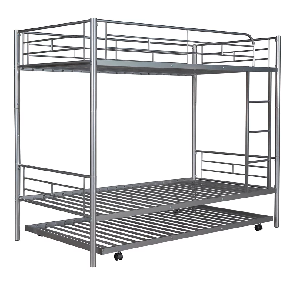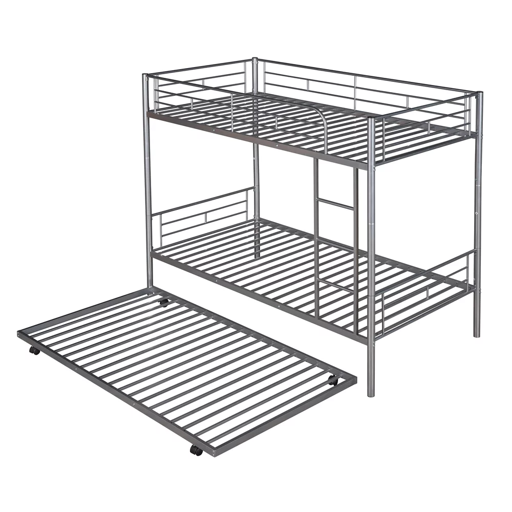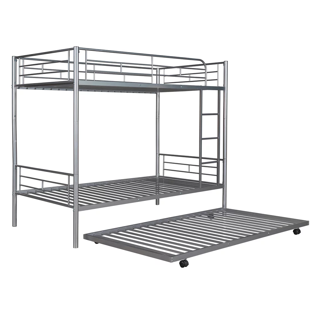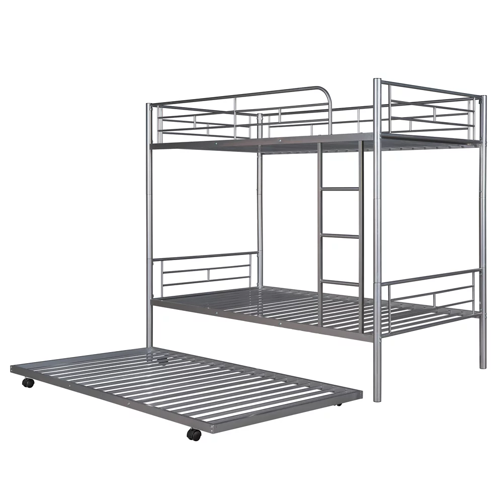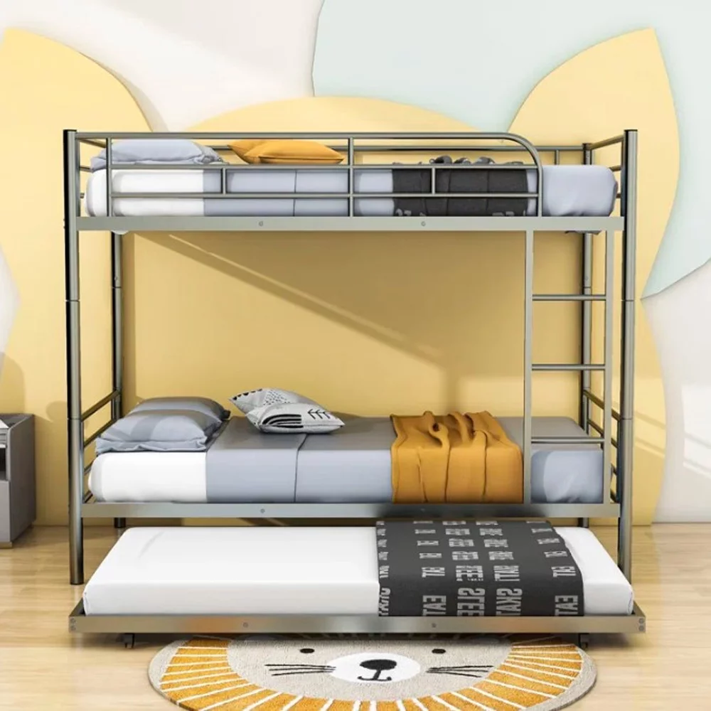 Twin over Twin Bunk Bed with Trundle, Metal Bunk Bed with Trundle, for Kids Teens Adults