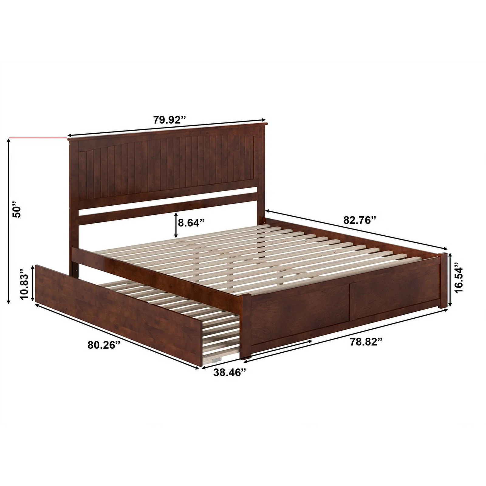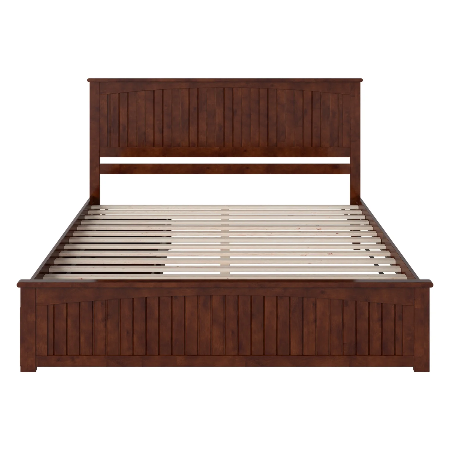 Nantucket King Wood Platform Bed with Footboard and Twin XL Trundle in Walnut