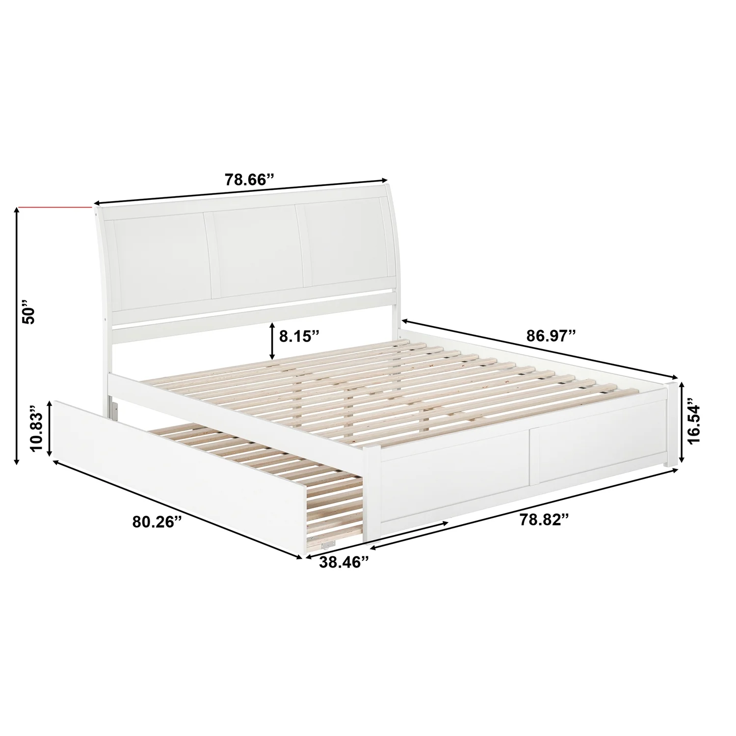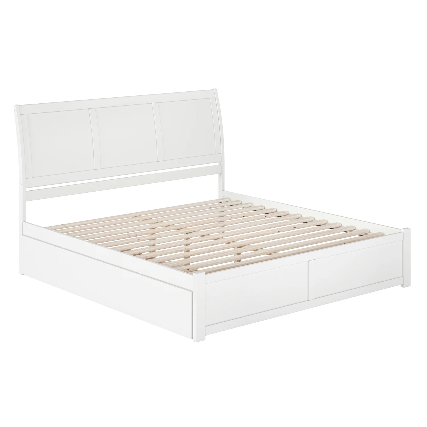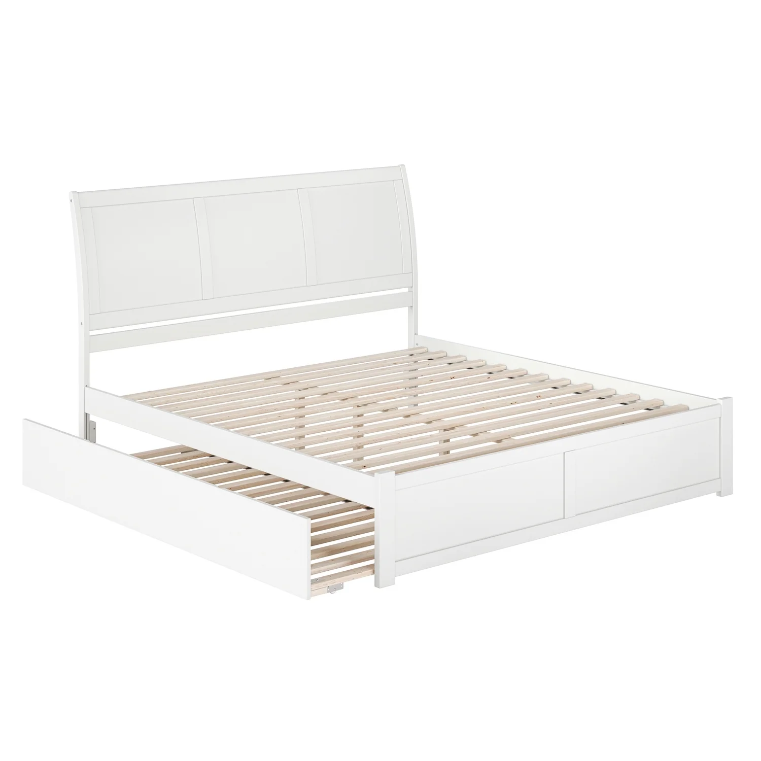 Portland King Wood Platform Bed with Footboard and Twin XL Trundle in White