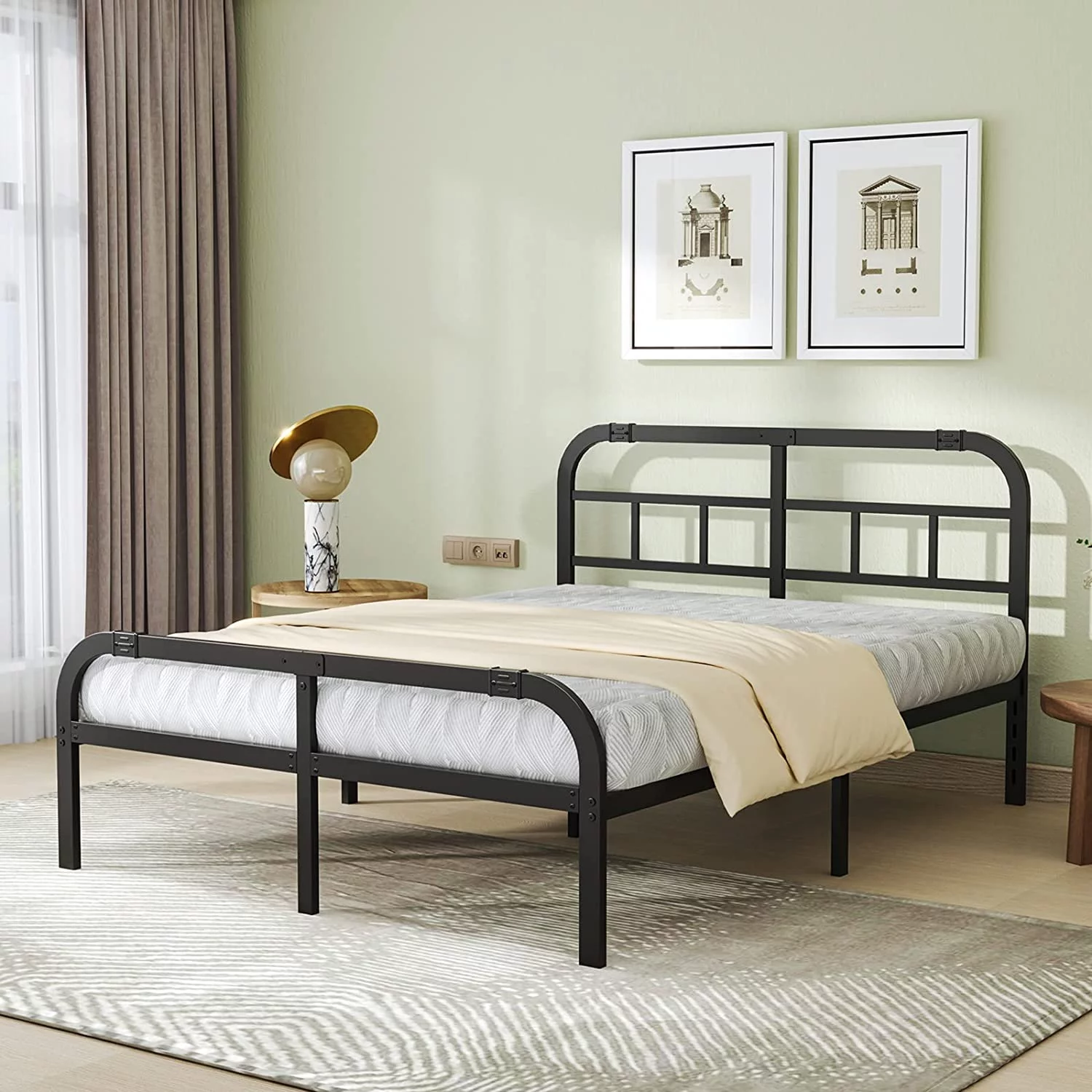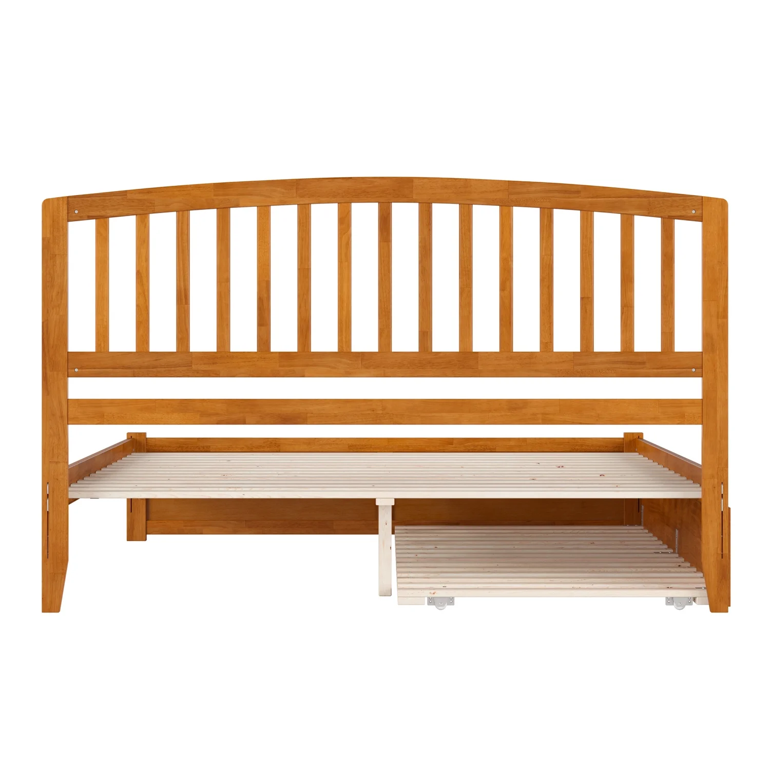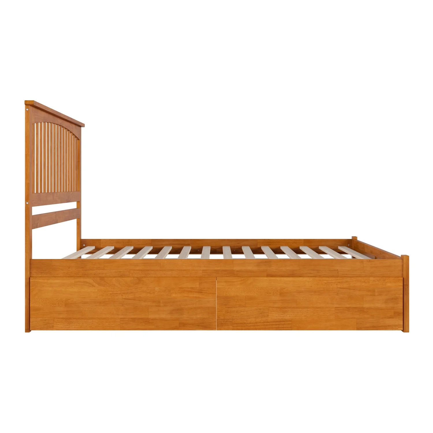 Mission King Wood Platform Bed with Footboard and TXL Trundle in Light Toffee