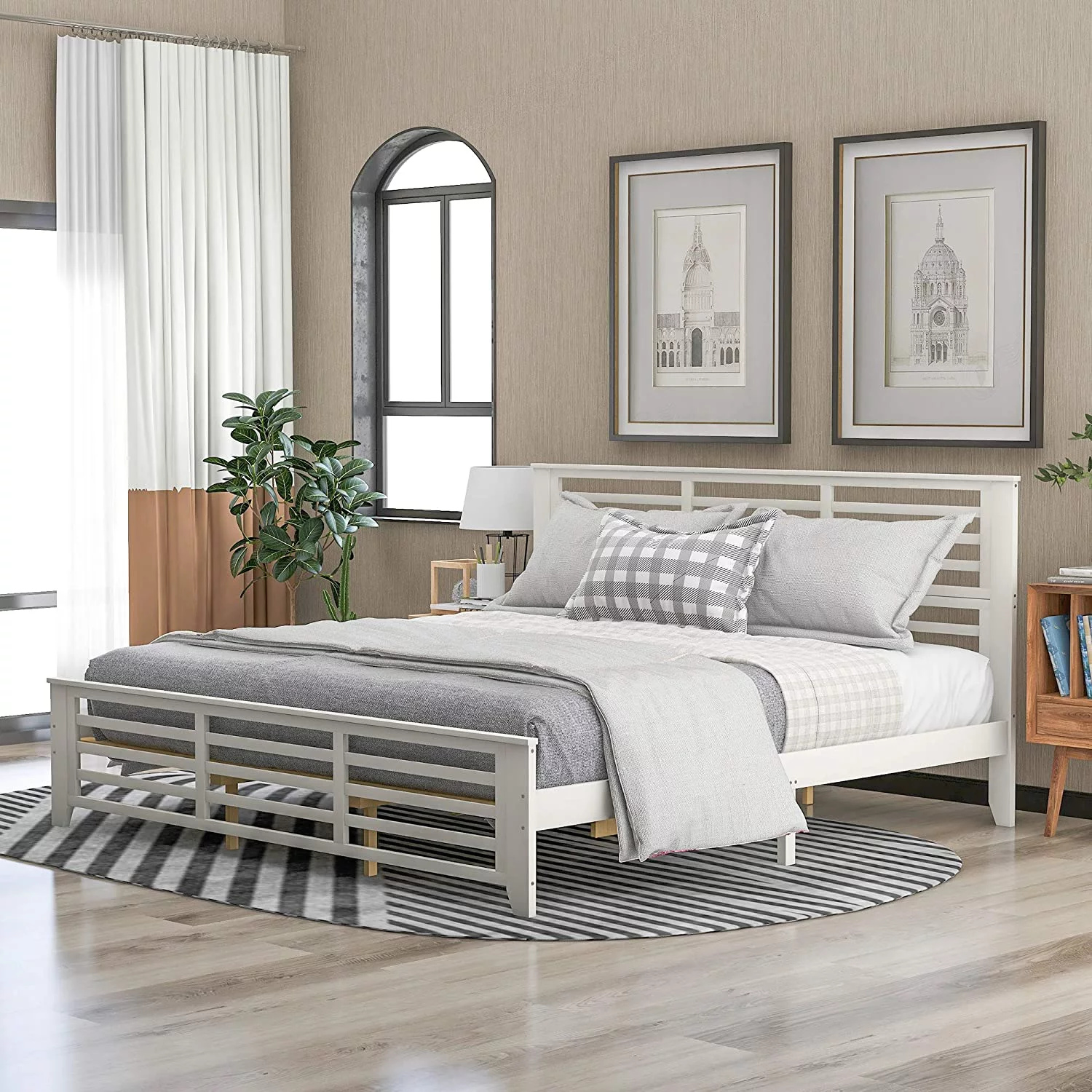 Chic White Wood California King Platform Bed with Footboard Storage