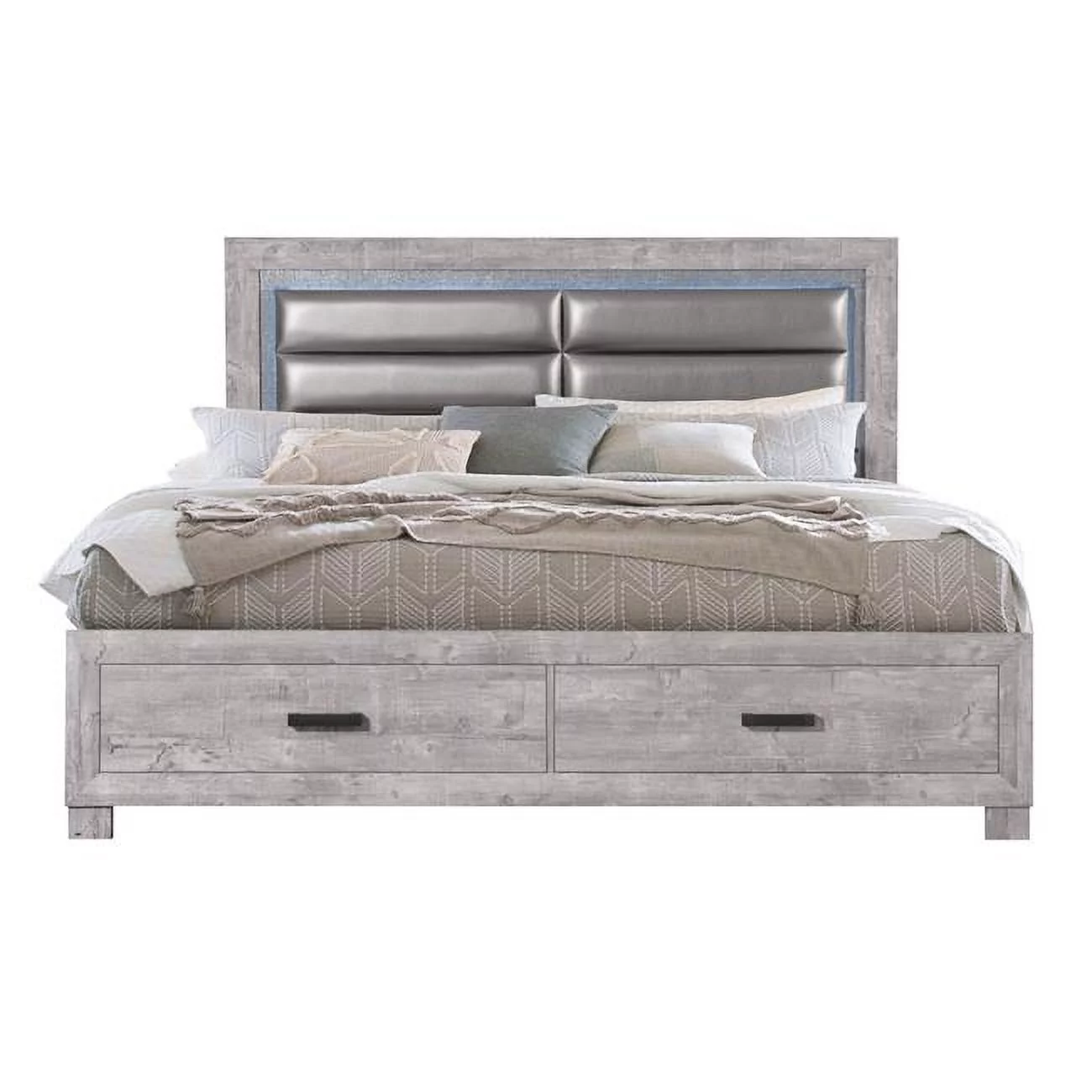 Casual Transitional Grayish Brown Finish 1pc Eastern King Size Platform Bed w Footboard Drawers