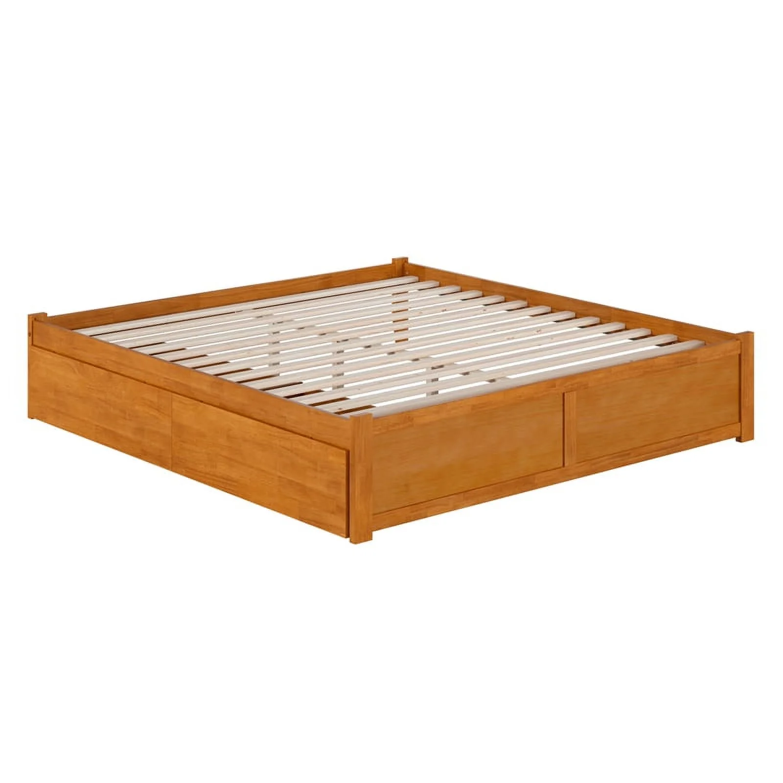 Concord King Wood Platform Bed with Footboard and Drawers in Light Toffee