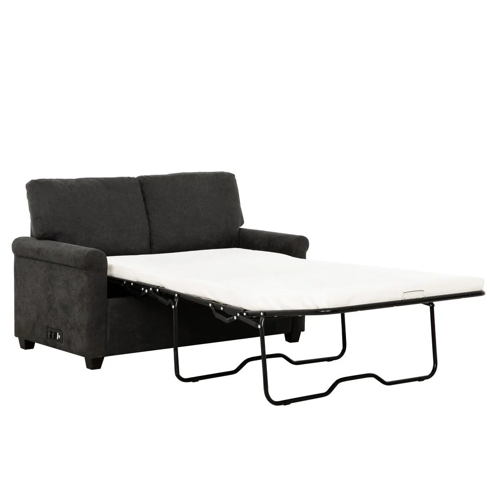 Primo International Argentum Dark Grey 54 in. Convertible Twin Sleeper Sofa with USB Ports