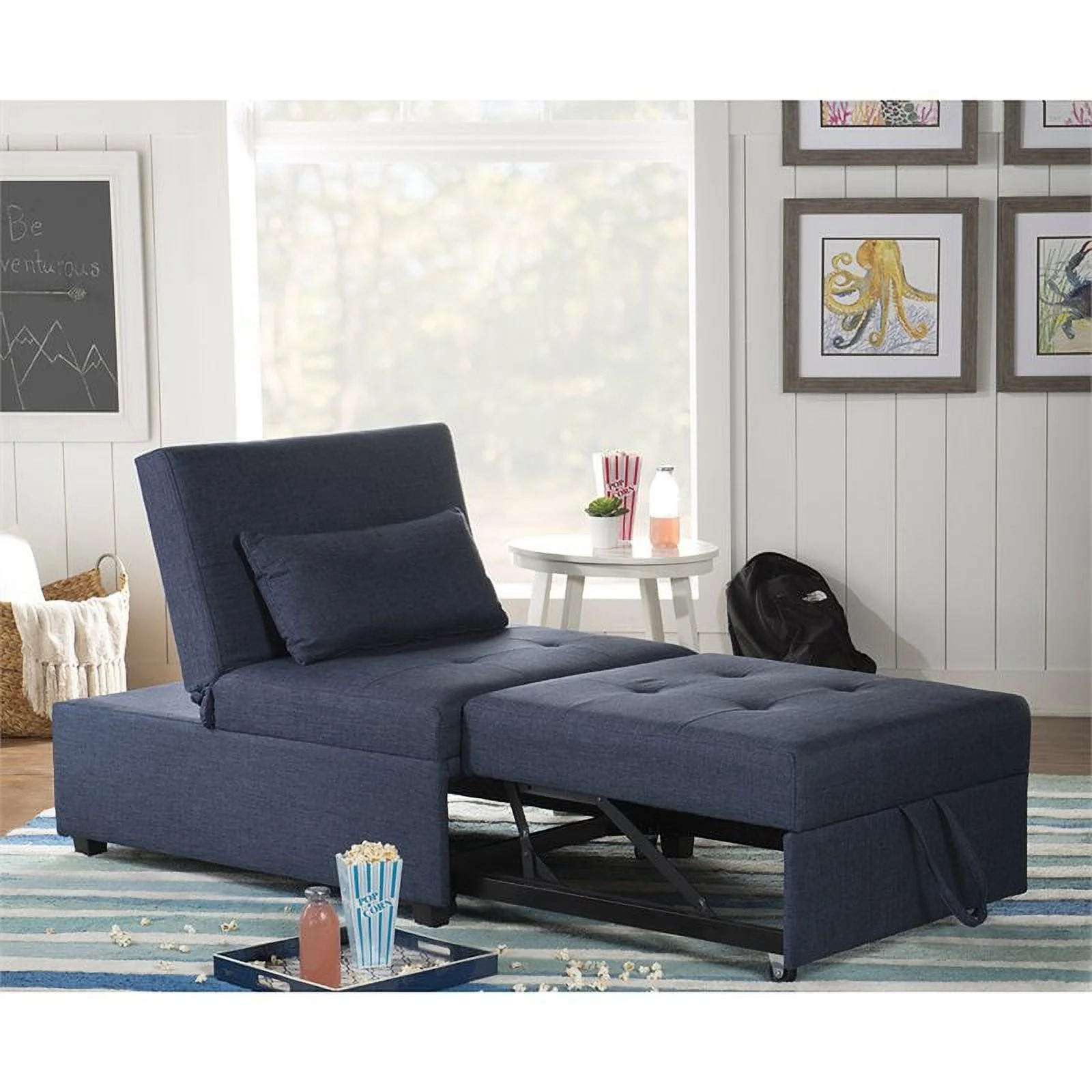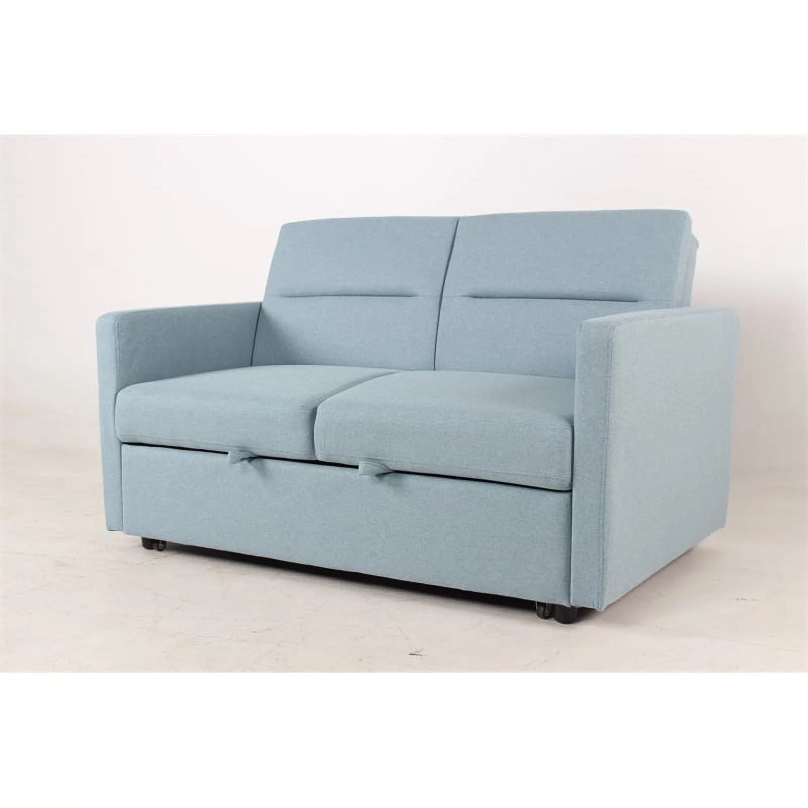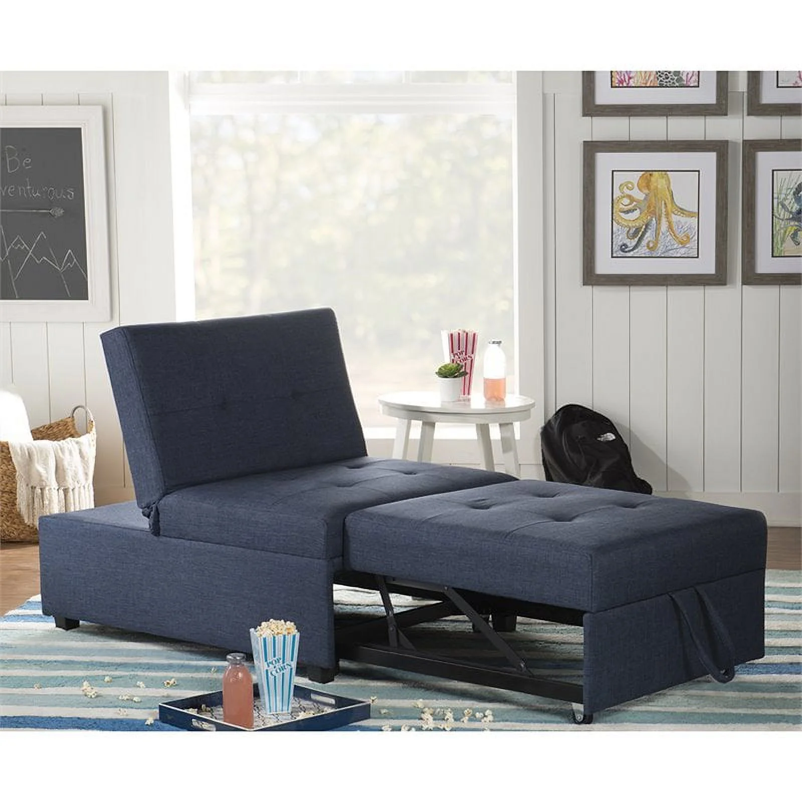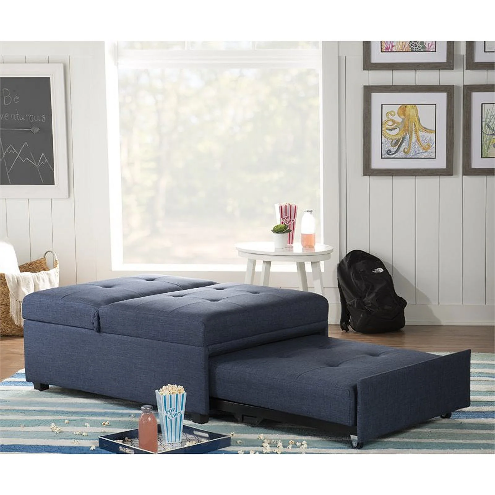 Pemberly Row Contemporary Microfiber Fabric Convertible Sofa Bed in Blue