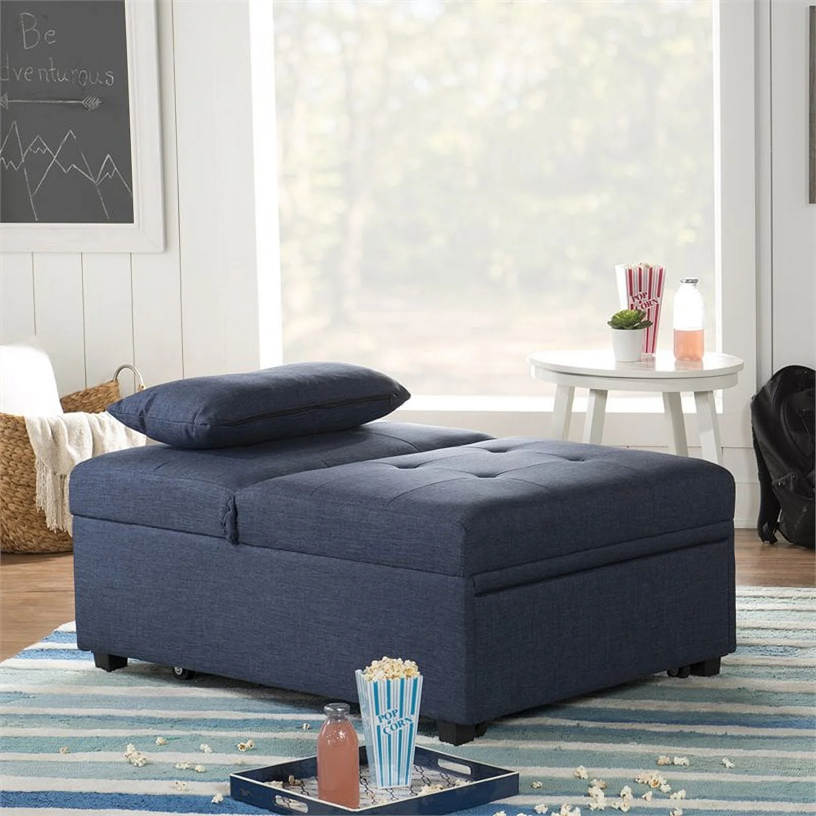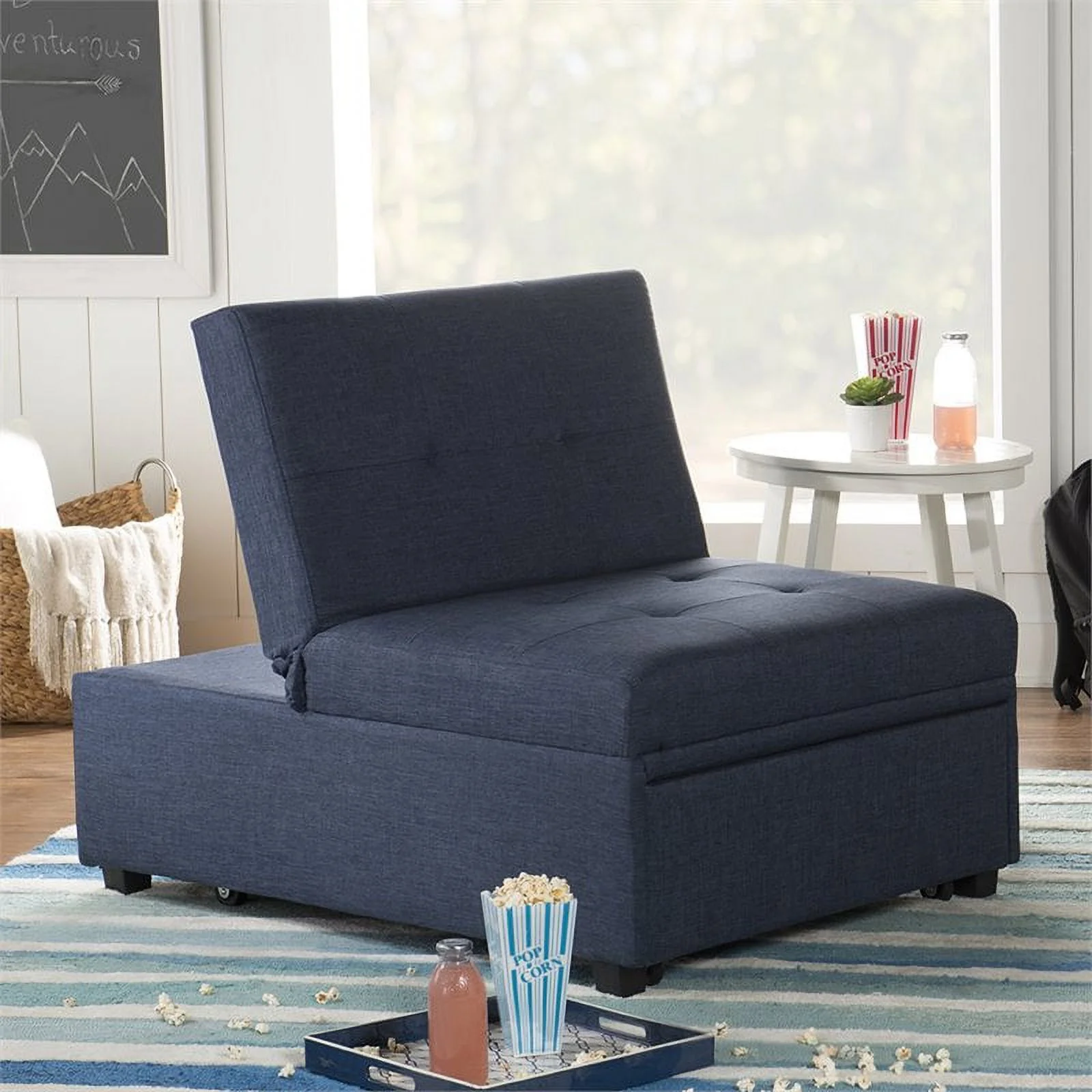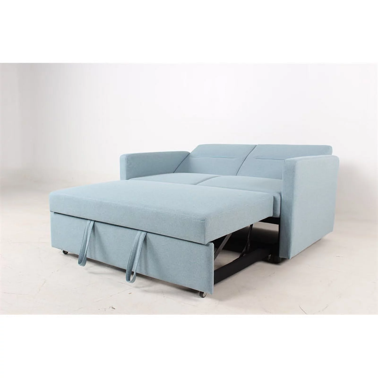 Pemberly Row Contemporary Microfiber Fabric Convertible Sofa Bed in Blue