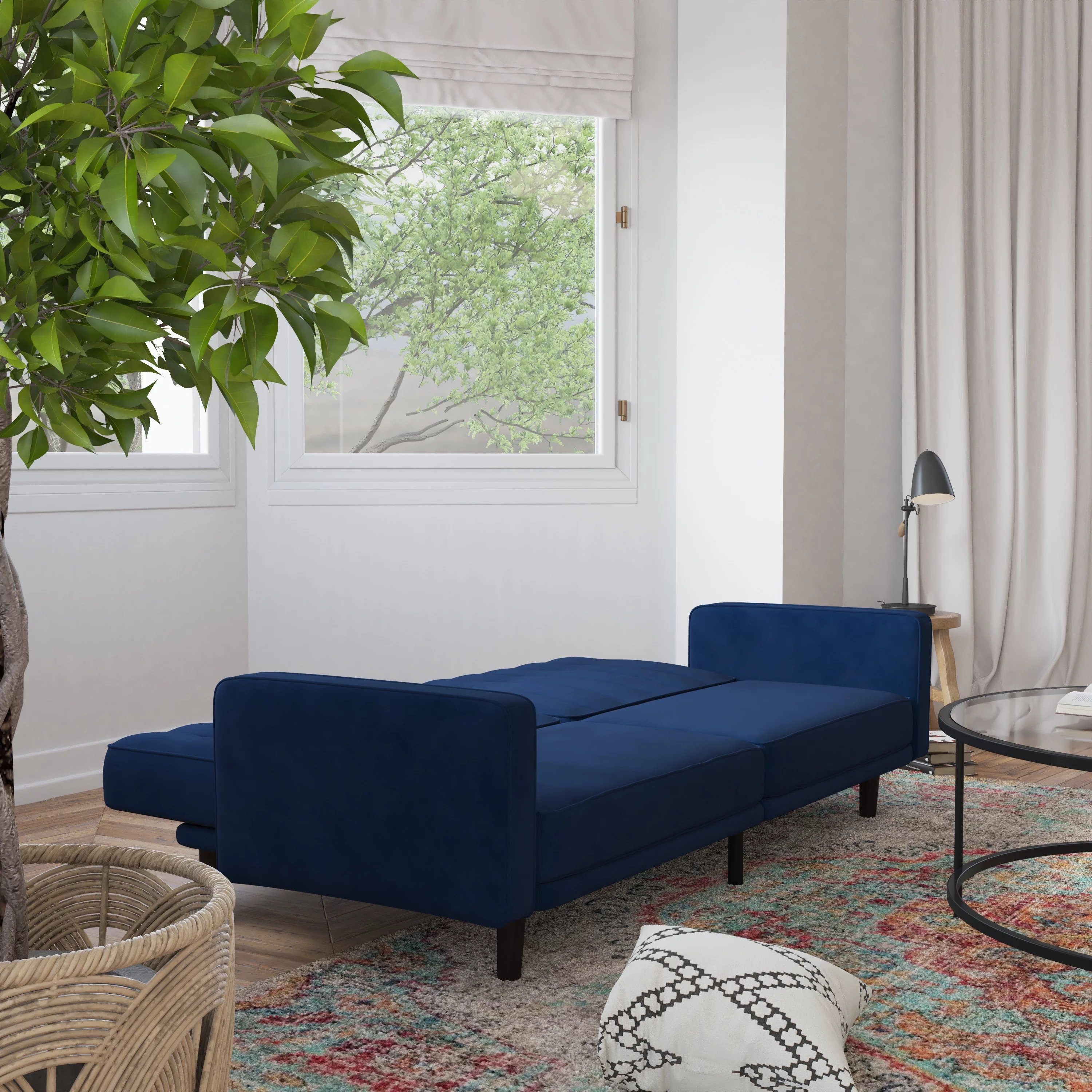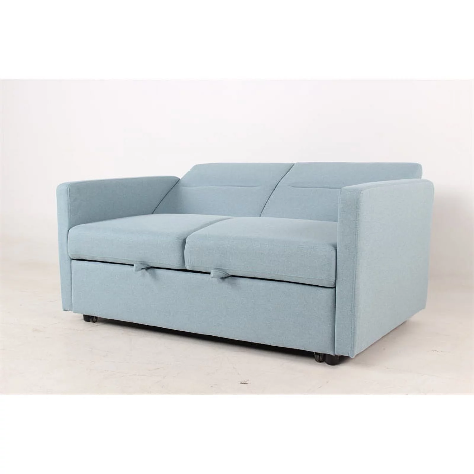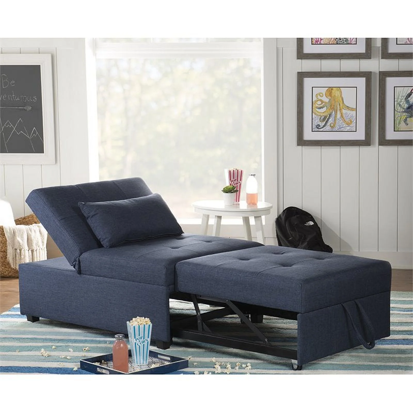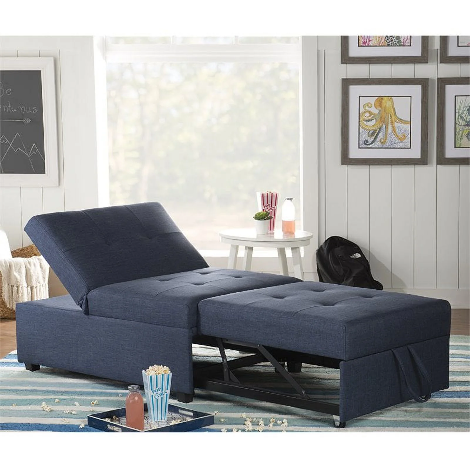 Pemberly Row Contemporary Microfiber Fabric Convertible Sofa Bed in Blue
