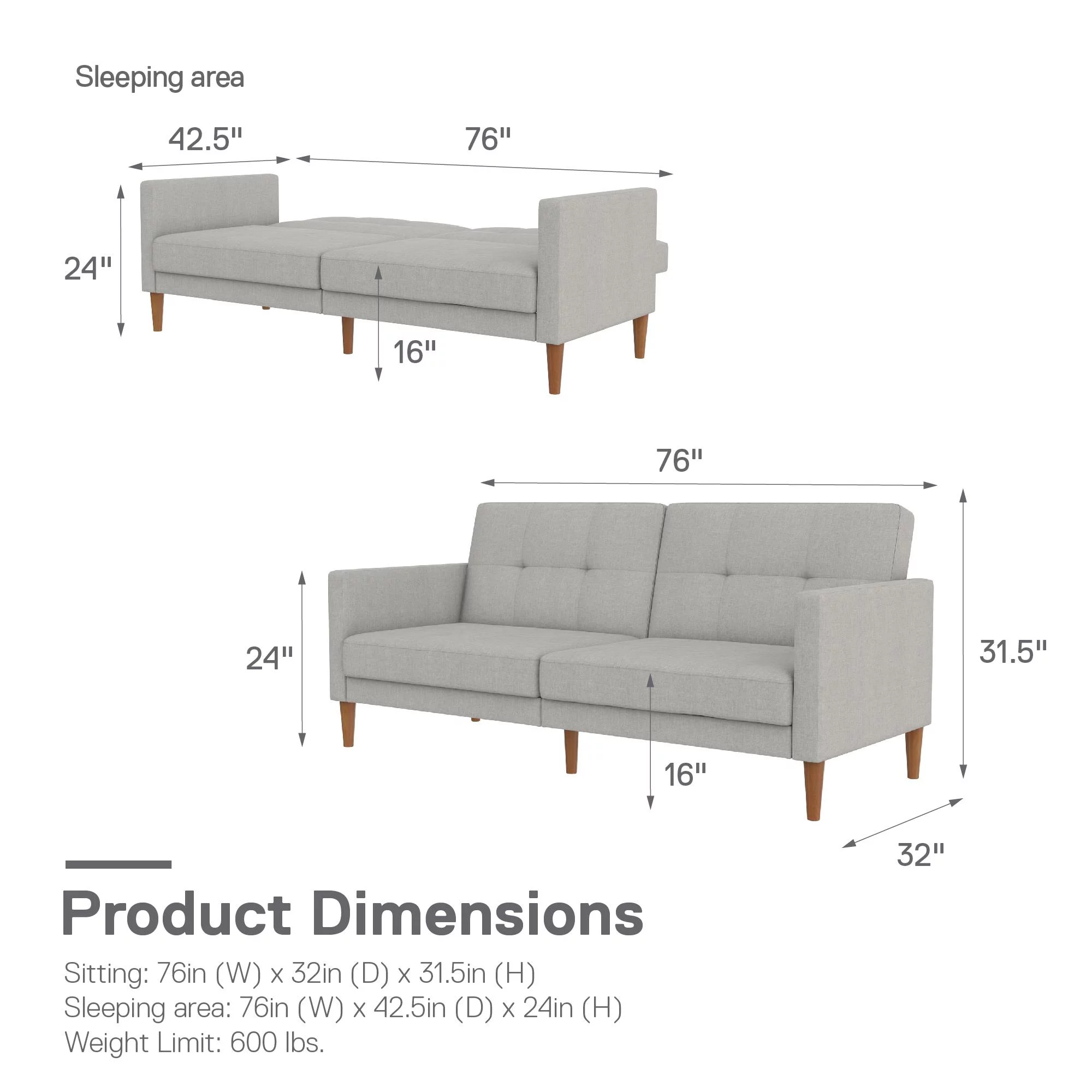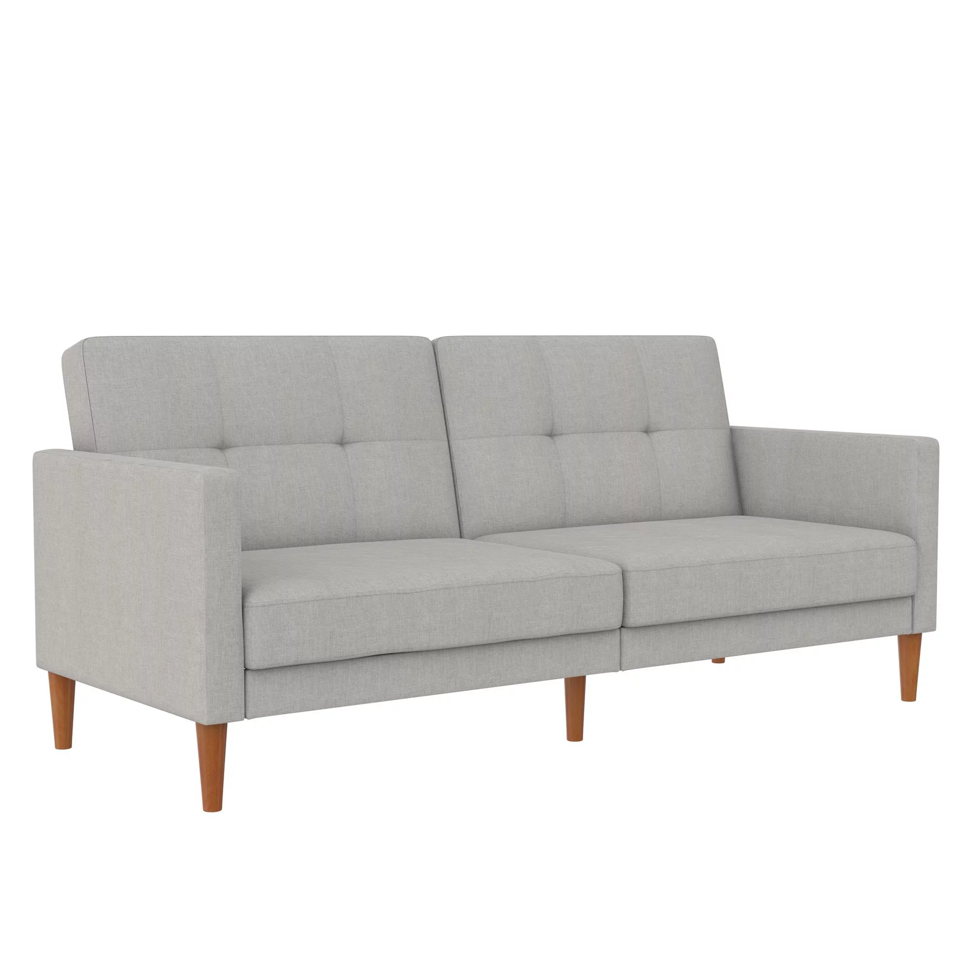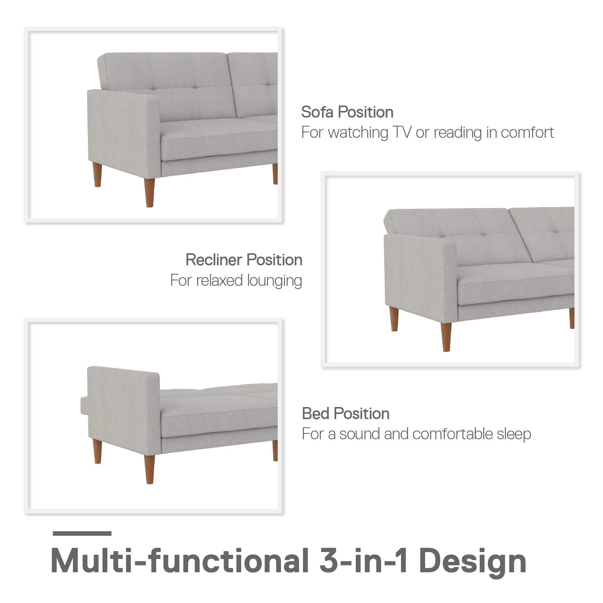 RealRooms Lilly Upholstered Convertible Split-Back Futon Sofa, Light Gray Linen