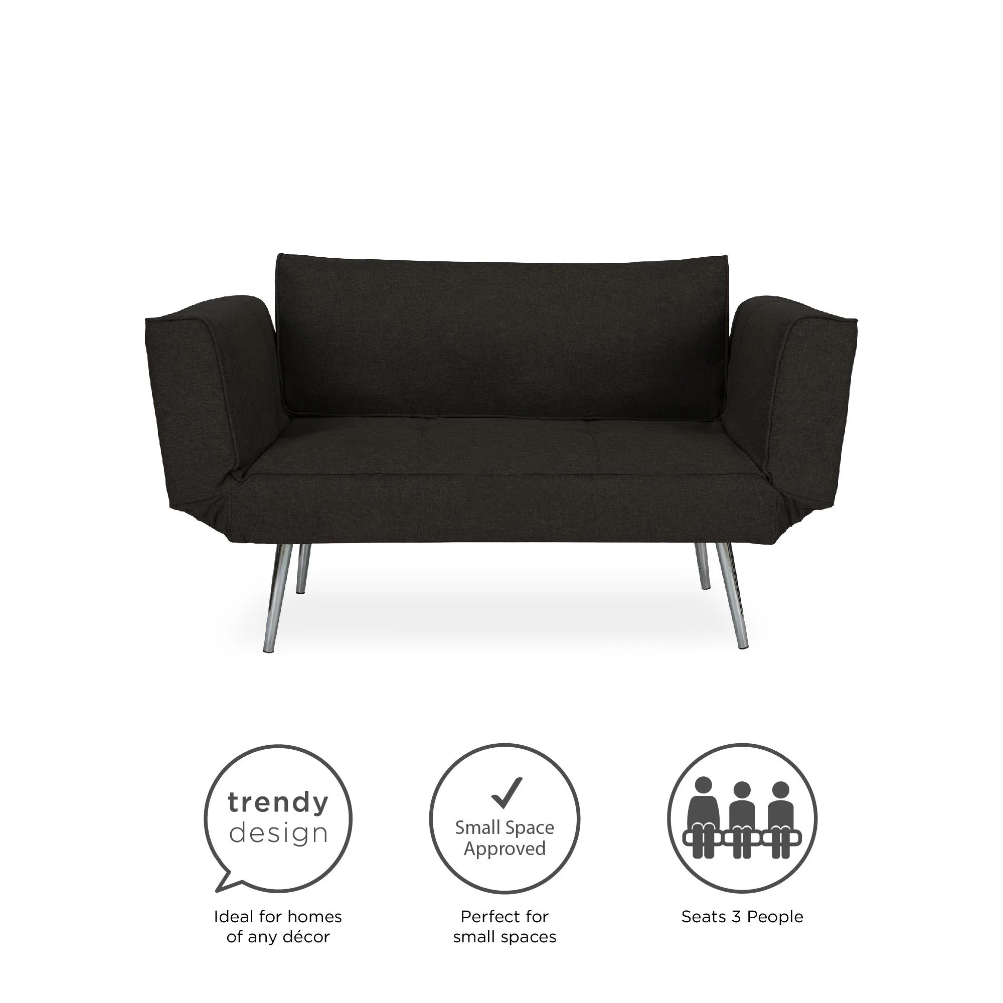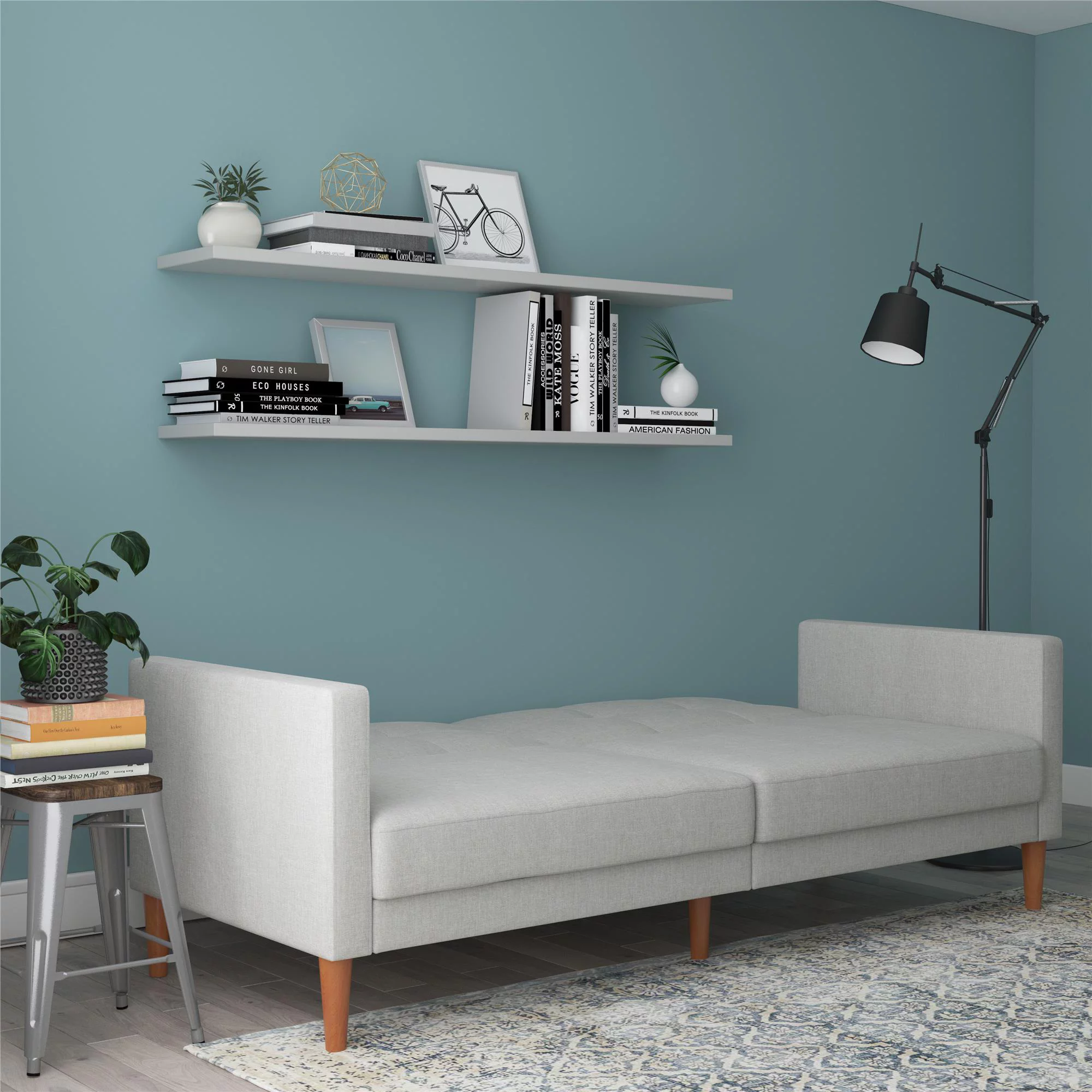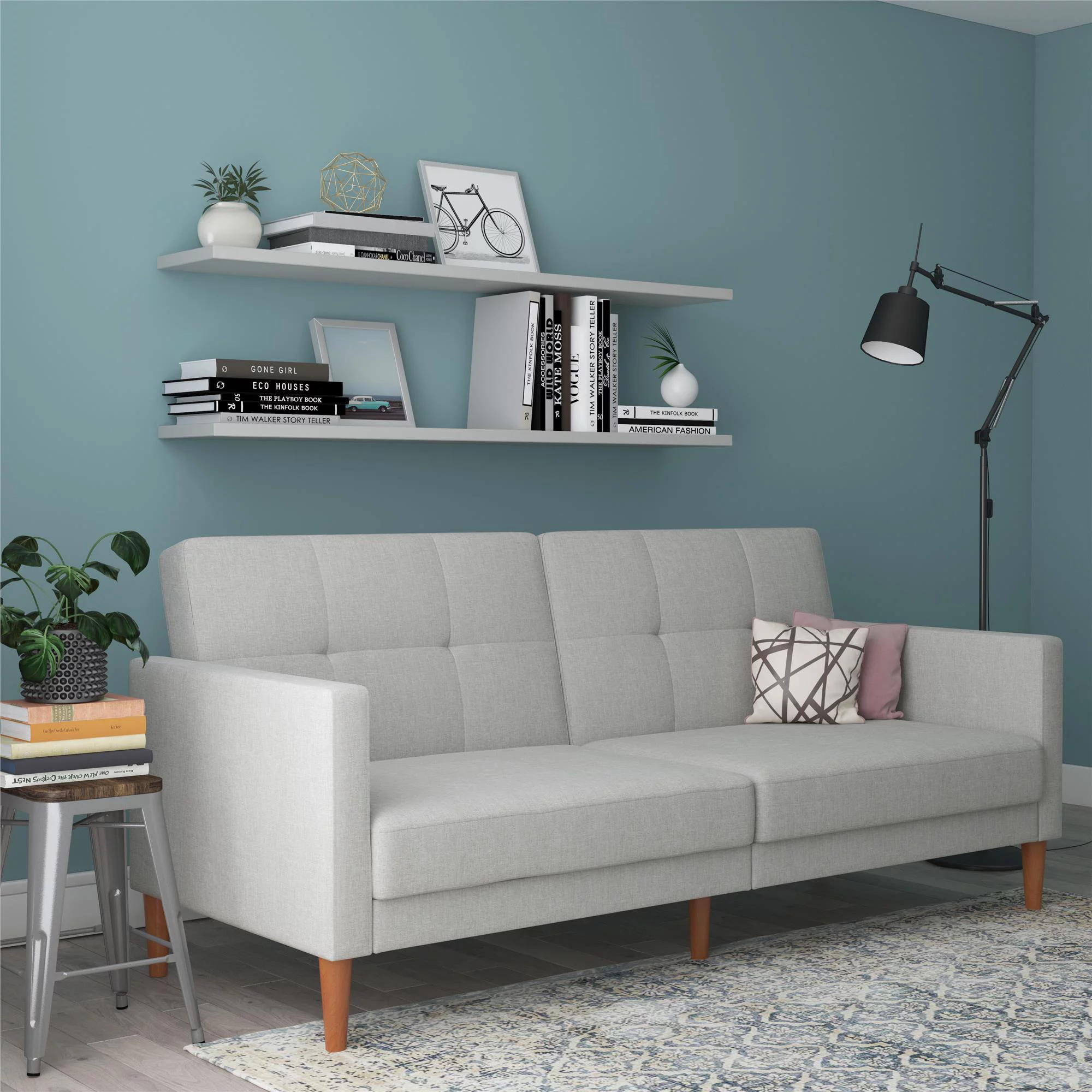 RealRooms Lilly Upholstered Convertible Split-Back Futon Sofa, Light Gray Linen