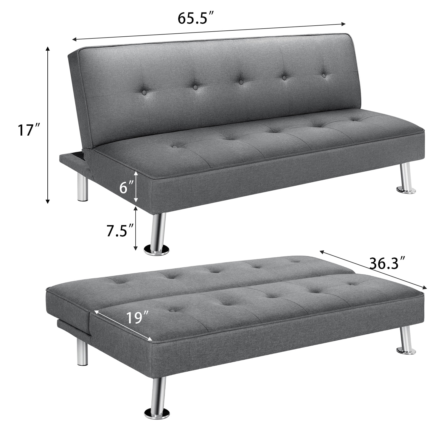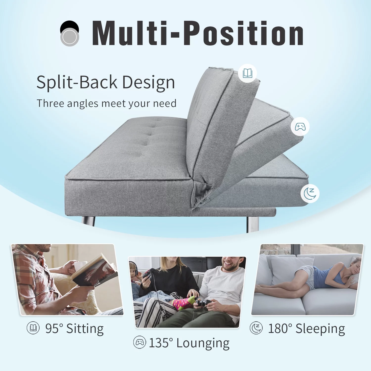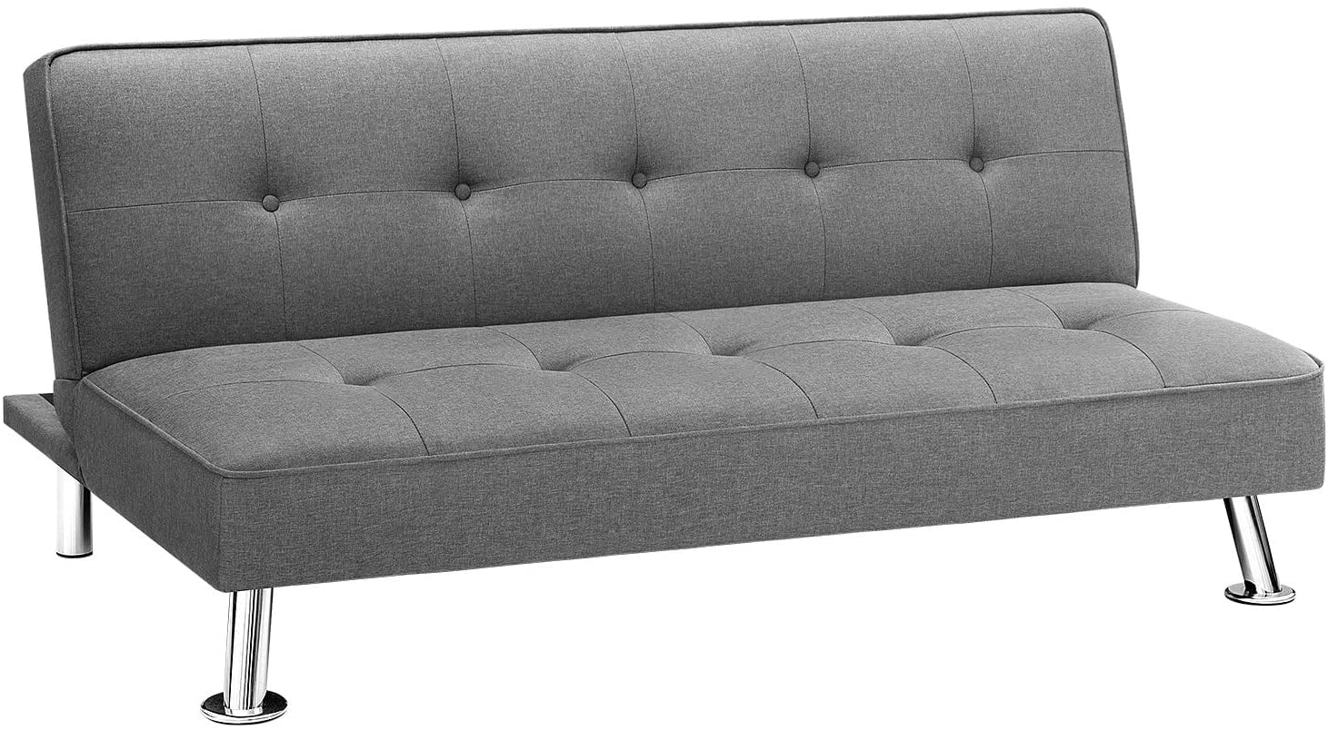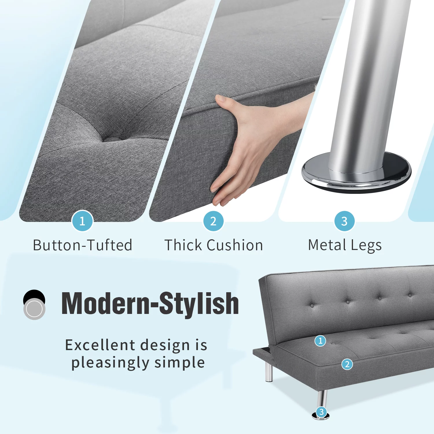 Vineego Upholstered Convertible Folding Linen Futon Sofa Bed for Living Room, Gray