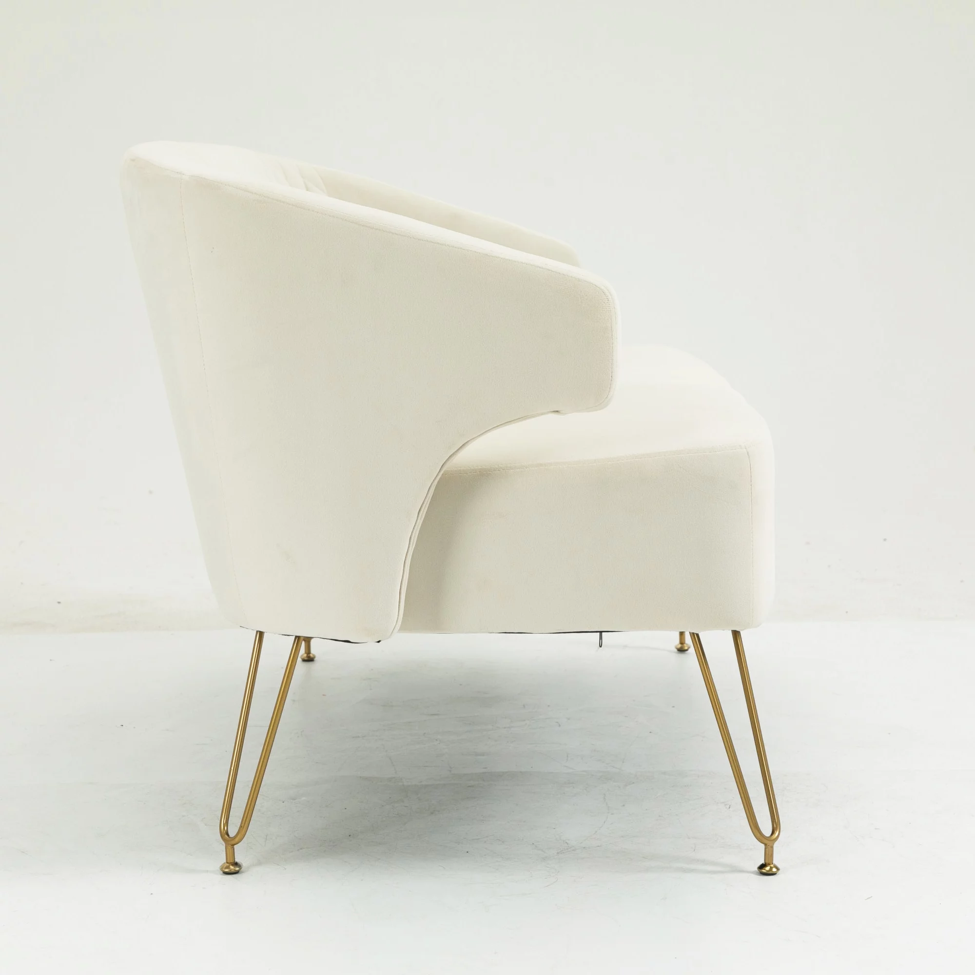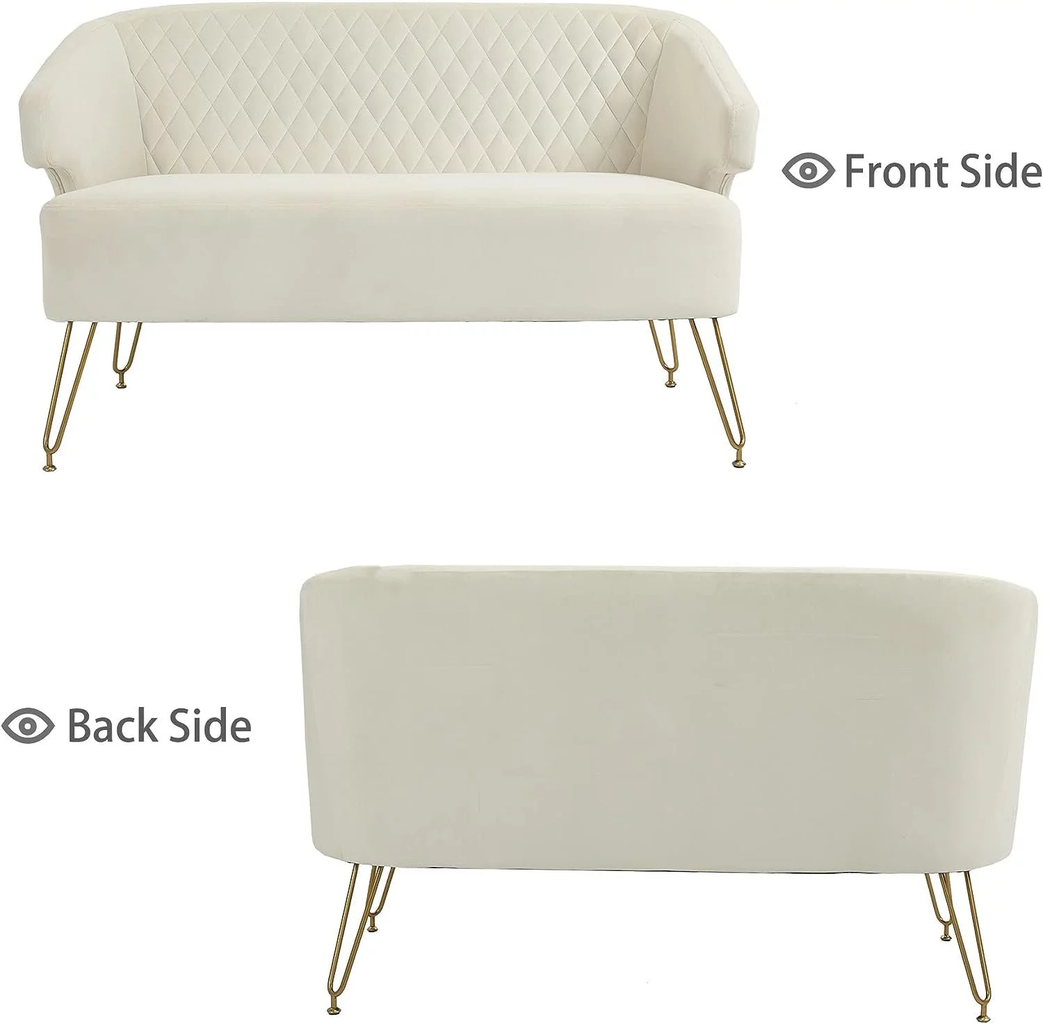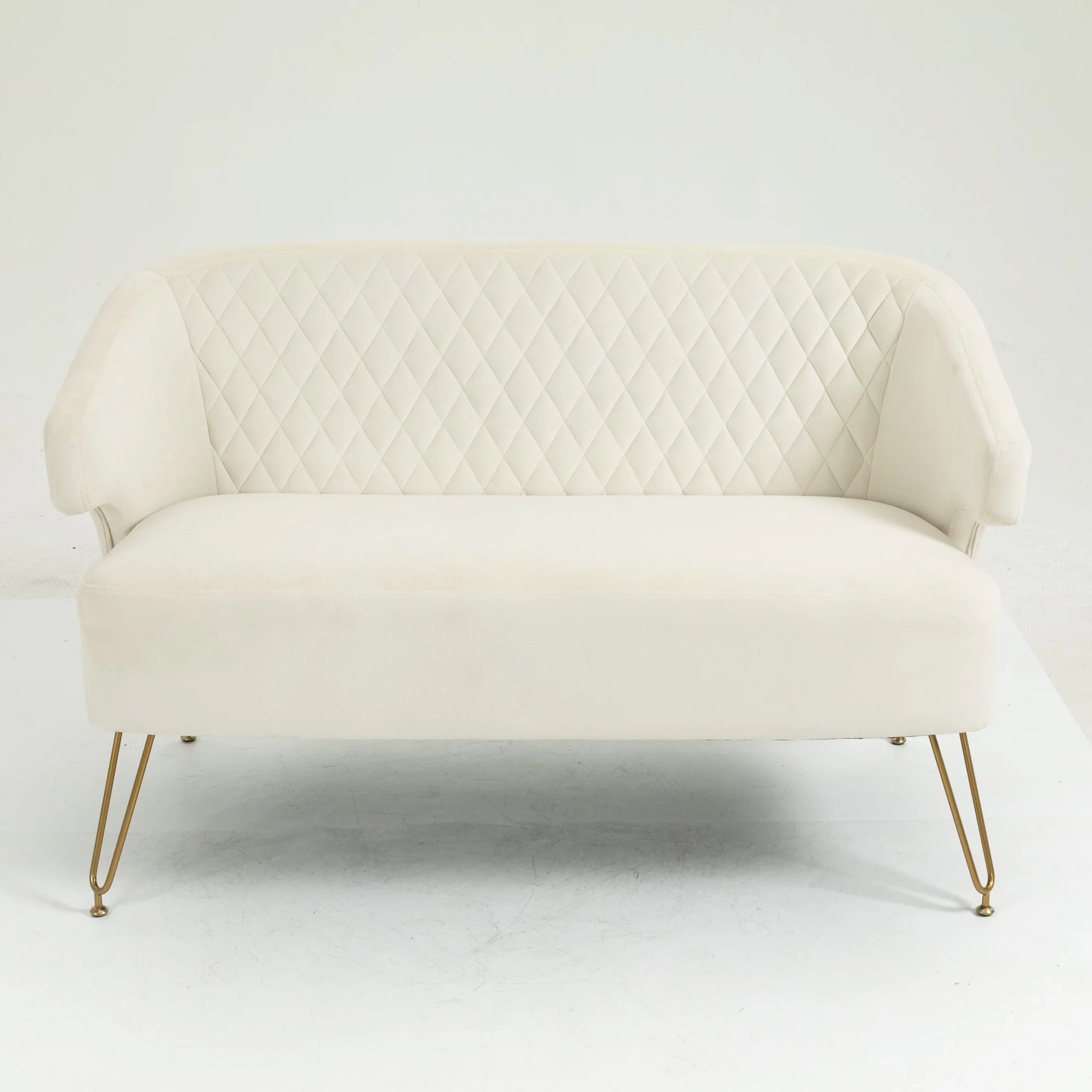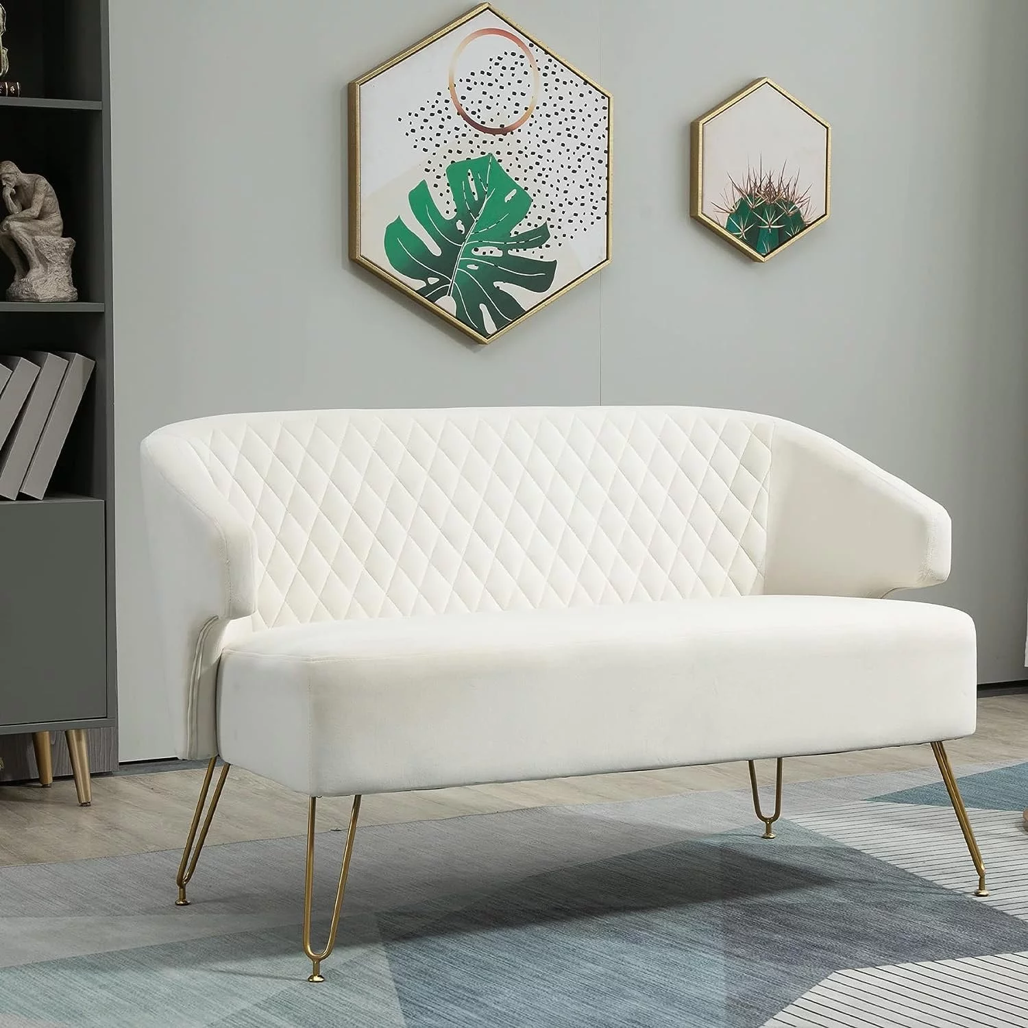 Glavbiku Twin Size Love Seat with Golden Metal Leg,Living Room 2 Seats Sofa with Tufted Backrest,White