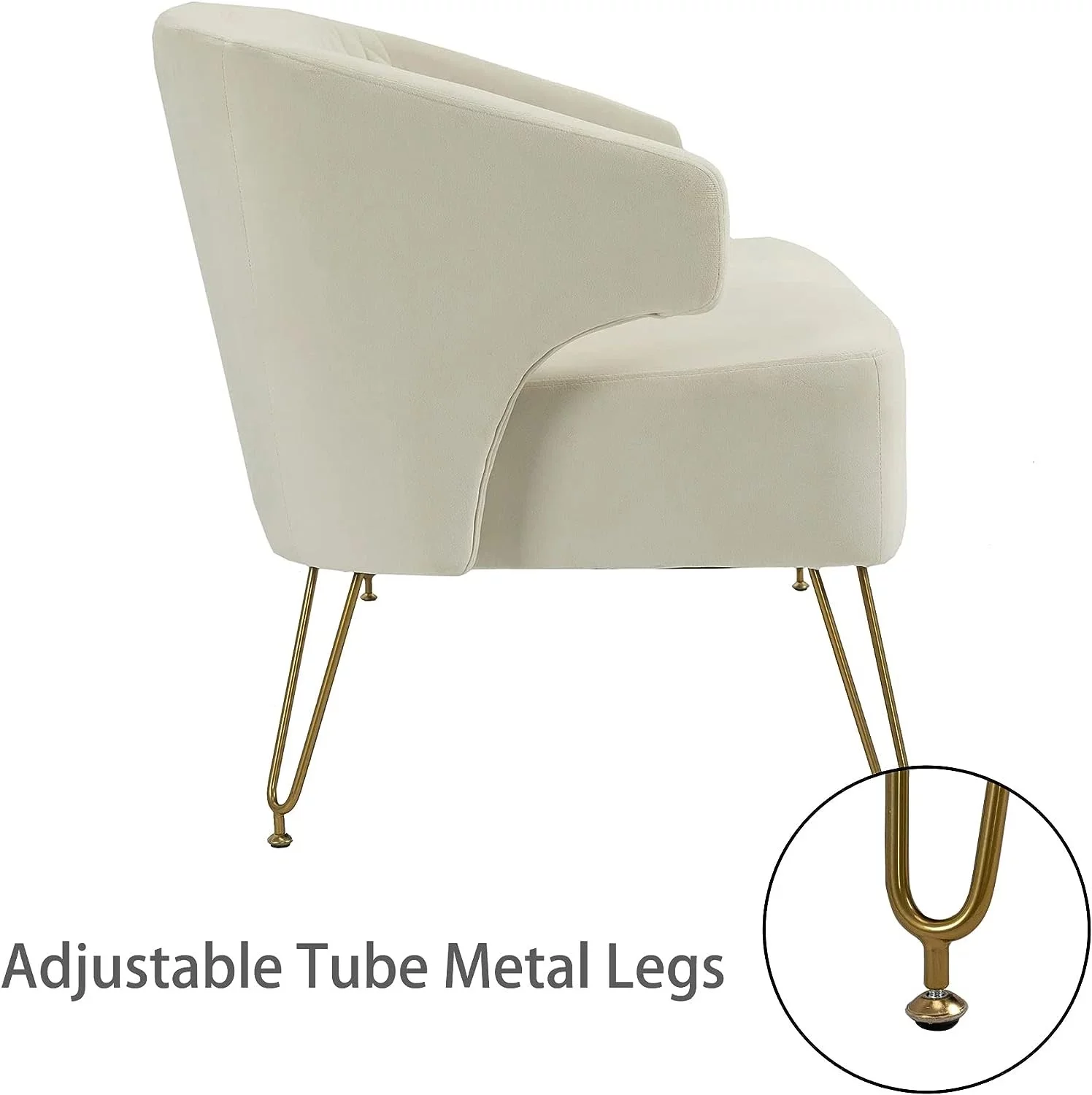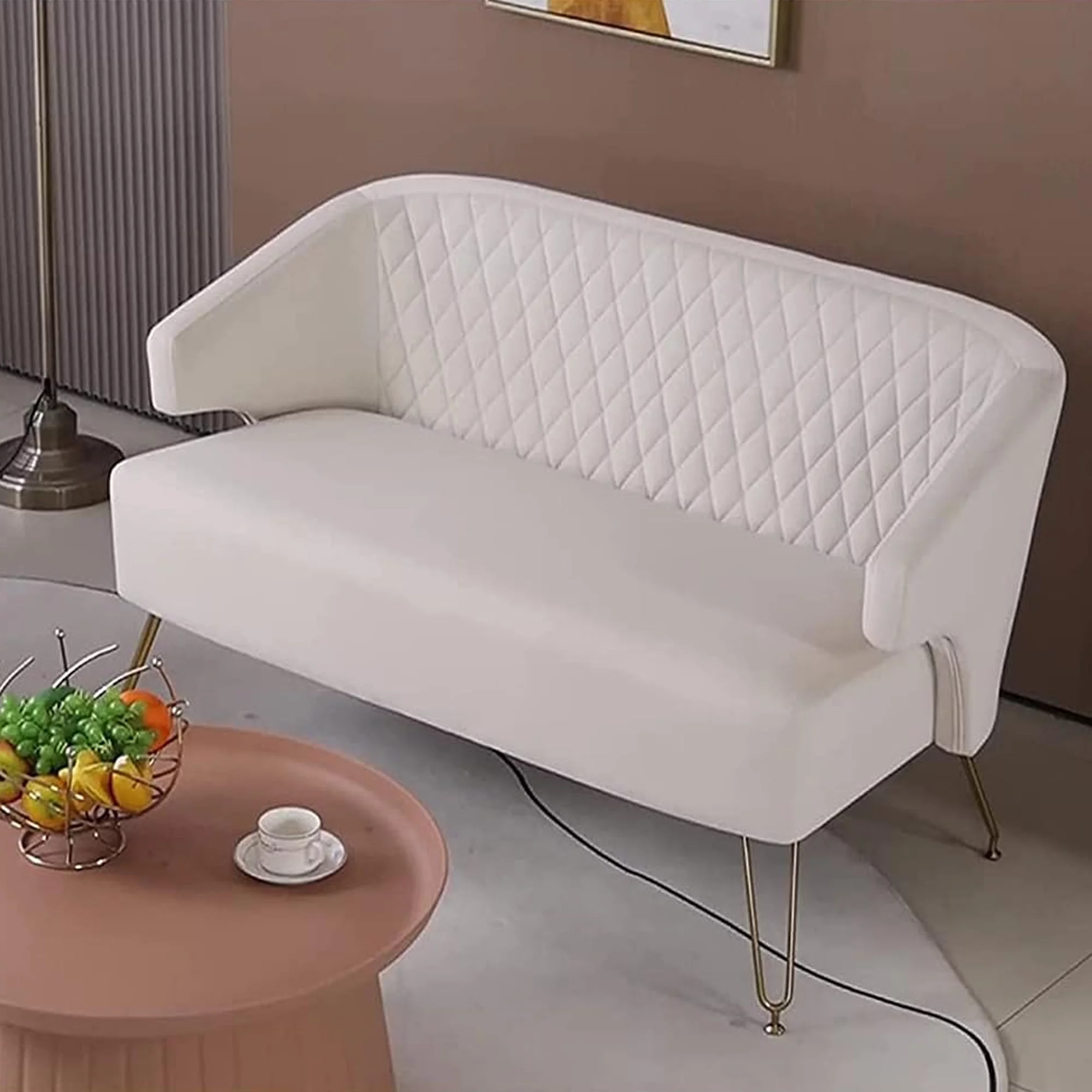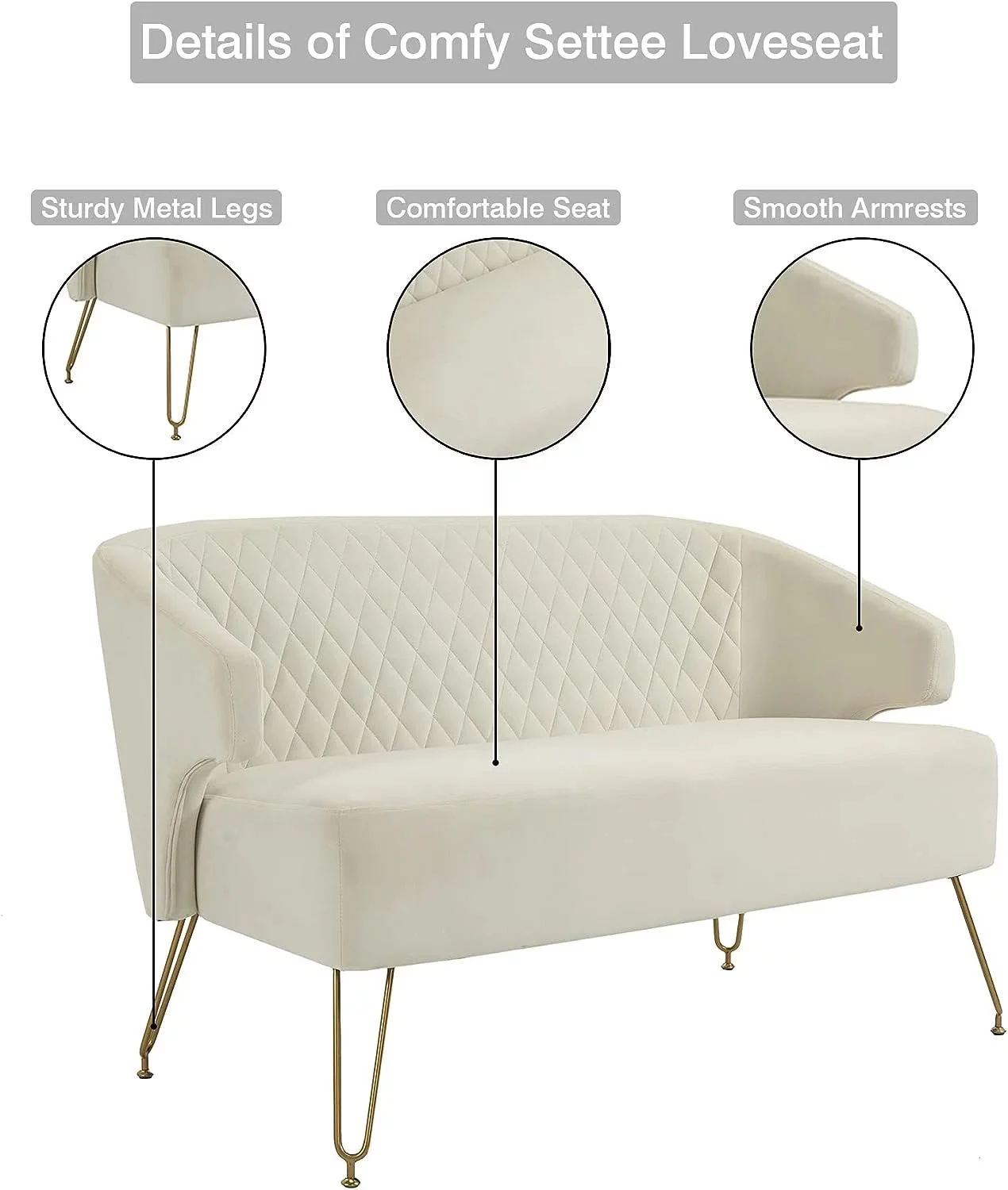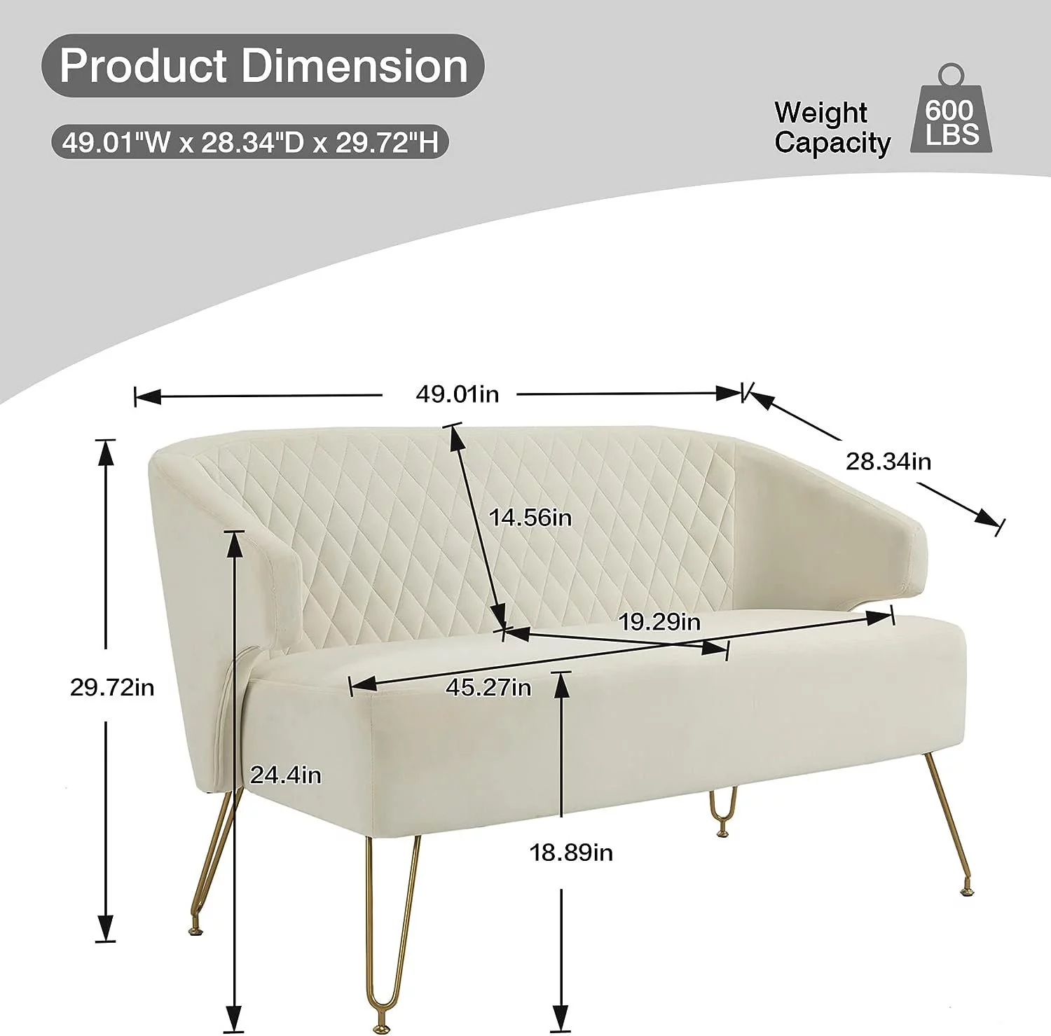 Glavbiku Twin Size Love Seat with Golden Metal Leg,Living Room 2 Seats Sofa with Tufted Backrest,White