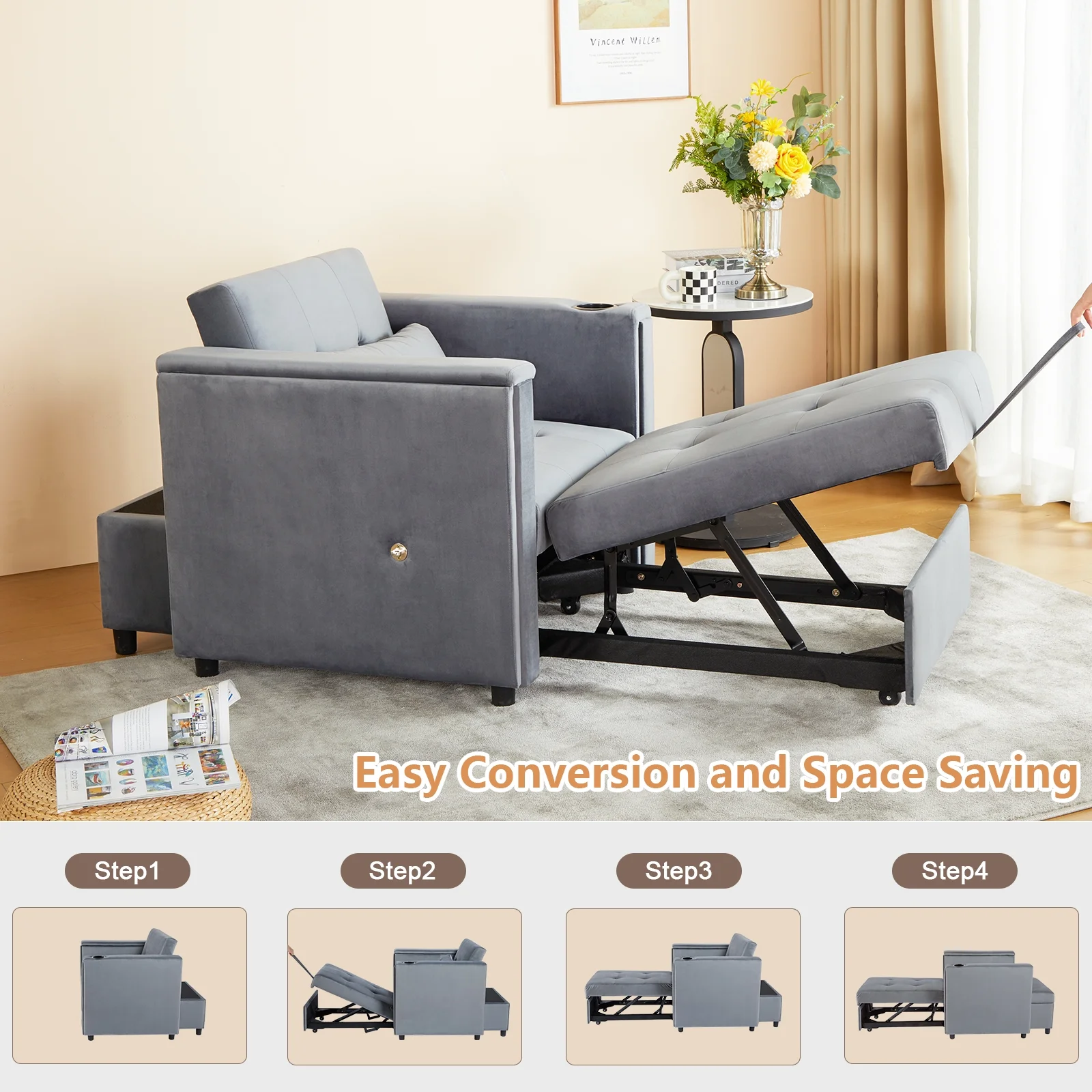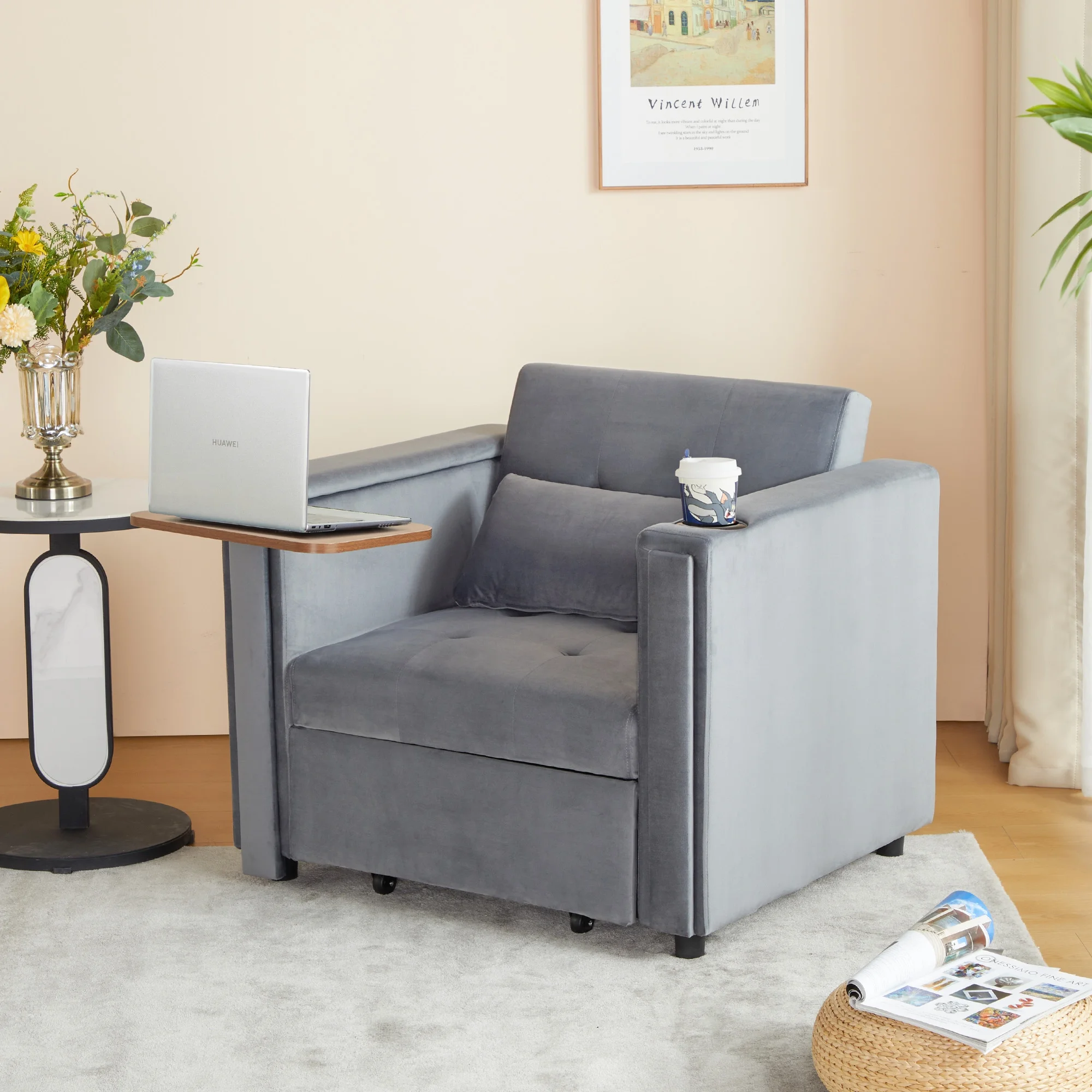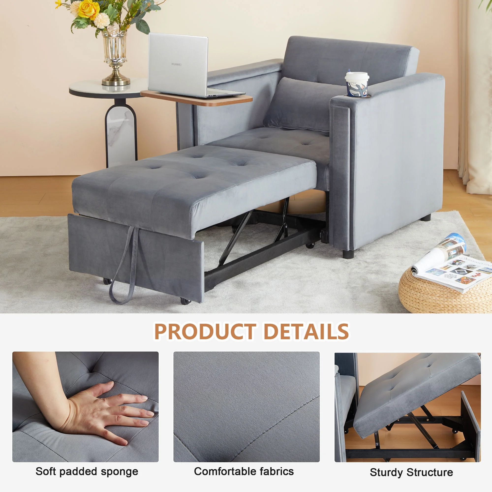 Giratree 3 in 1 Single Sleeper Chair Bed Sofa for Adult with Chaise Side Table Cup Holder and Mobile Phone Holder, Gray