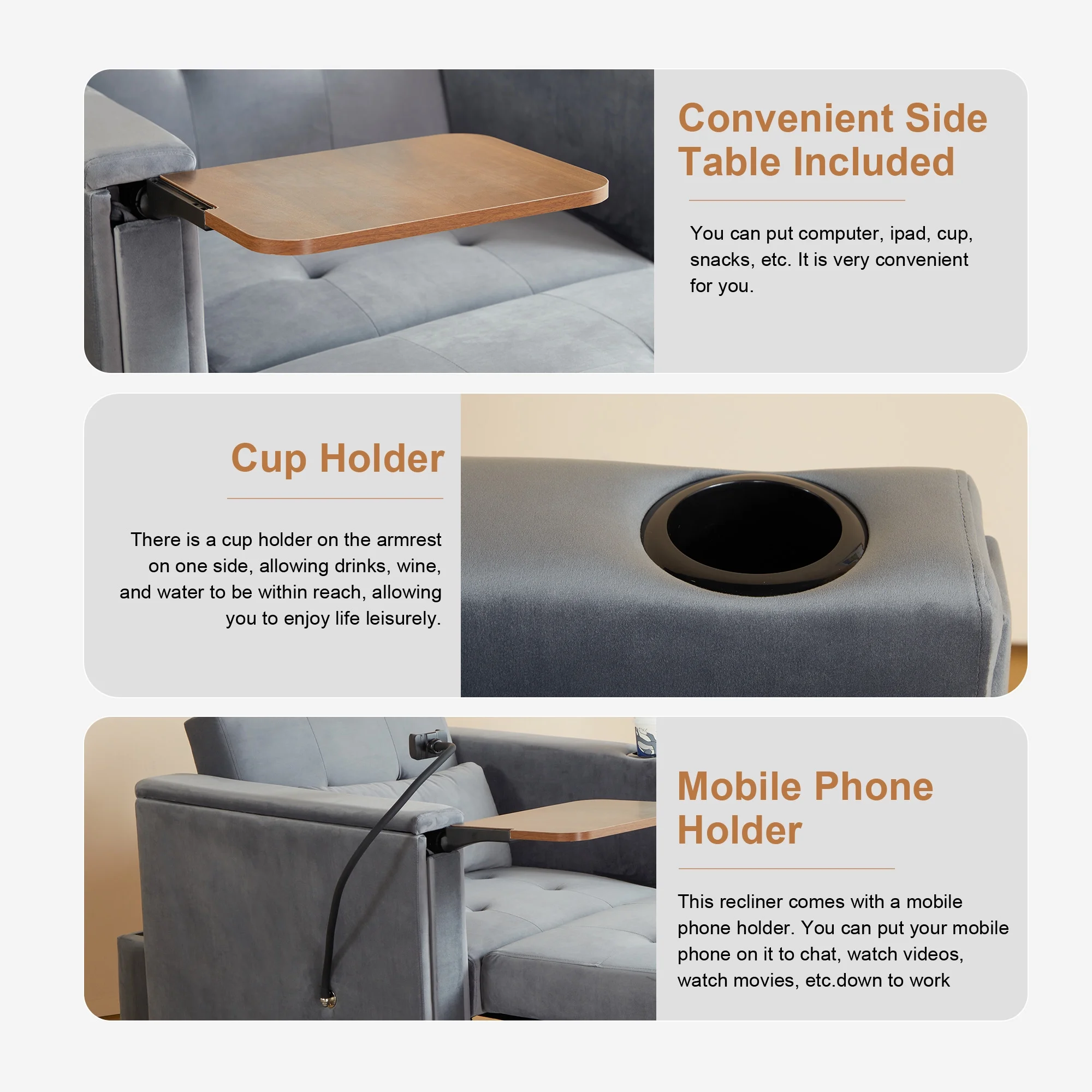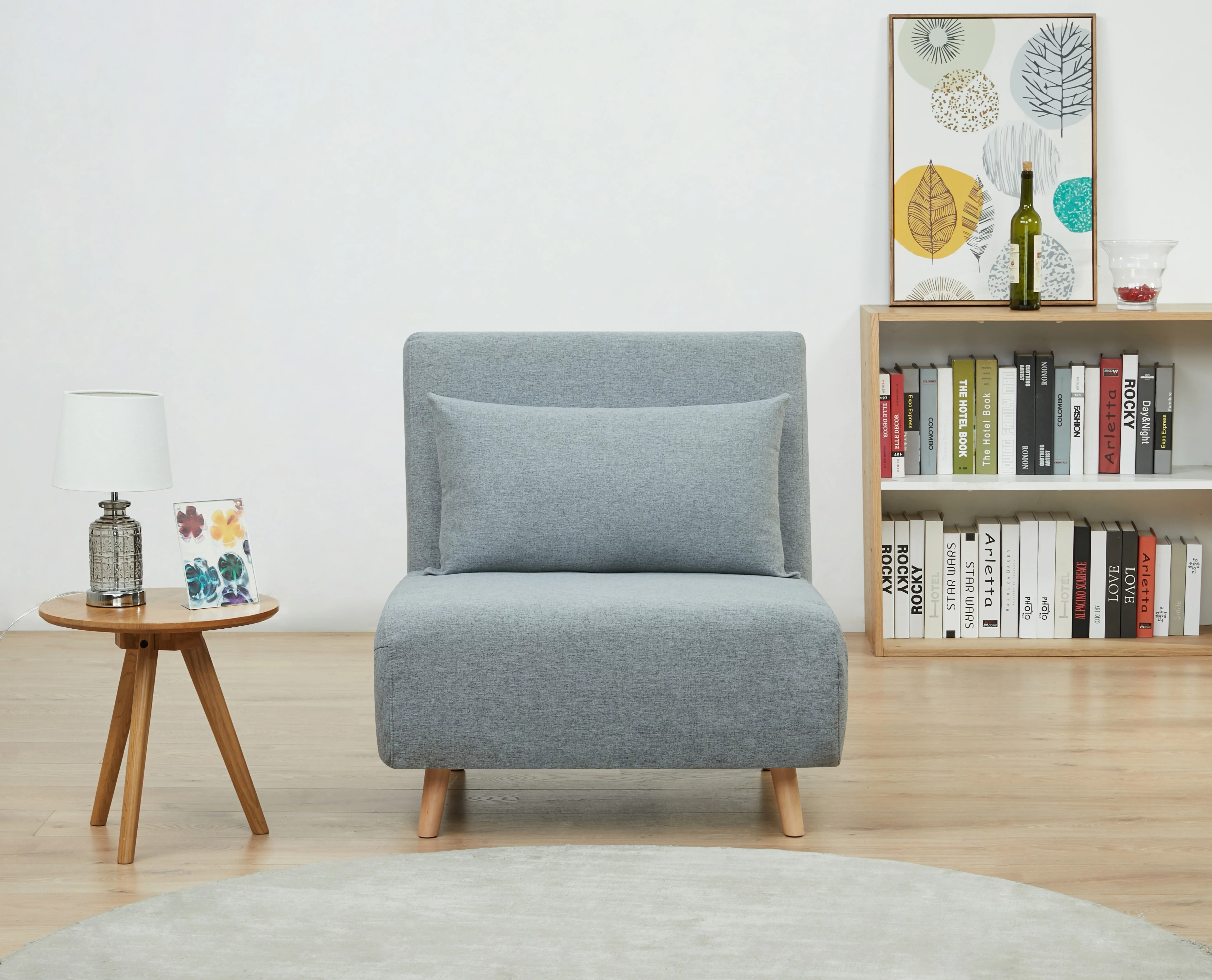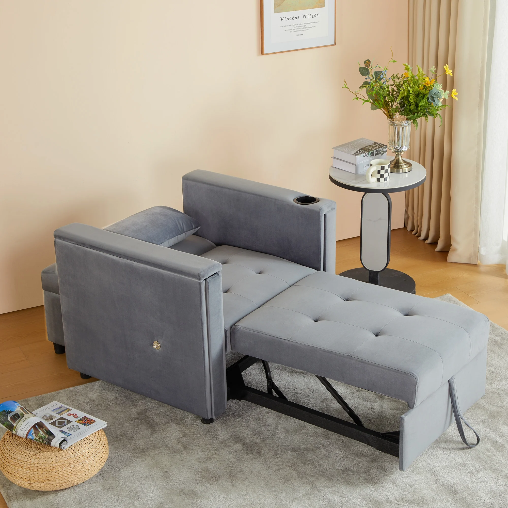 Giratree 3 in 1 Single Sleeper Chair Bed Sofa for Adult with Chaise Side Table Cup Holder and Mobile Phone Holder, Gray