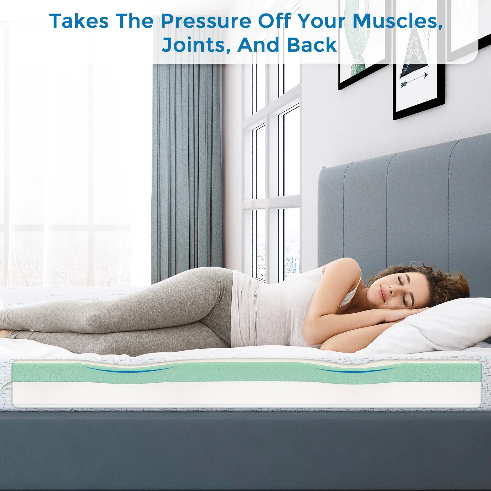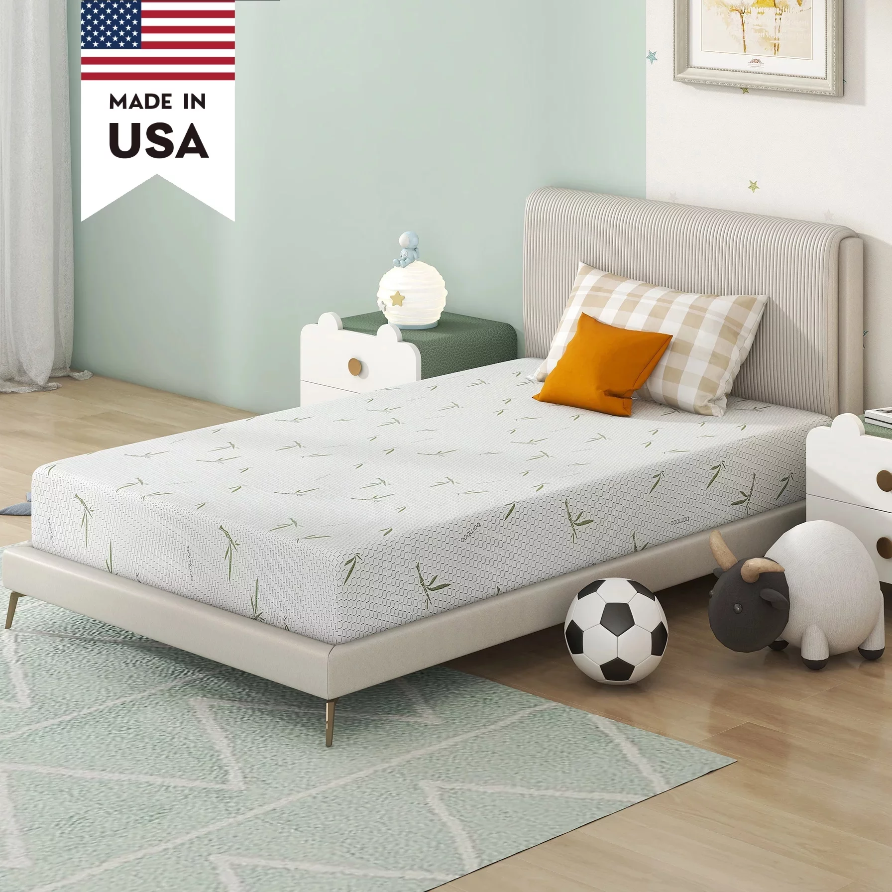 Twin Mattress, 6 inch Green Tea Cooling Gel Memory Foam Mattress in a box, Medium Firmness Mattresses, Made in USA